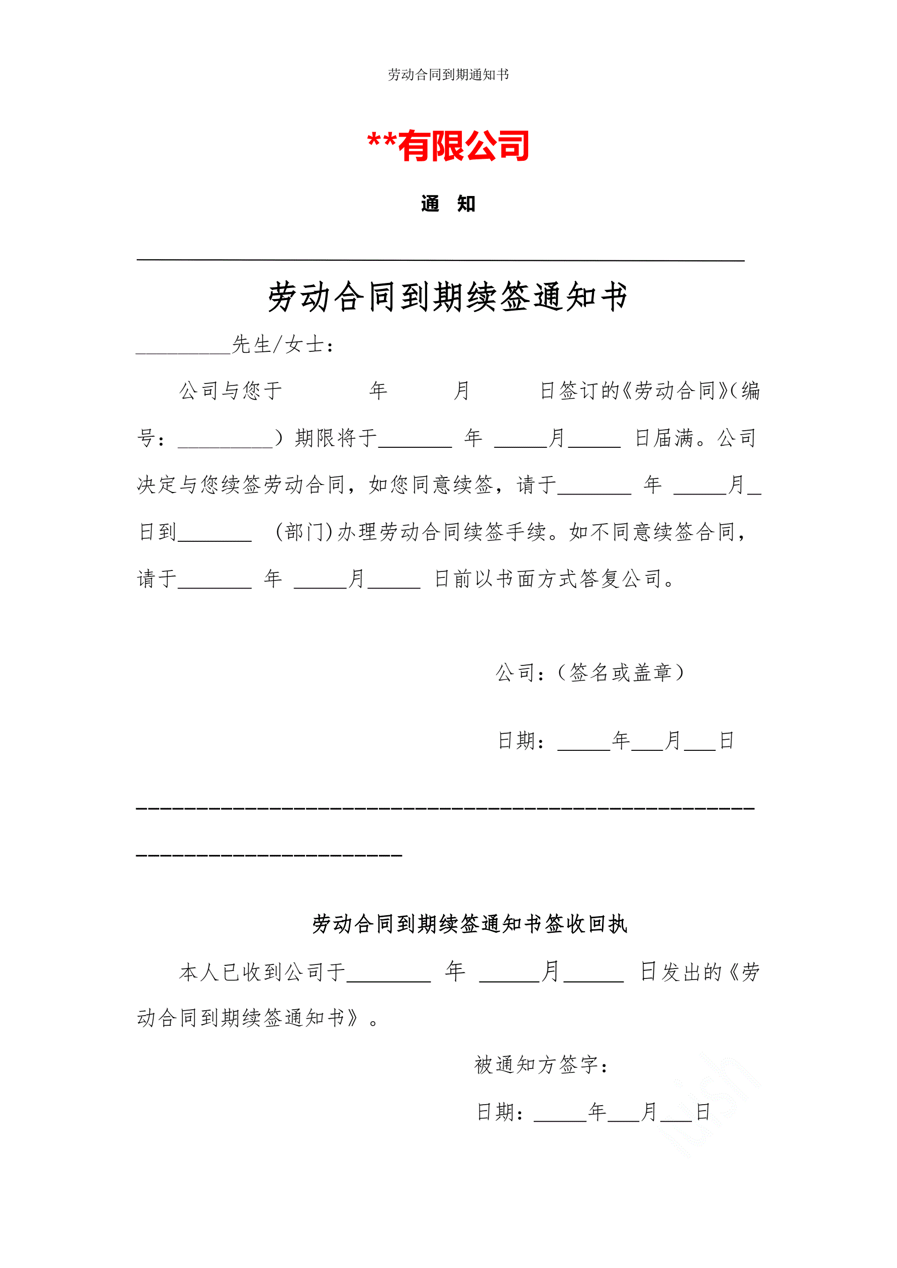 劳动合同到期续签通知书(指导版)