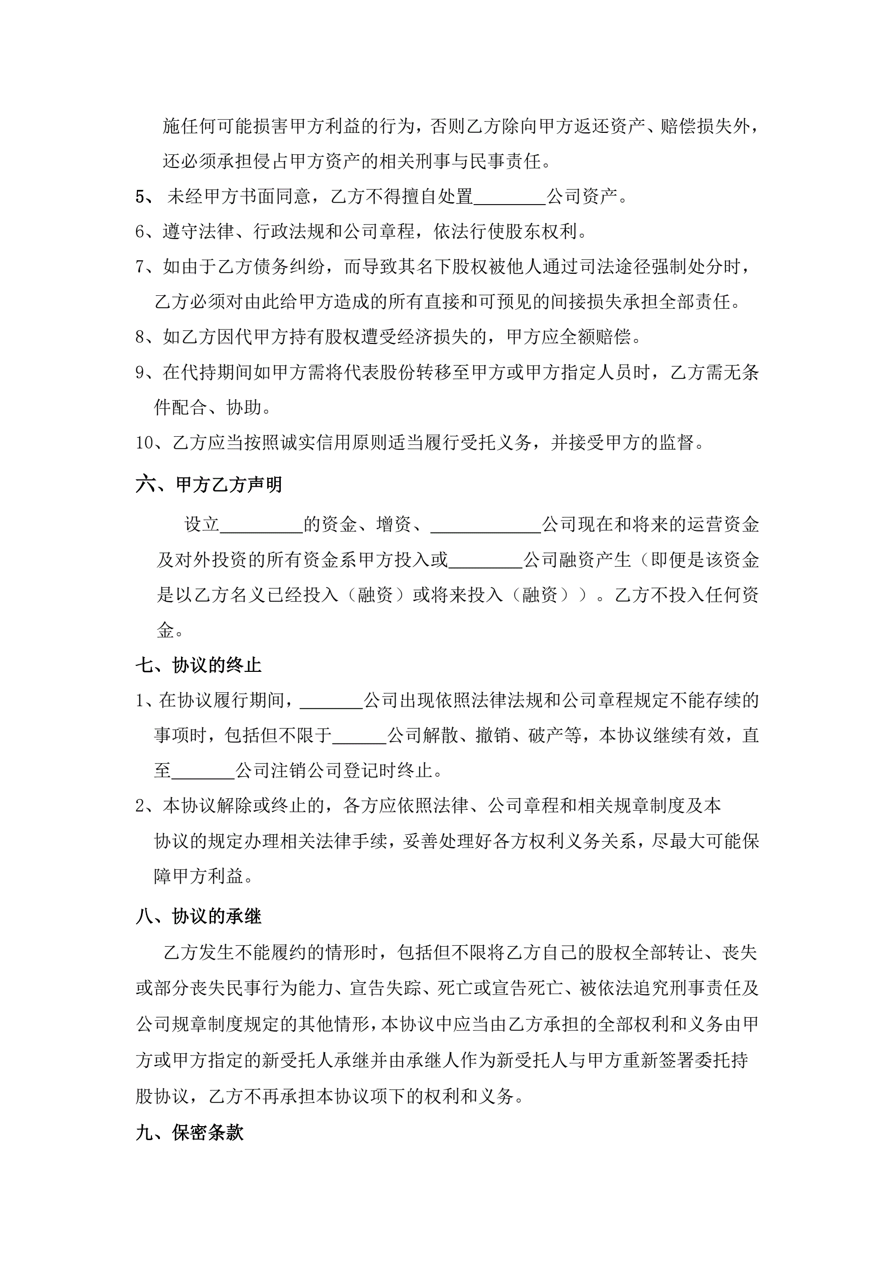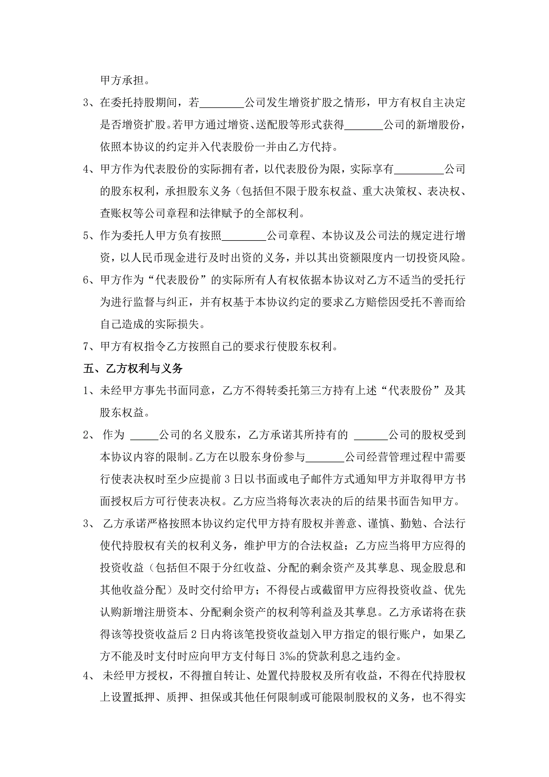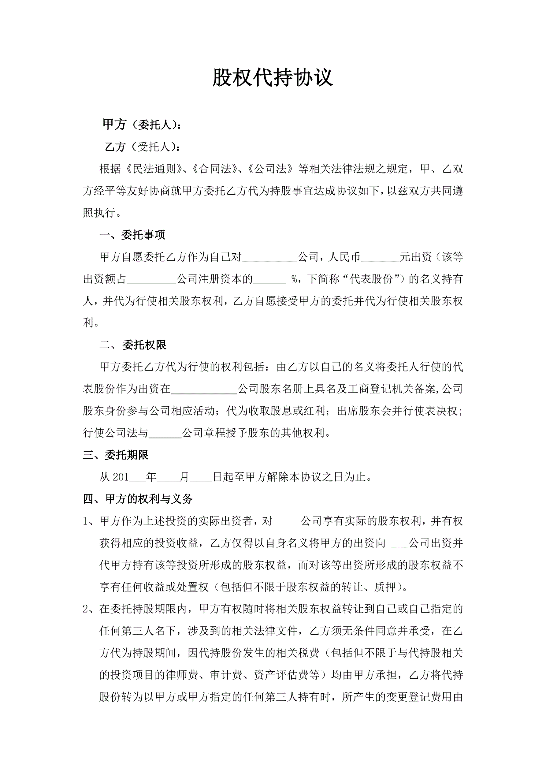 >股权代持协议-(标准版本)