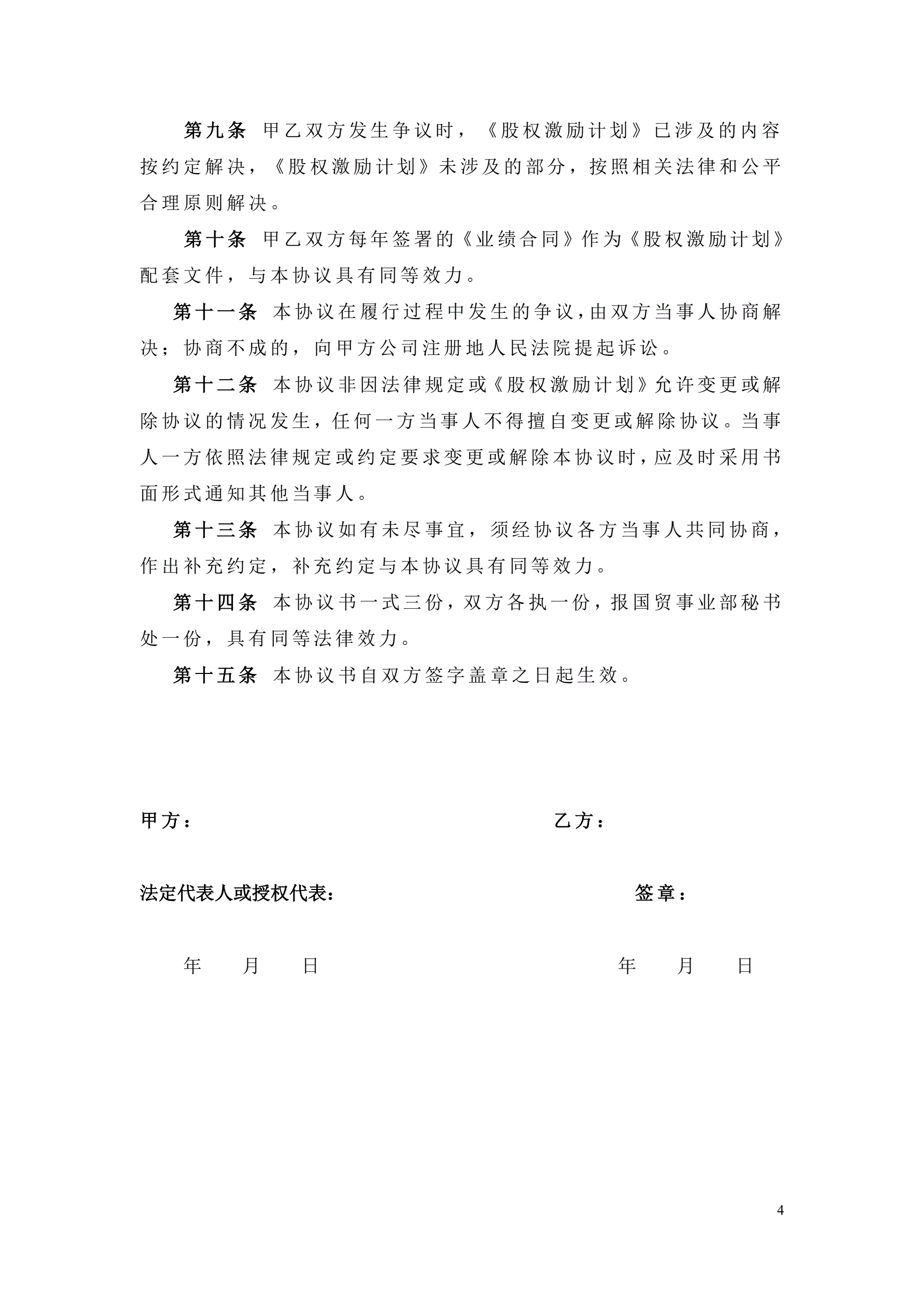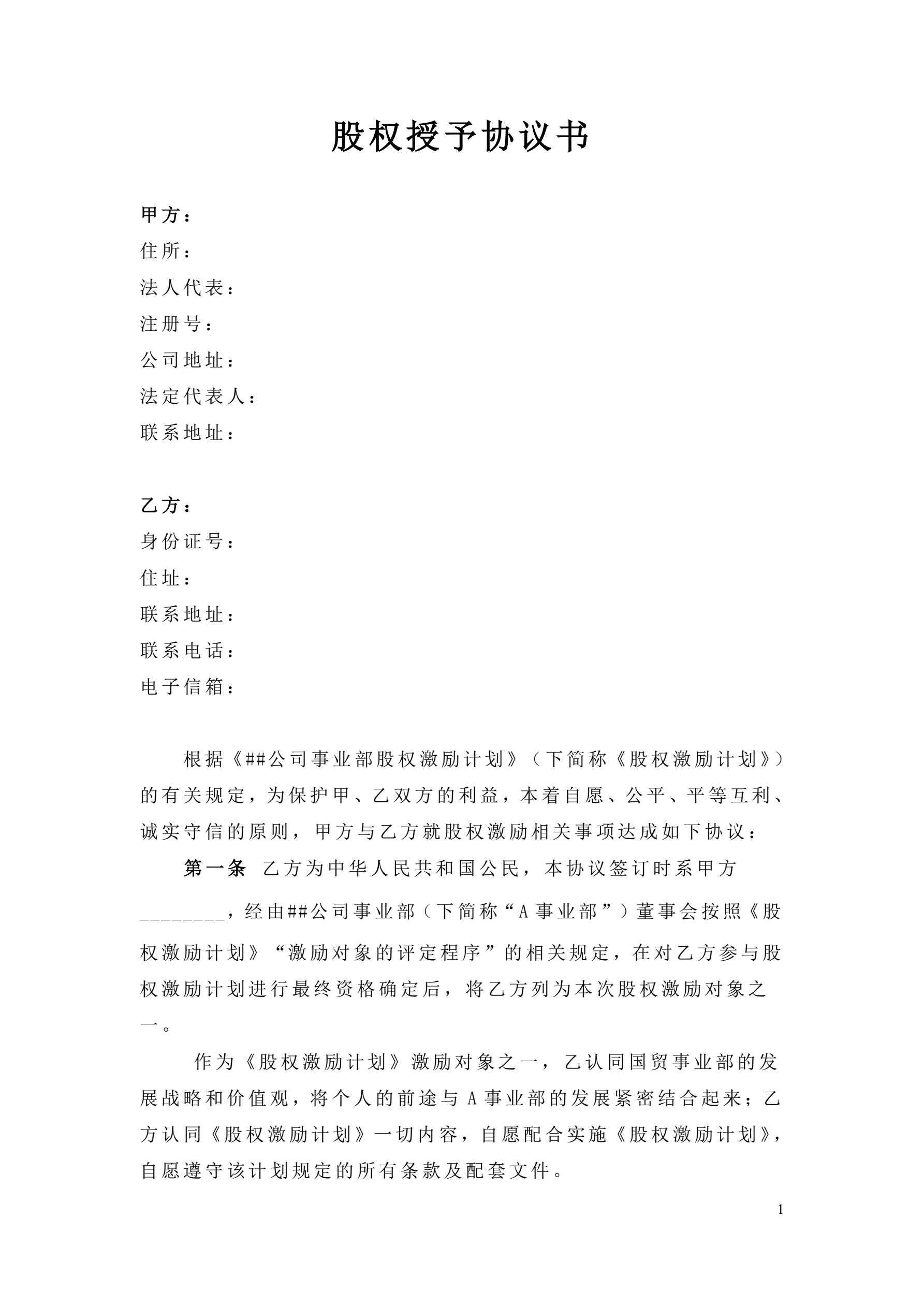 >股权授予协议书