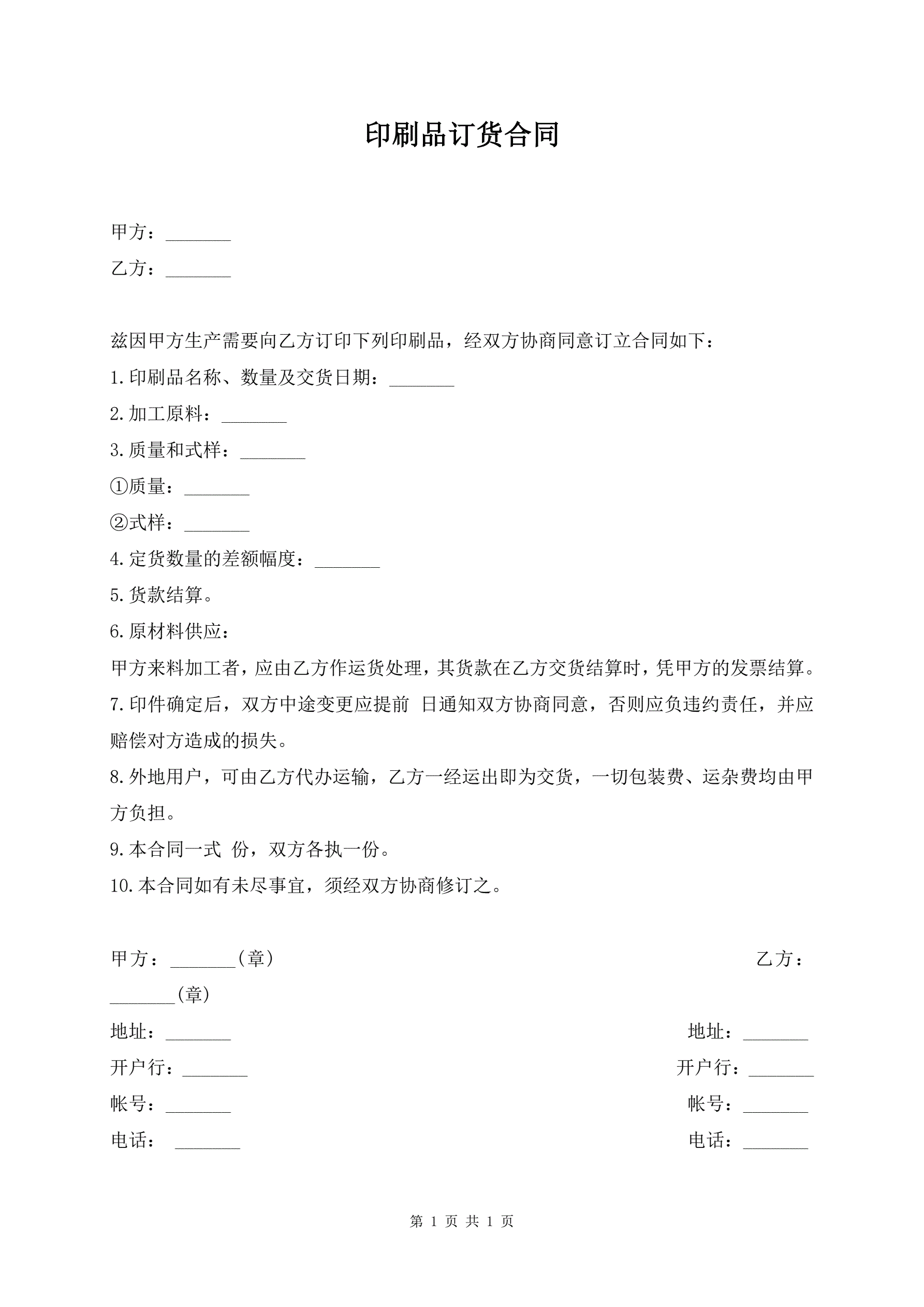 印刷品订货合同
