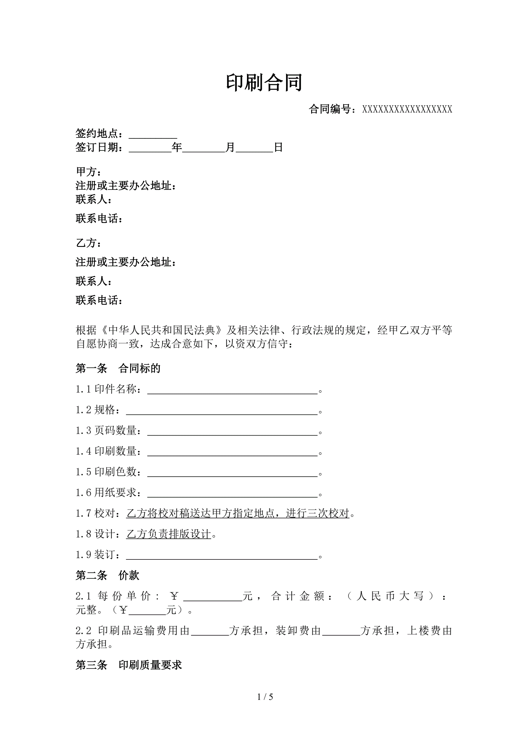 印刷合同