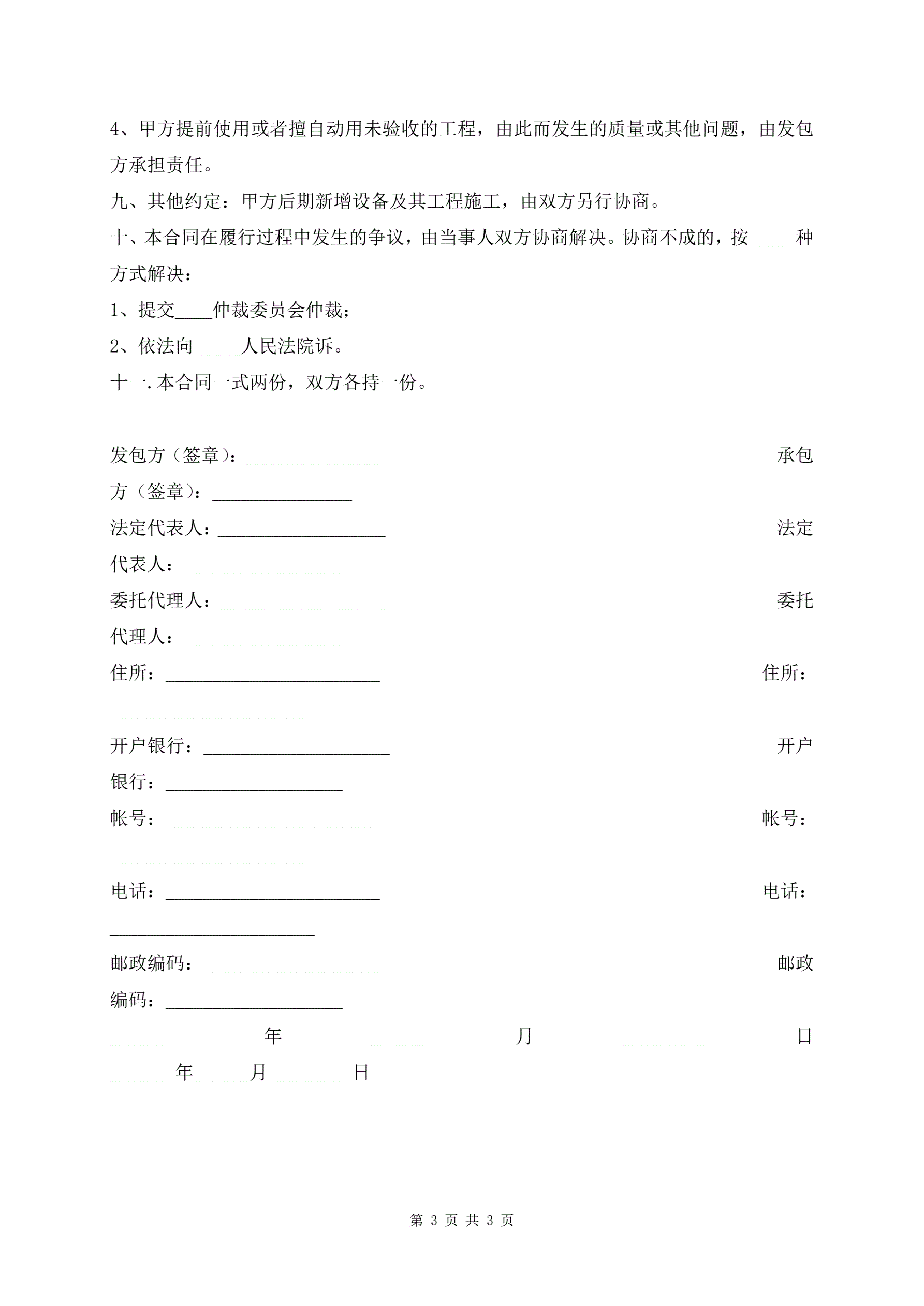 网络安装加工工程承包协议