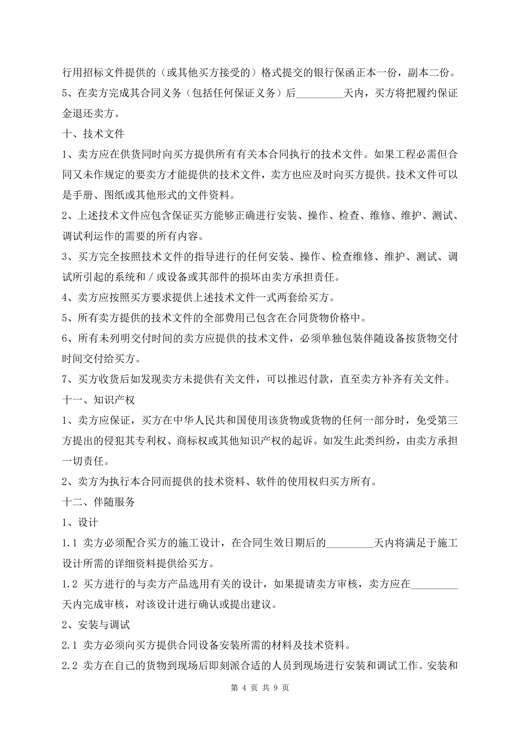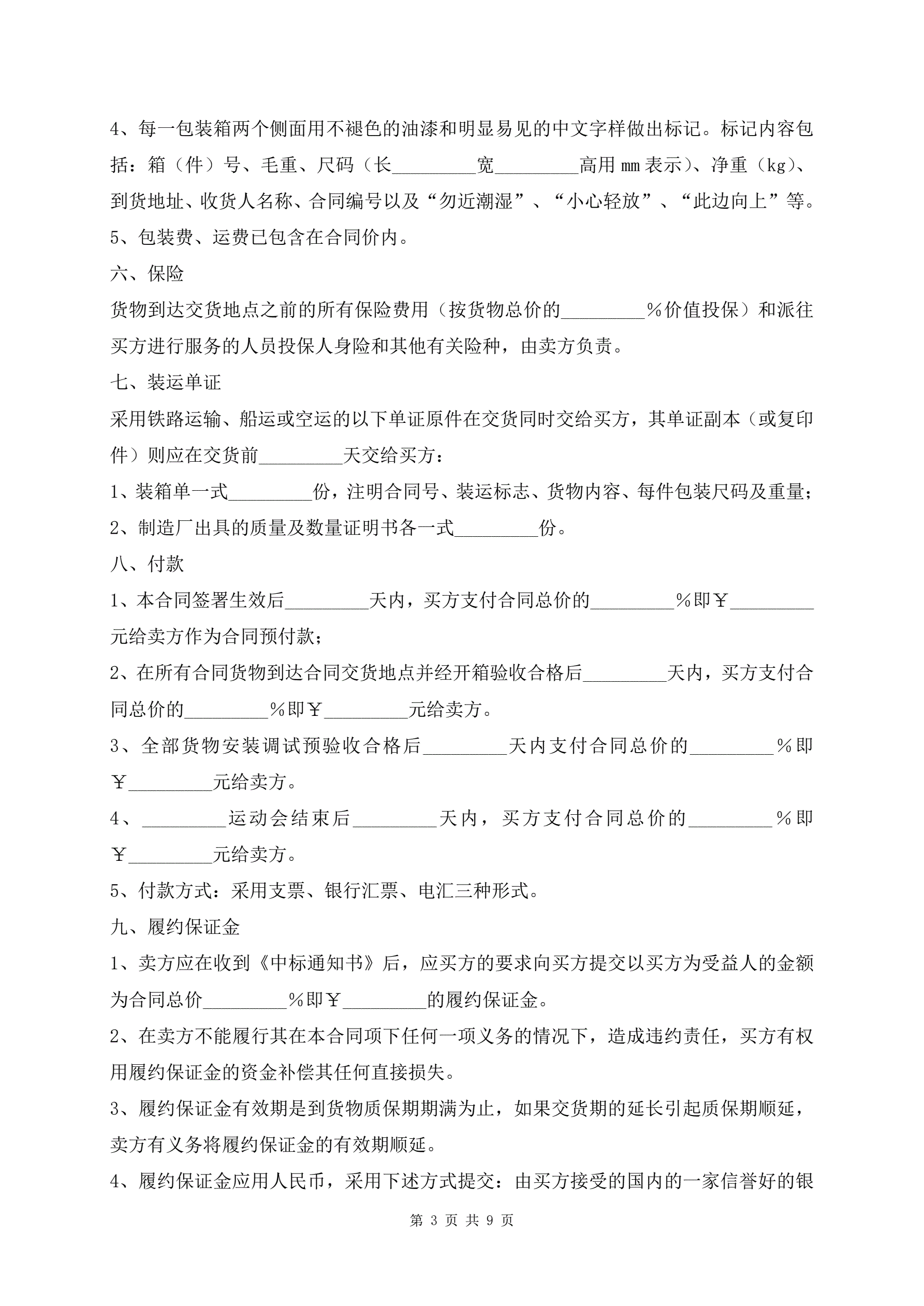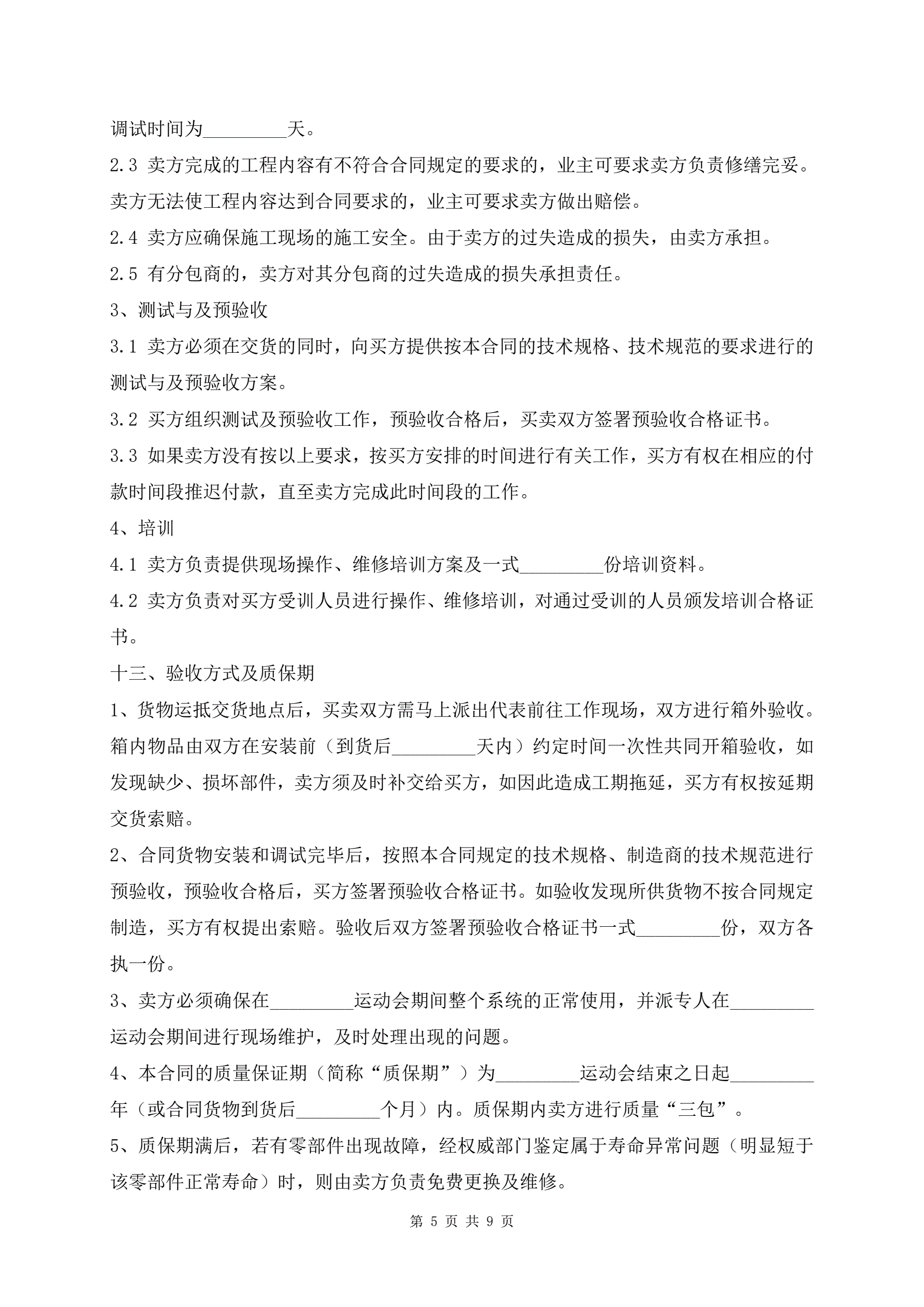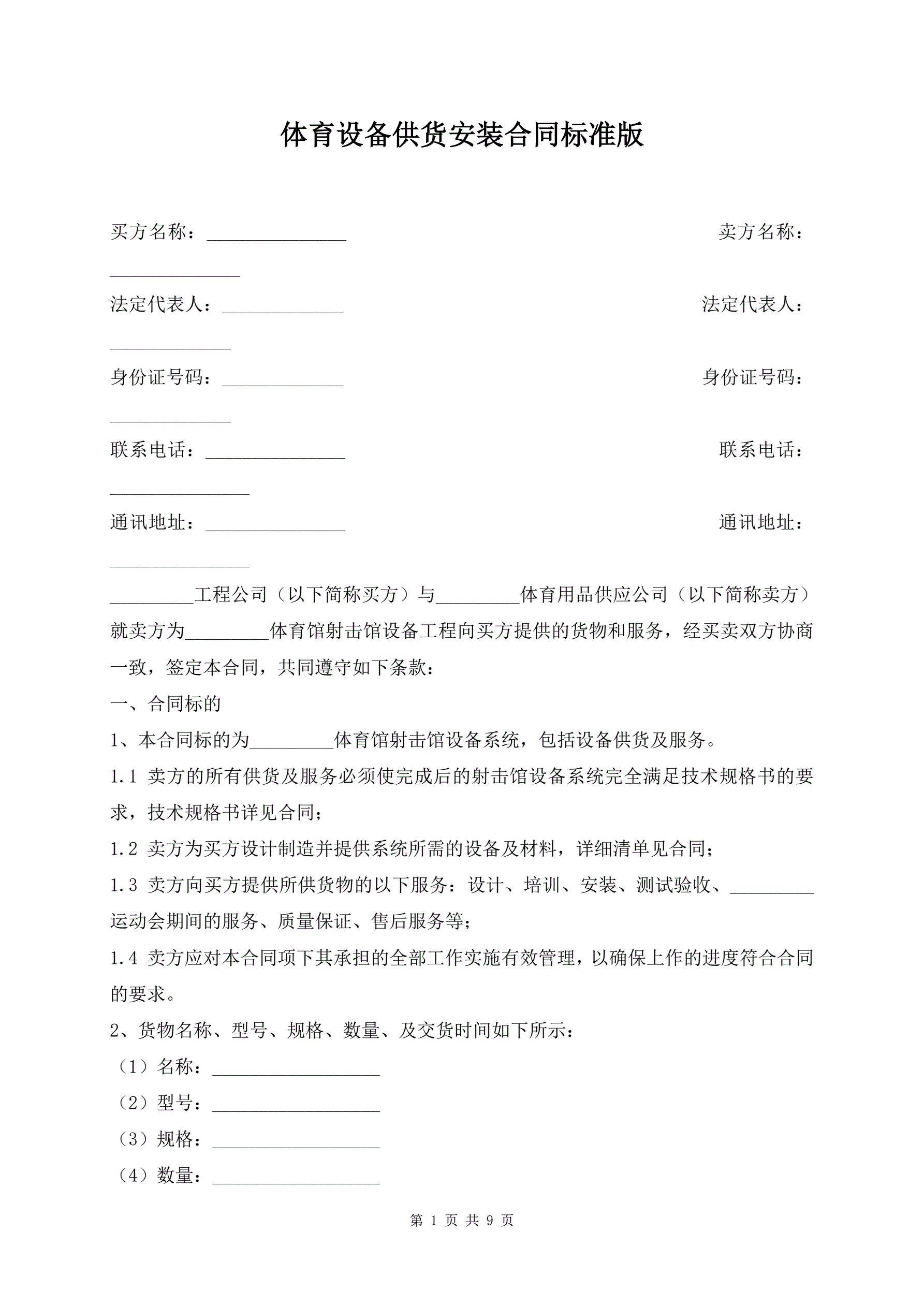 >体育设备供货安装合同标准版