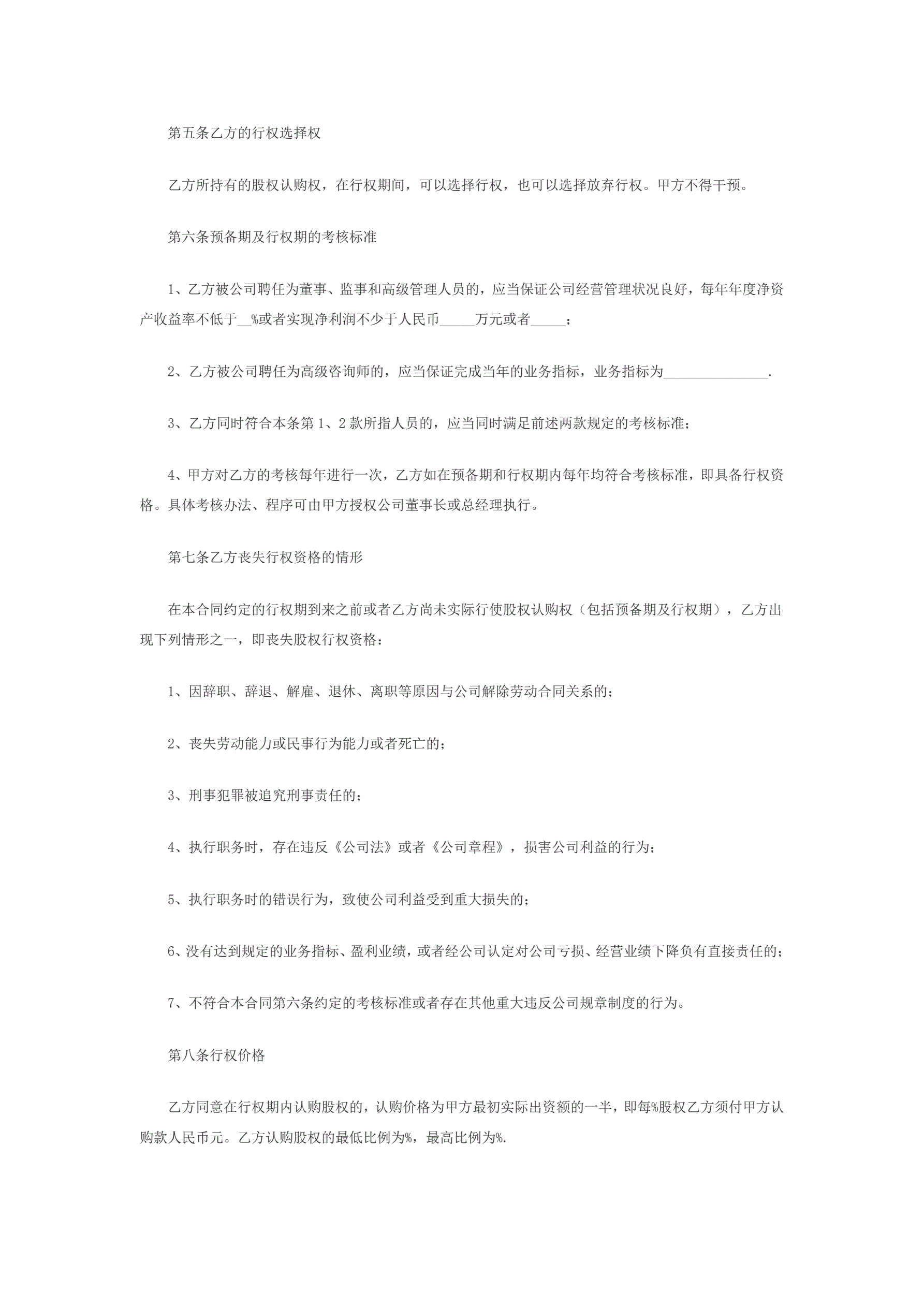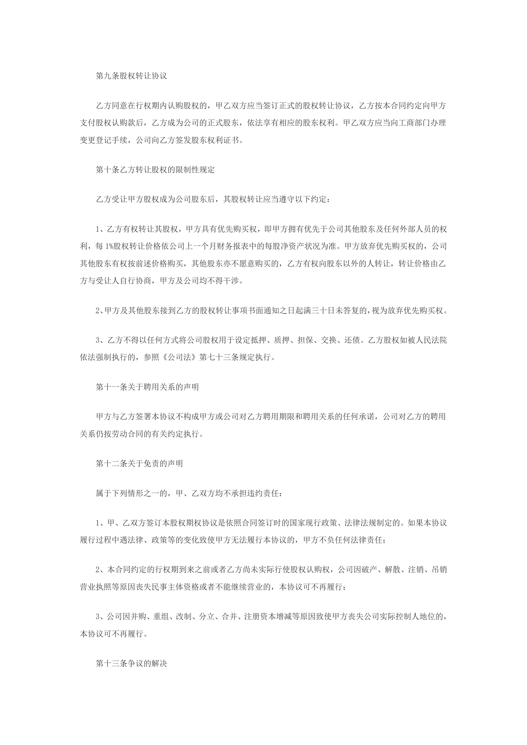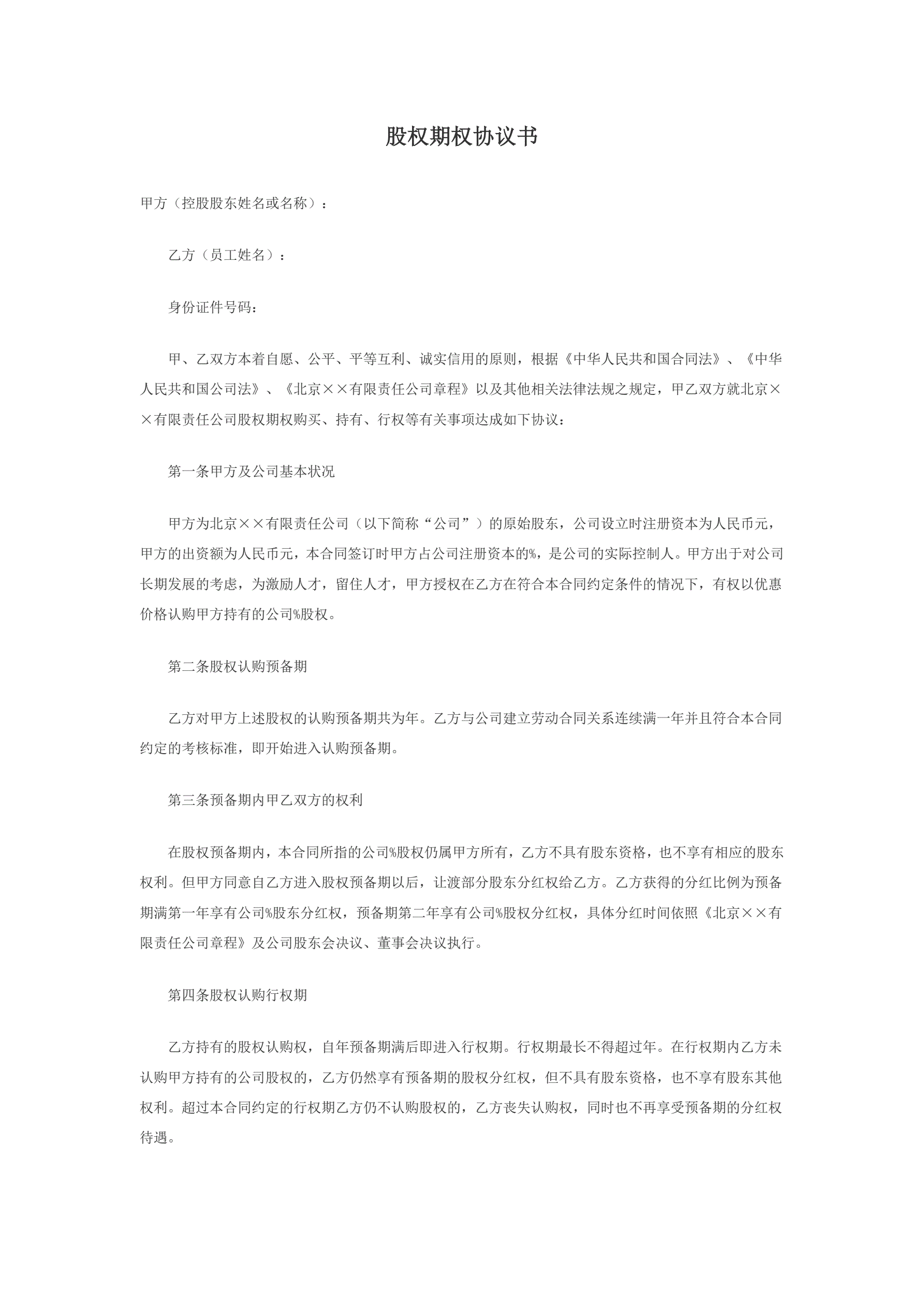 创业公司股权期权协议书