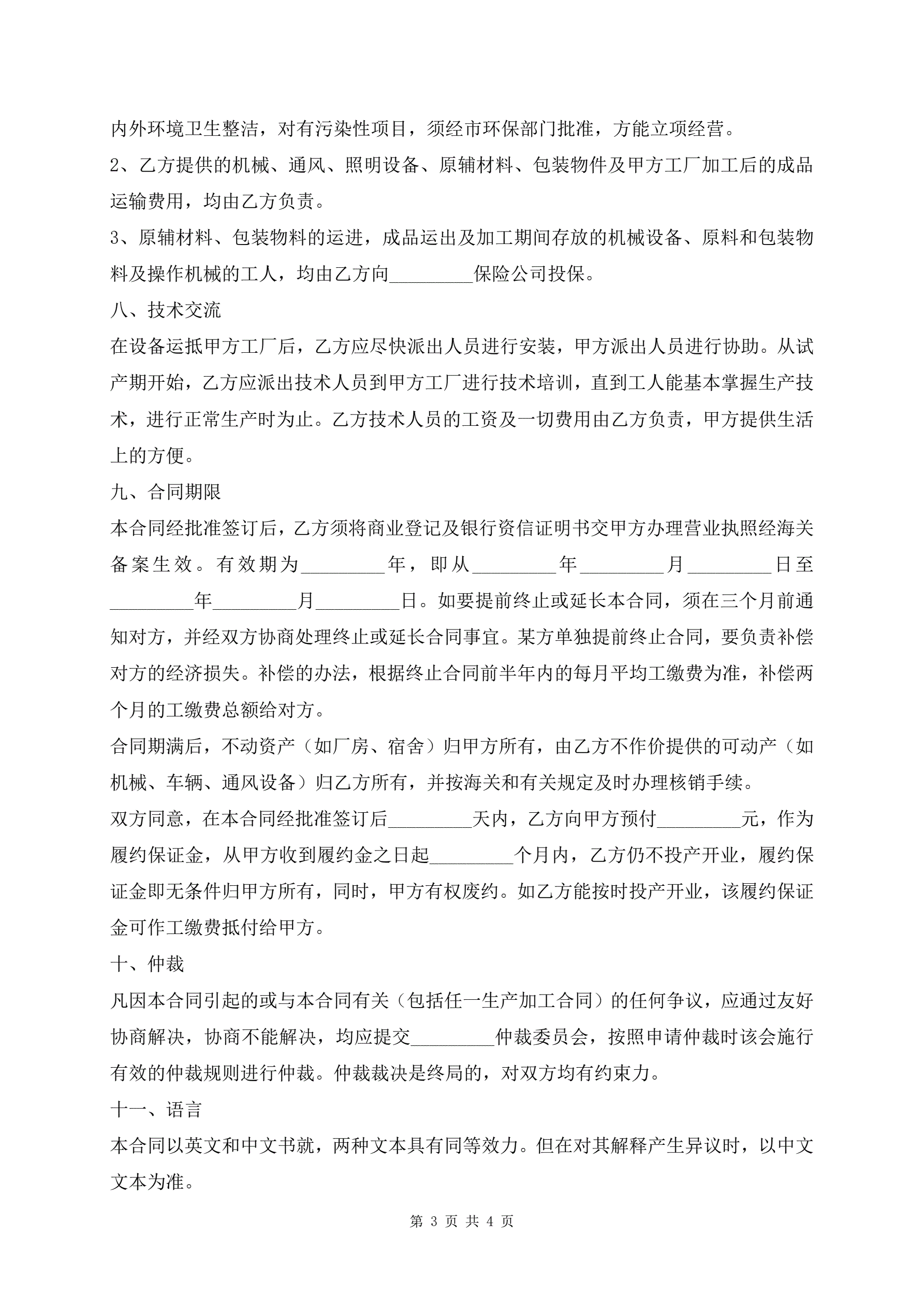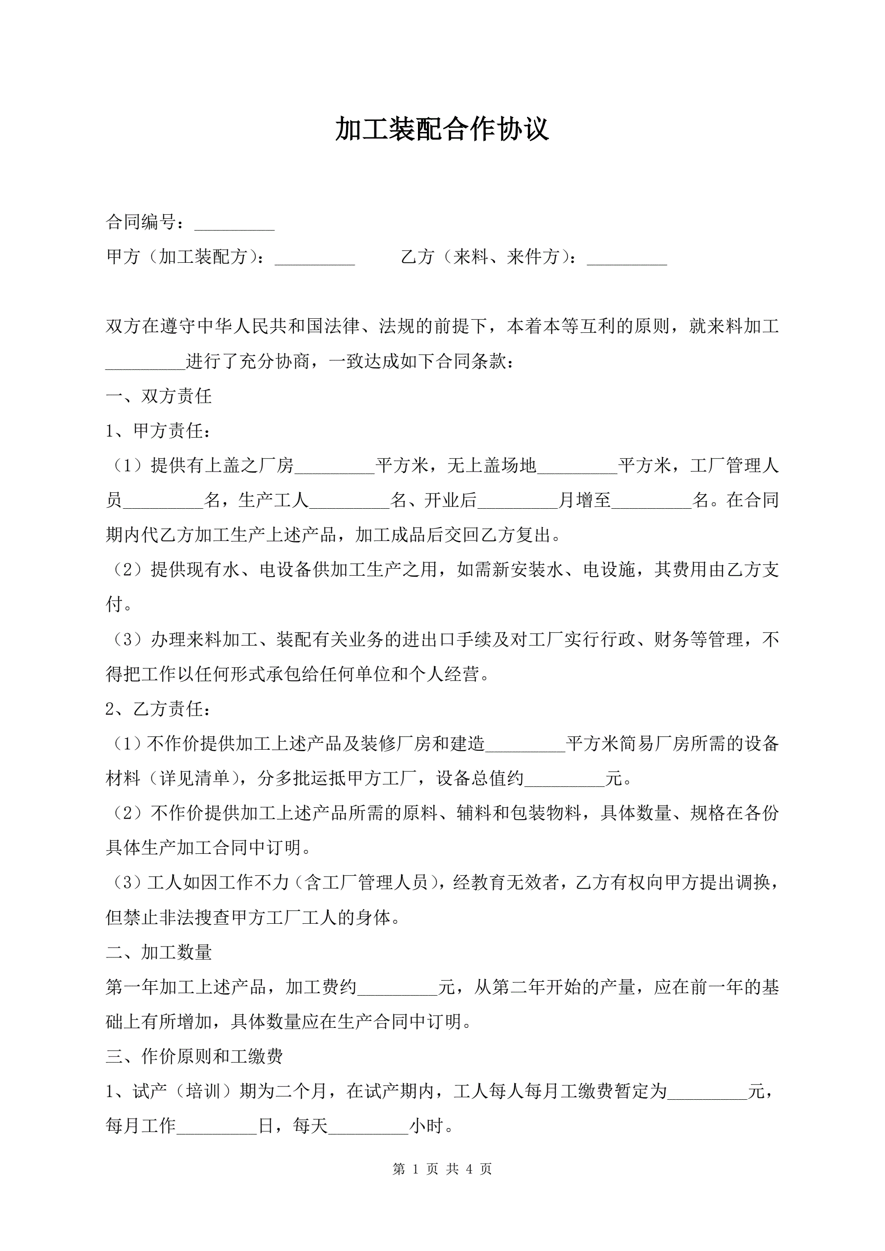 加工装配合作协议