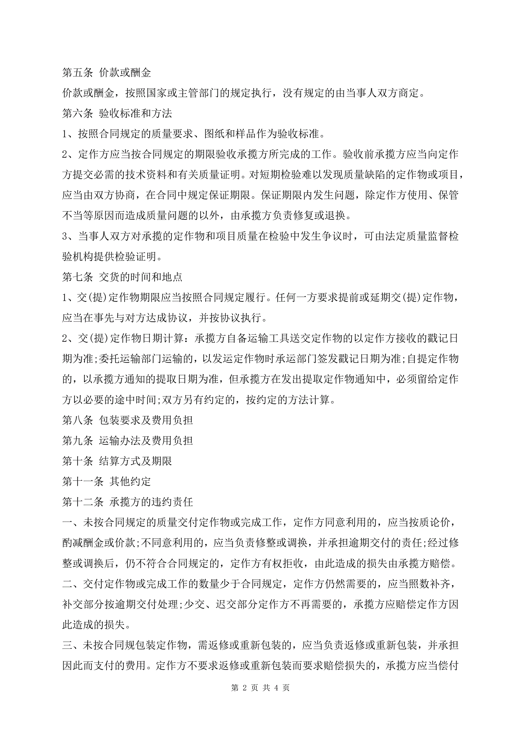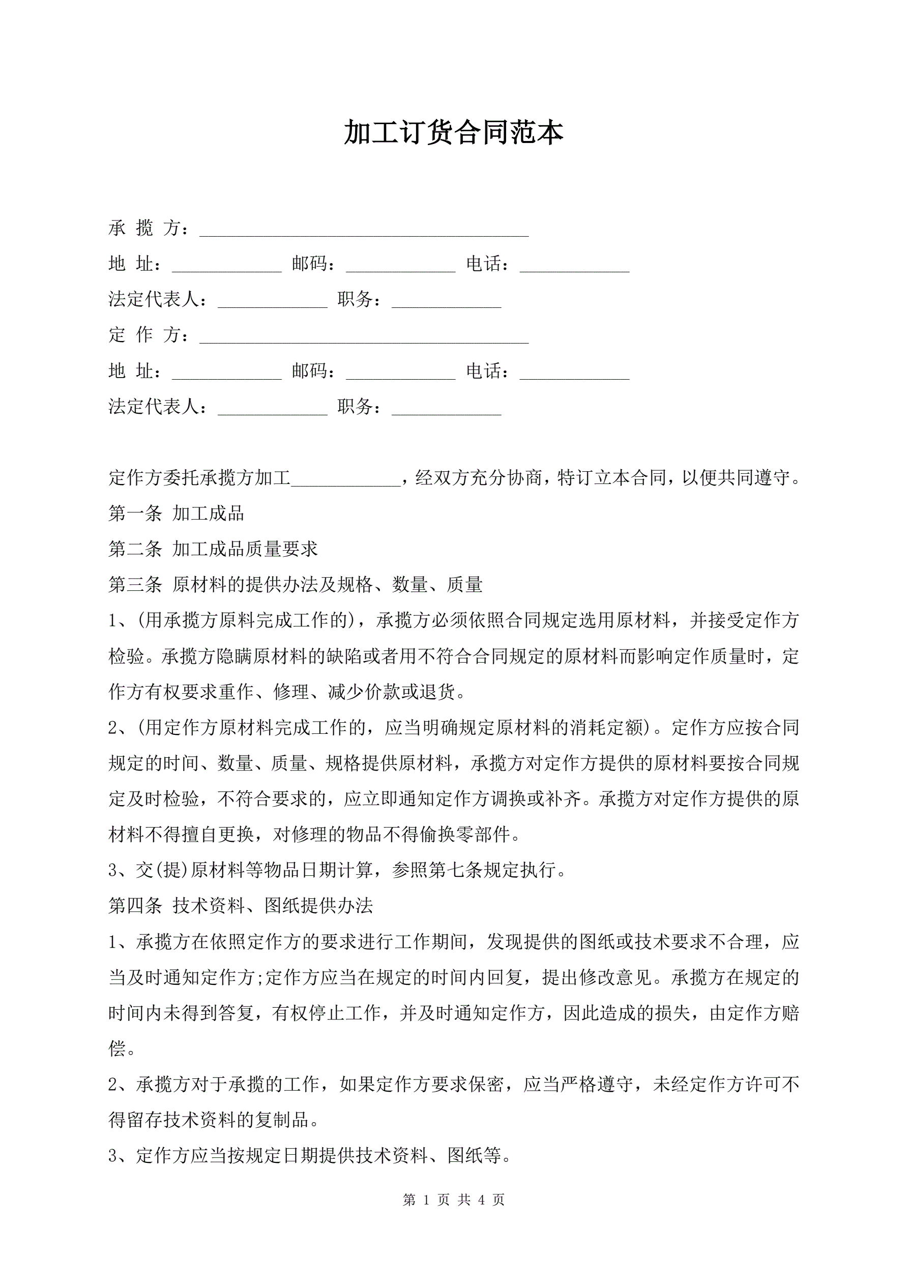加工订货合同范本