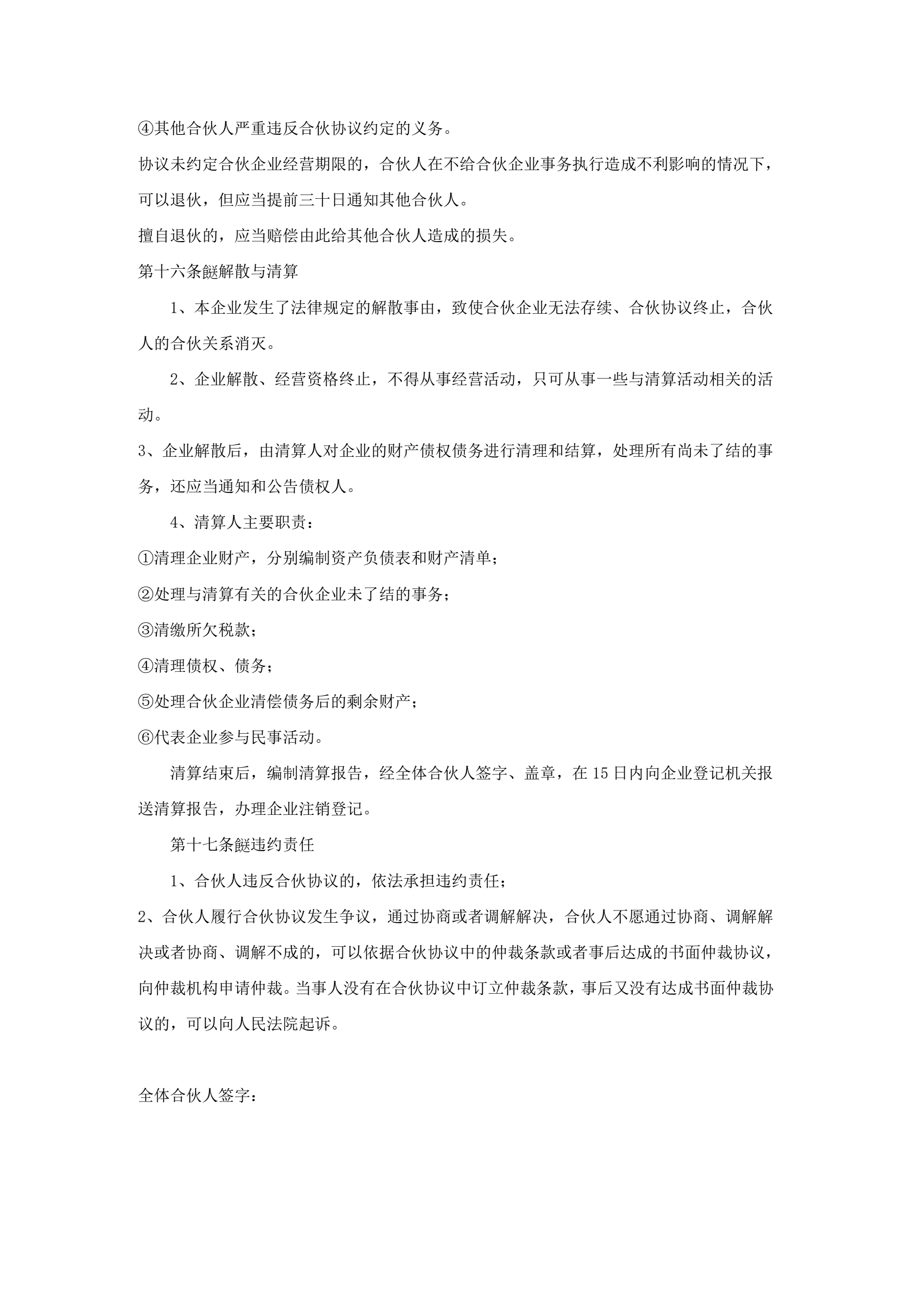 合伙协议参考格式