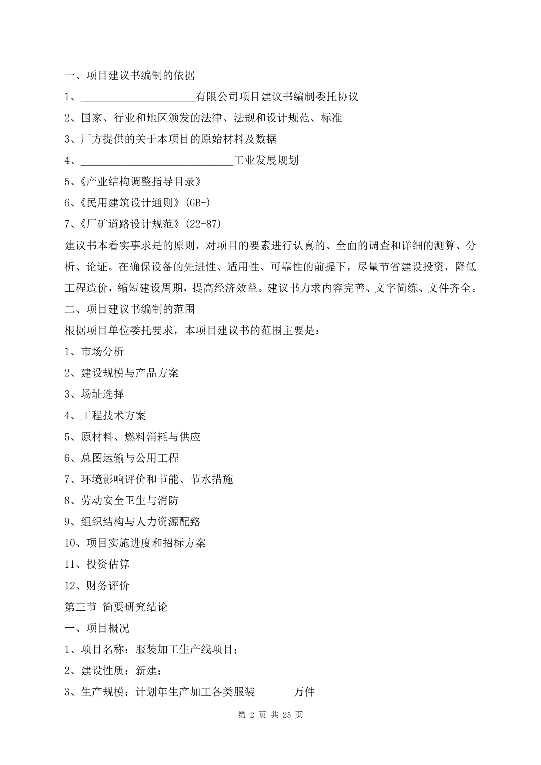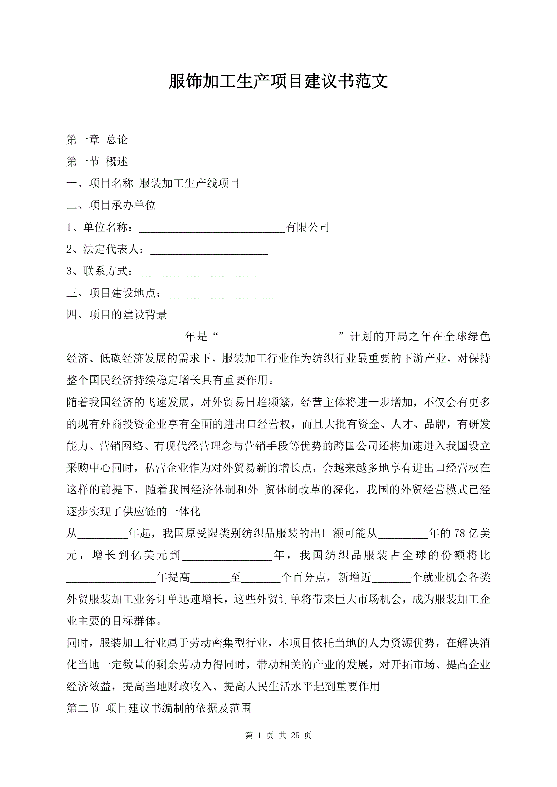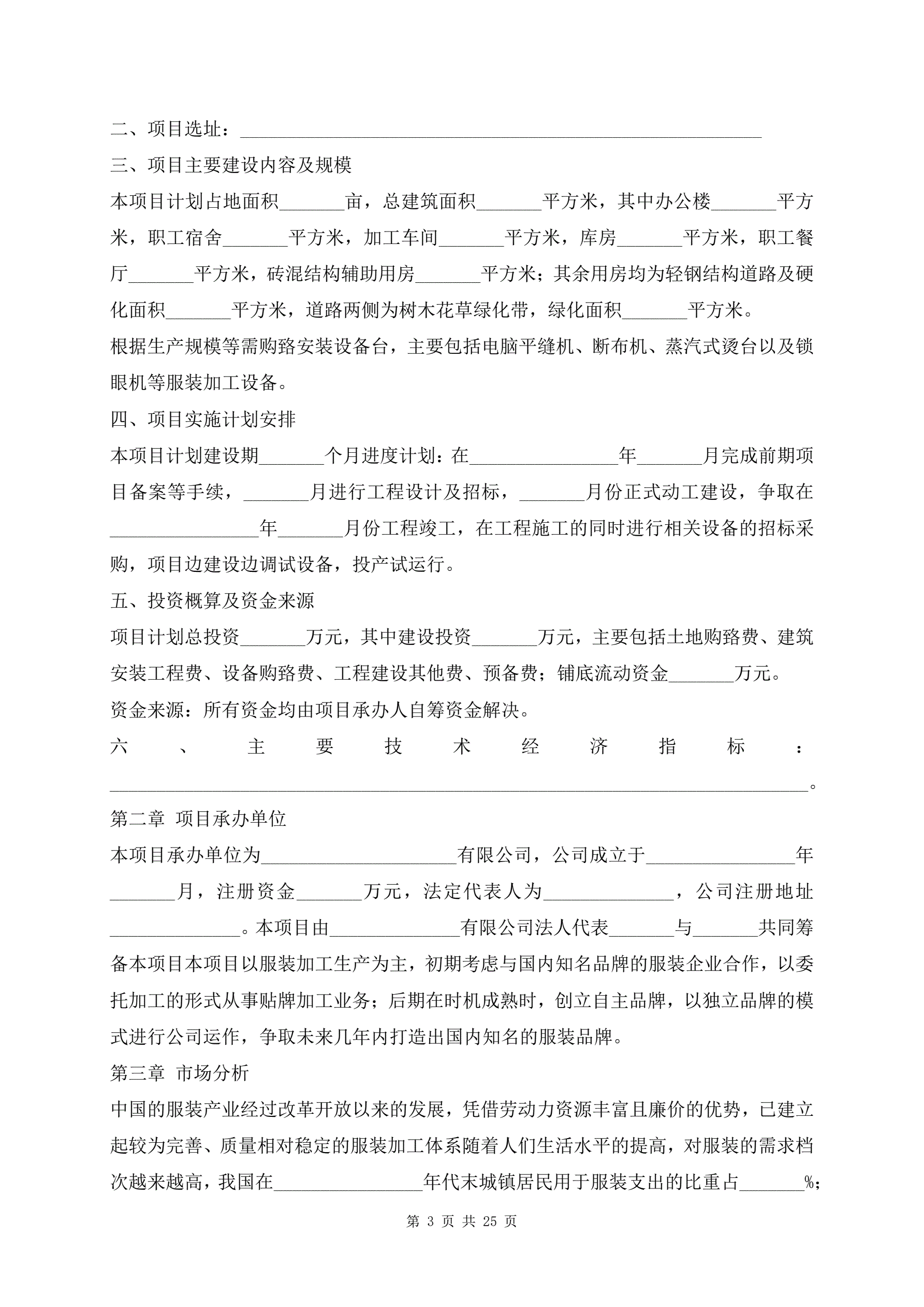 服饰加工生产项目建议书范文