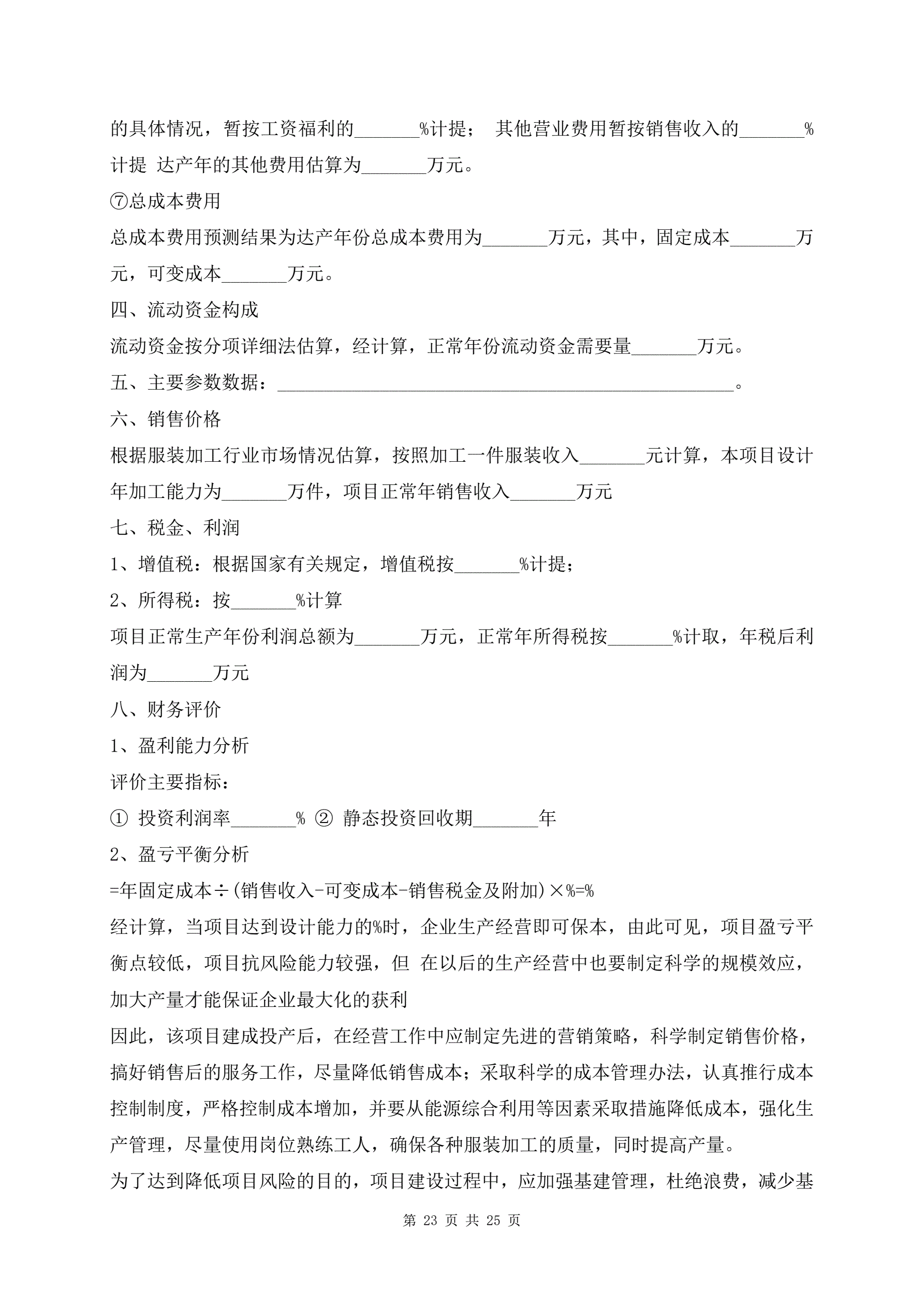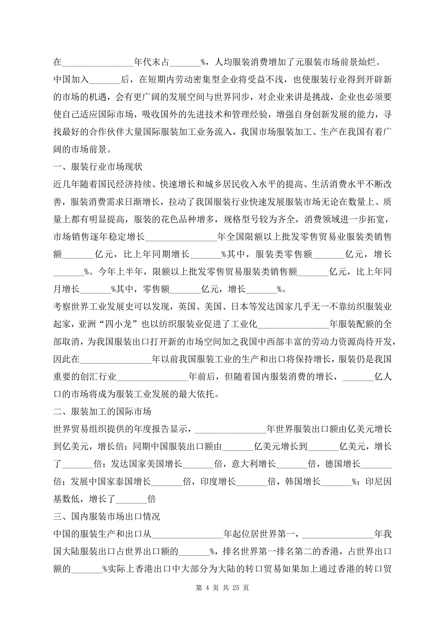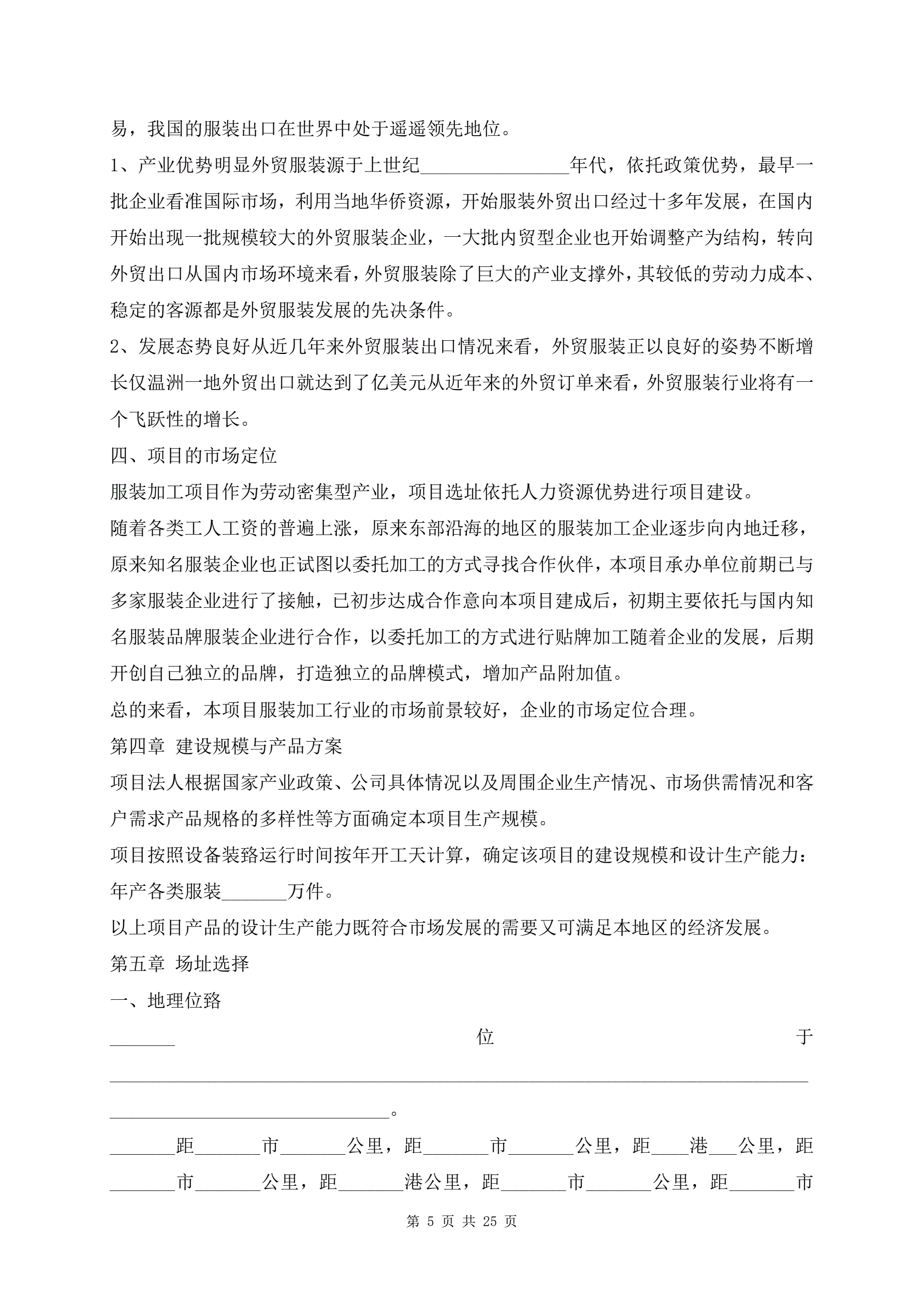 服饰加工生产项目建议书范文