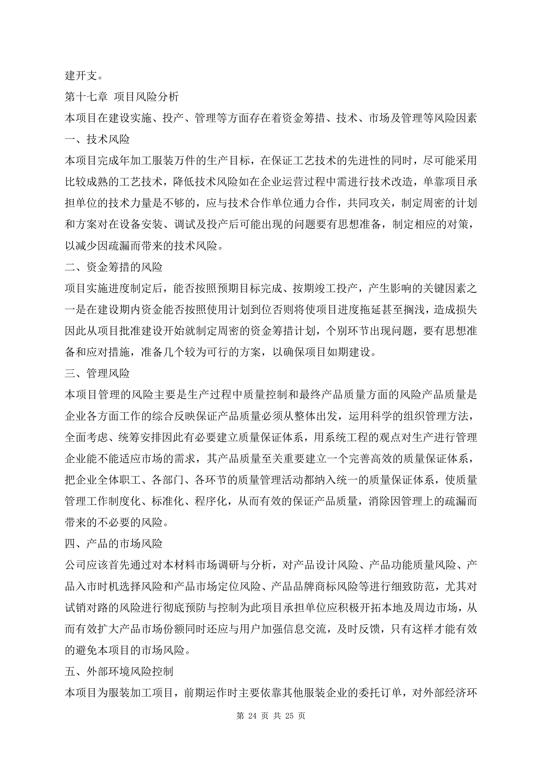 >服饰加工生产项目建议书范文