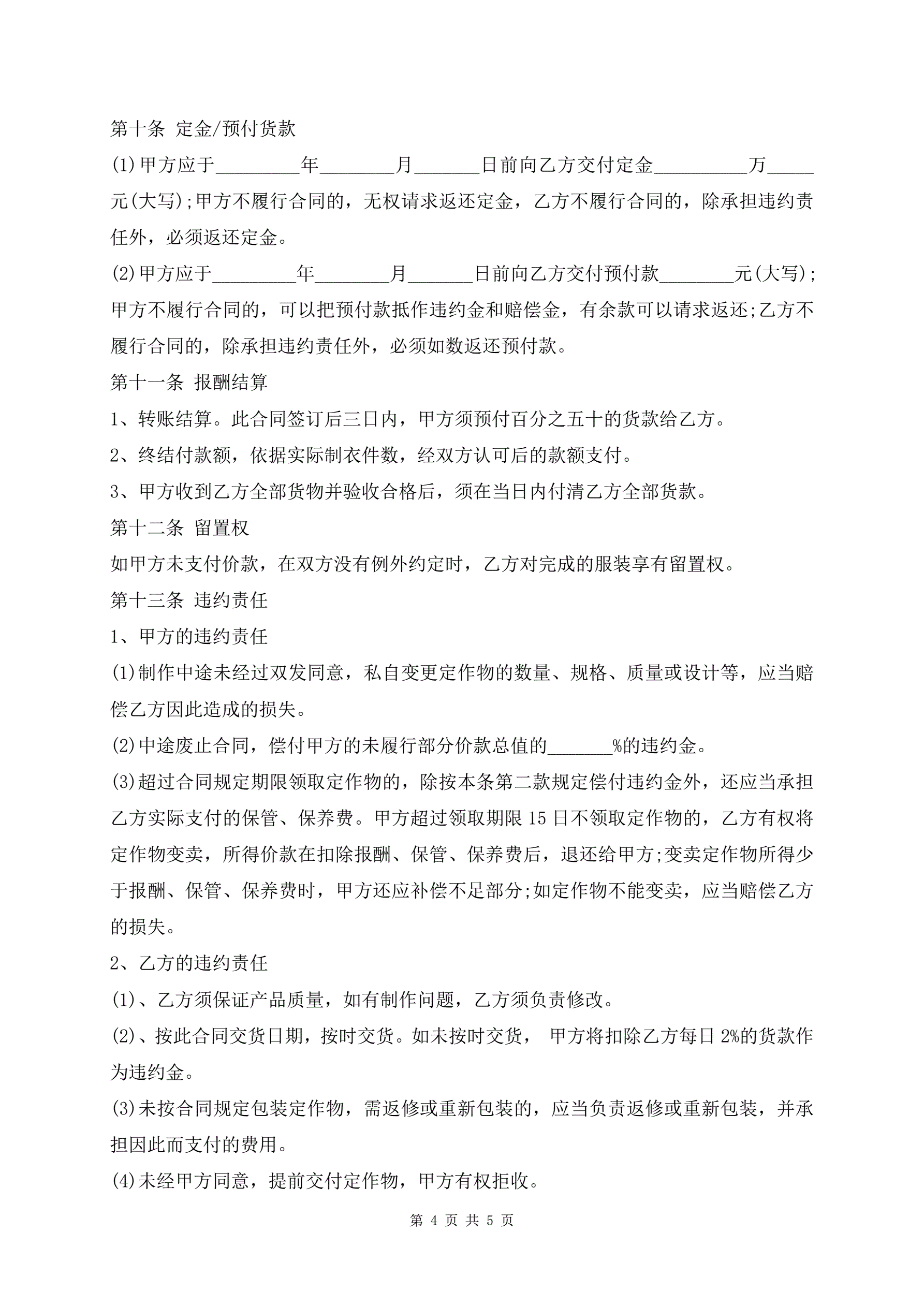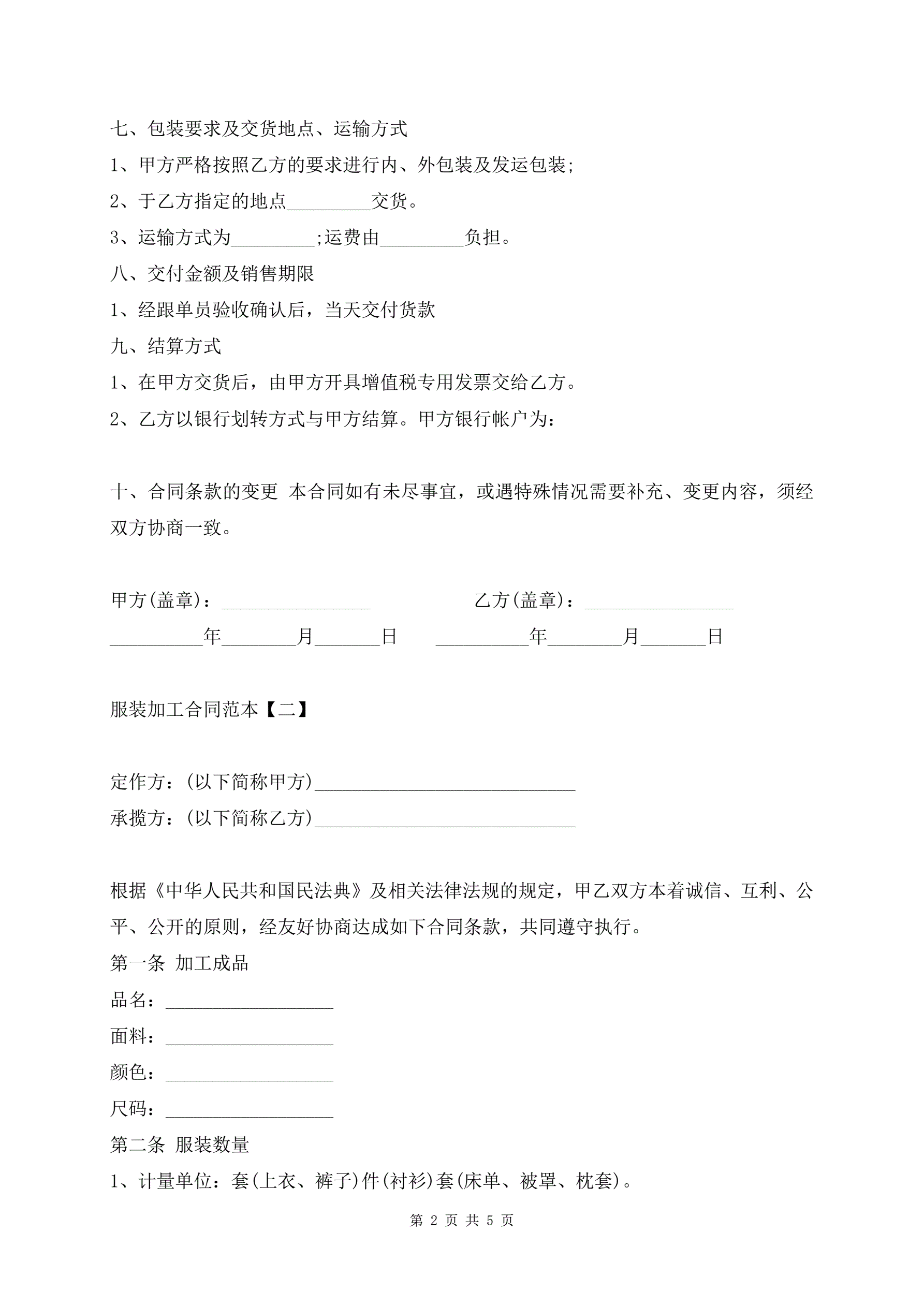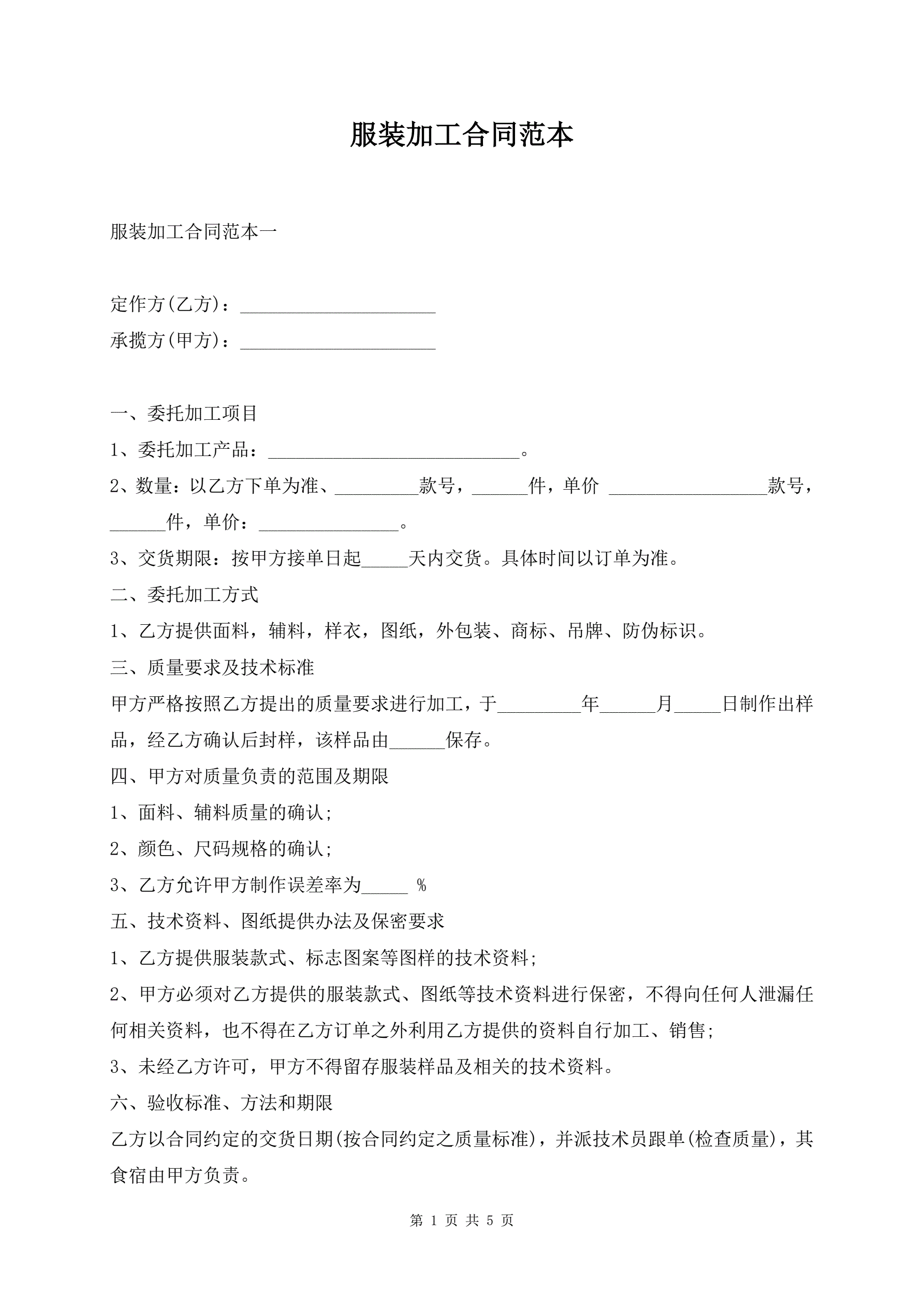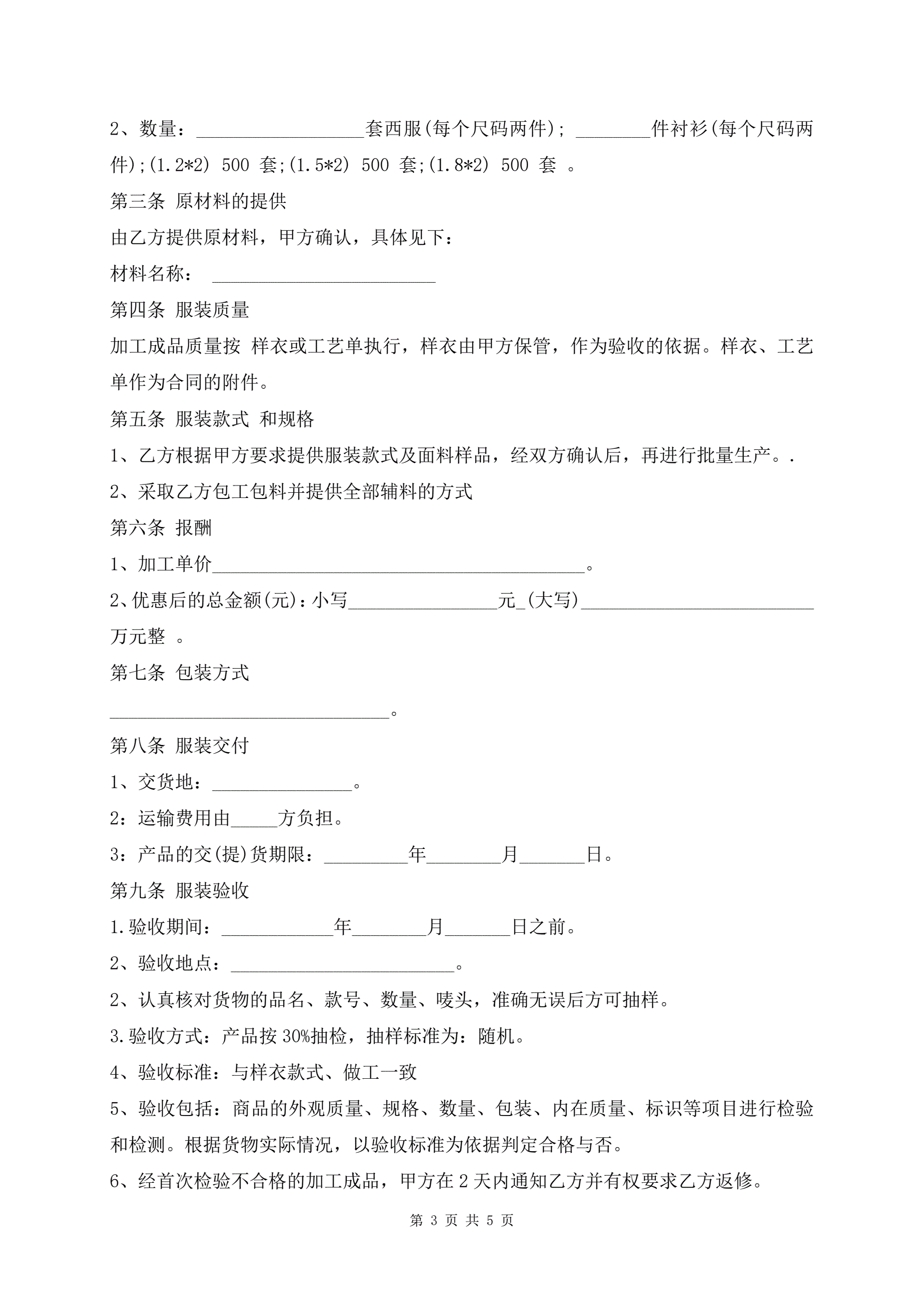 服装加工合同范本