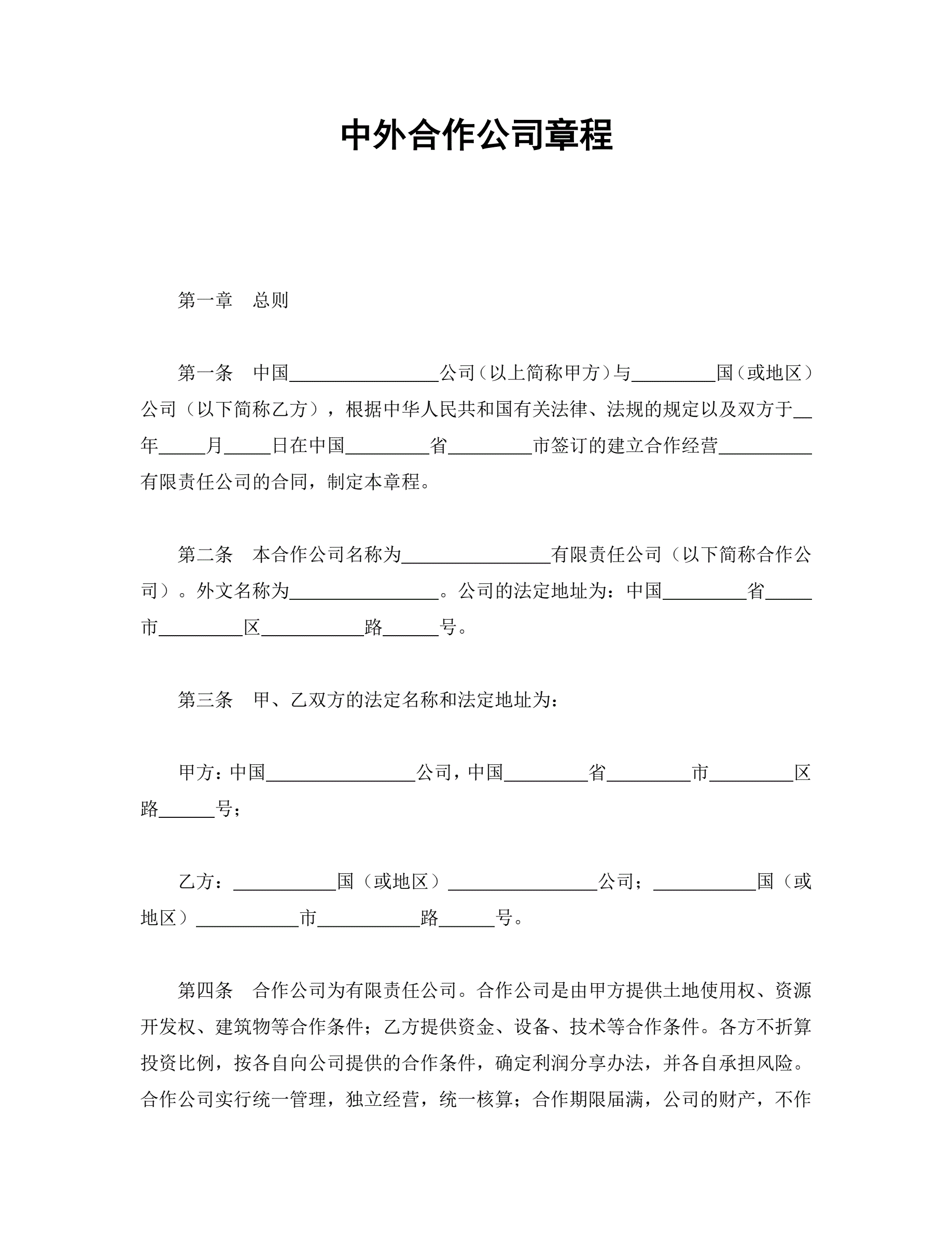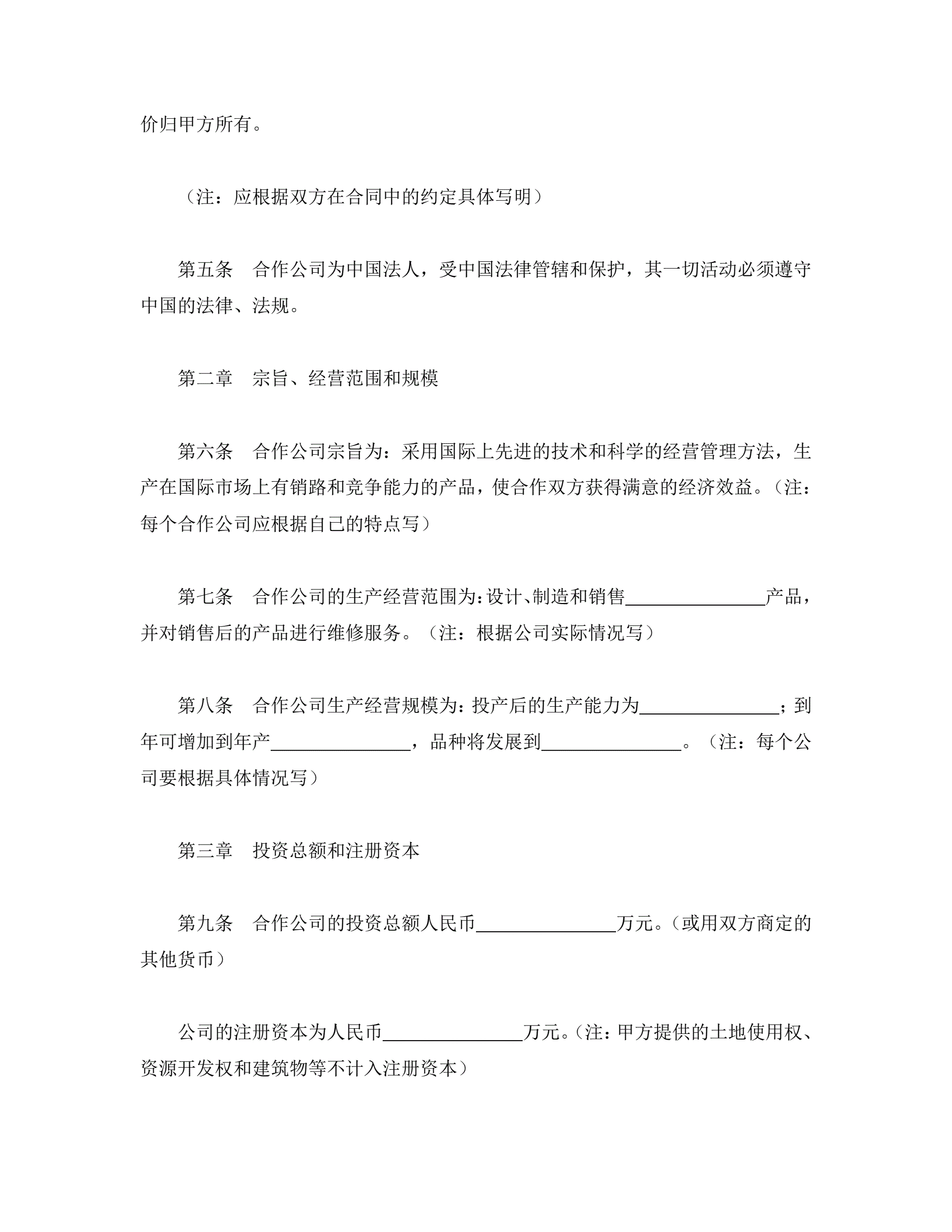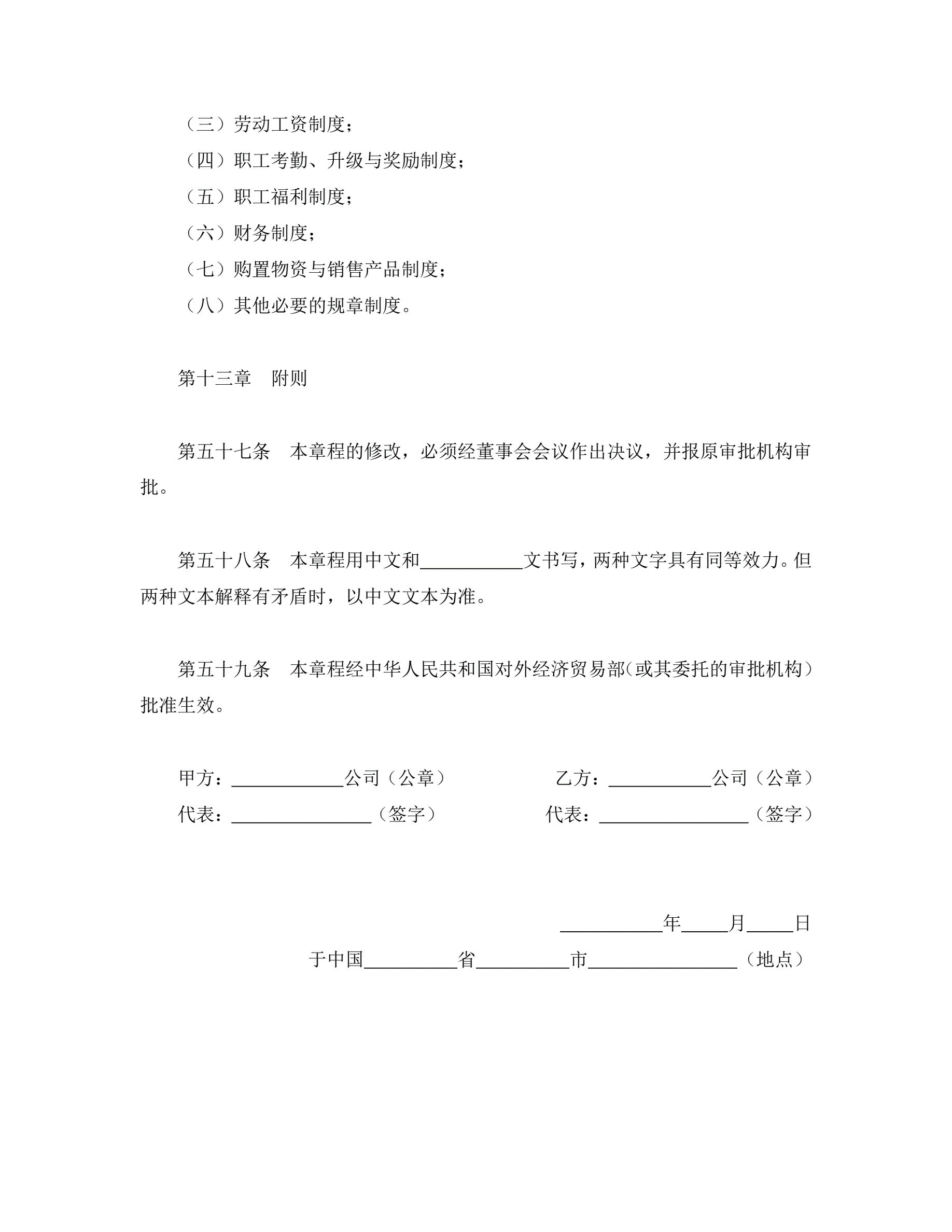 >中外合资公司章程(3)