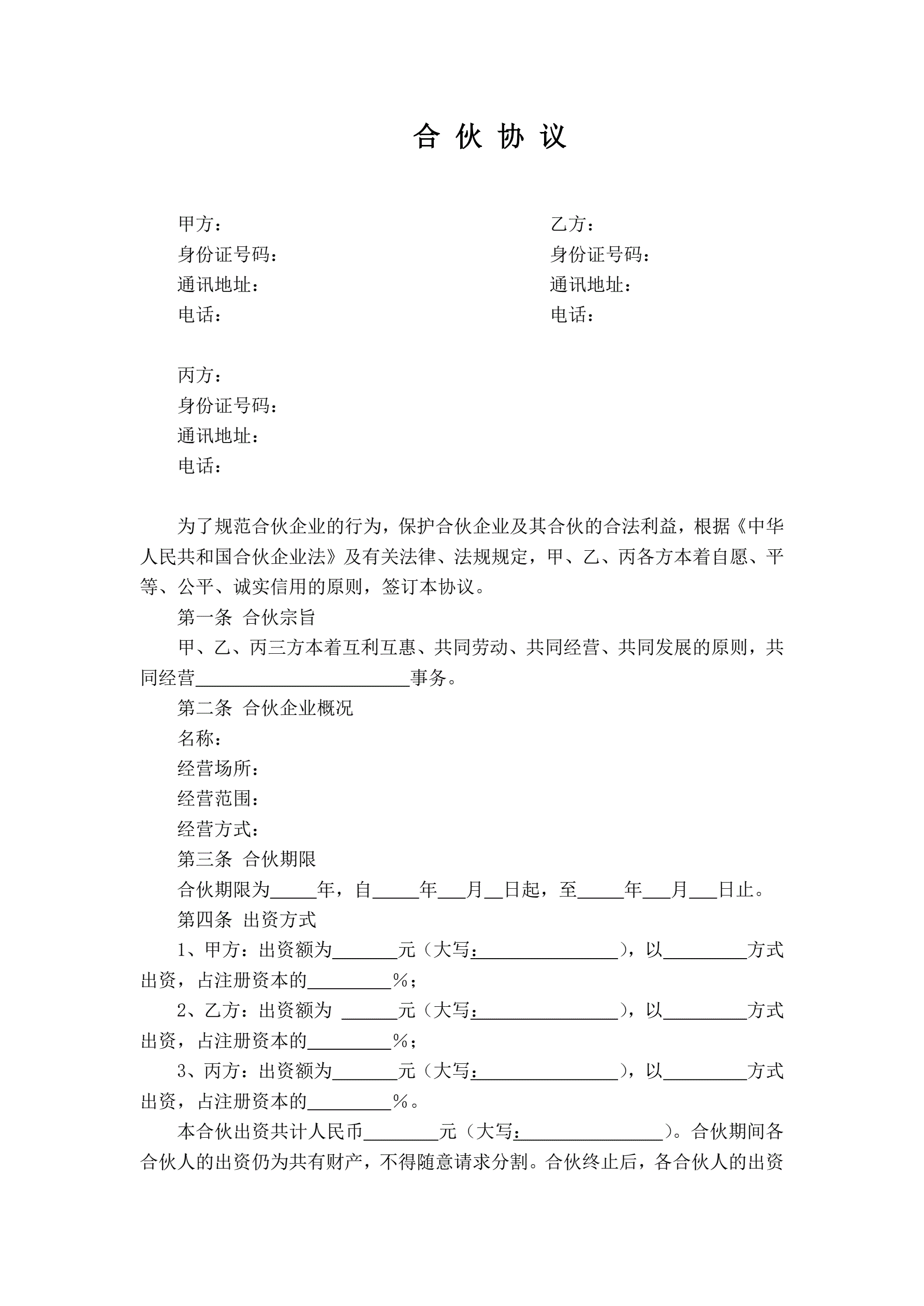 公司股东合伙协议书