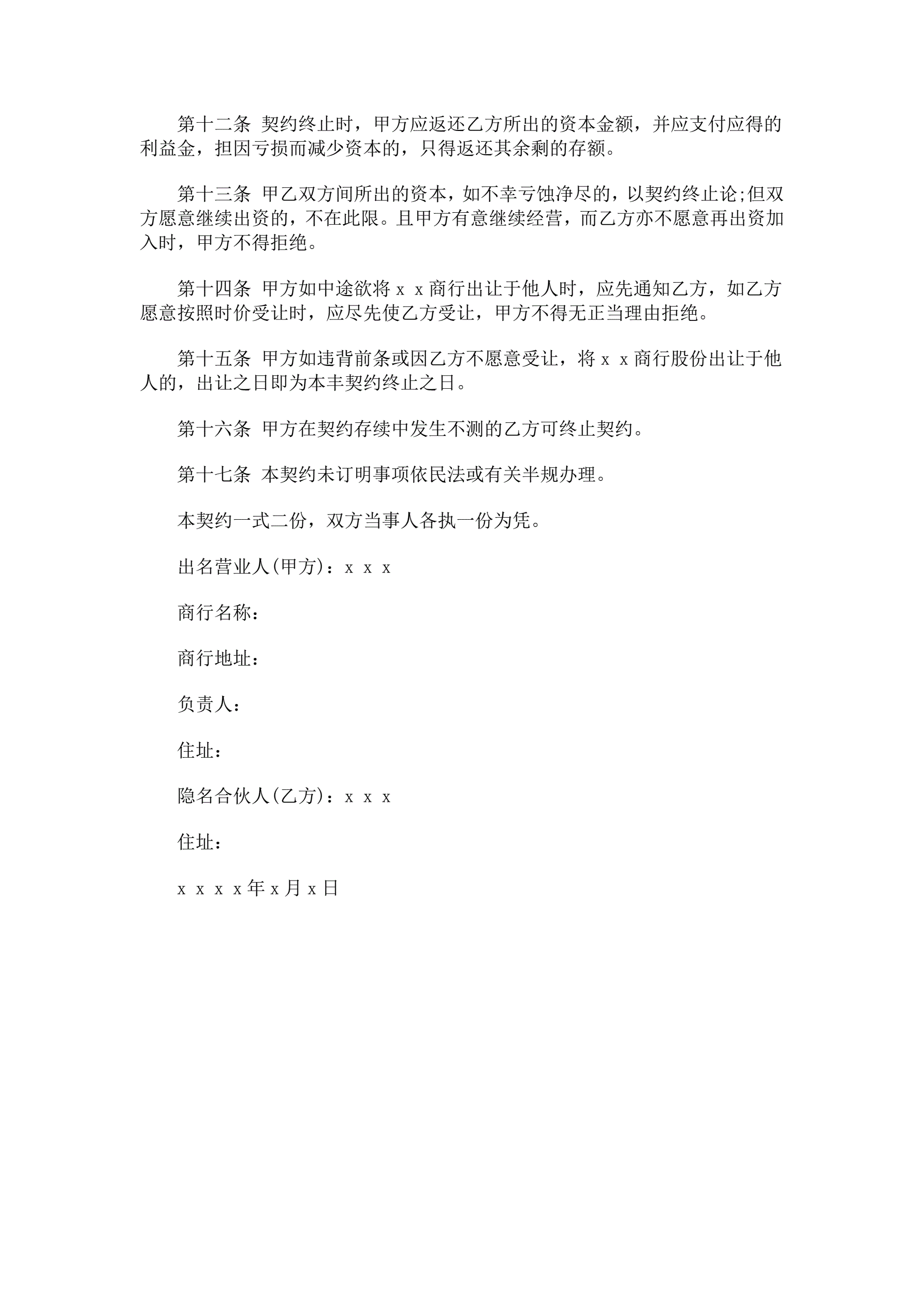 合伙企业隐名股东协议