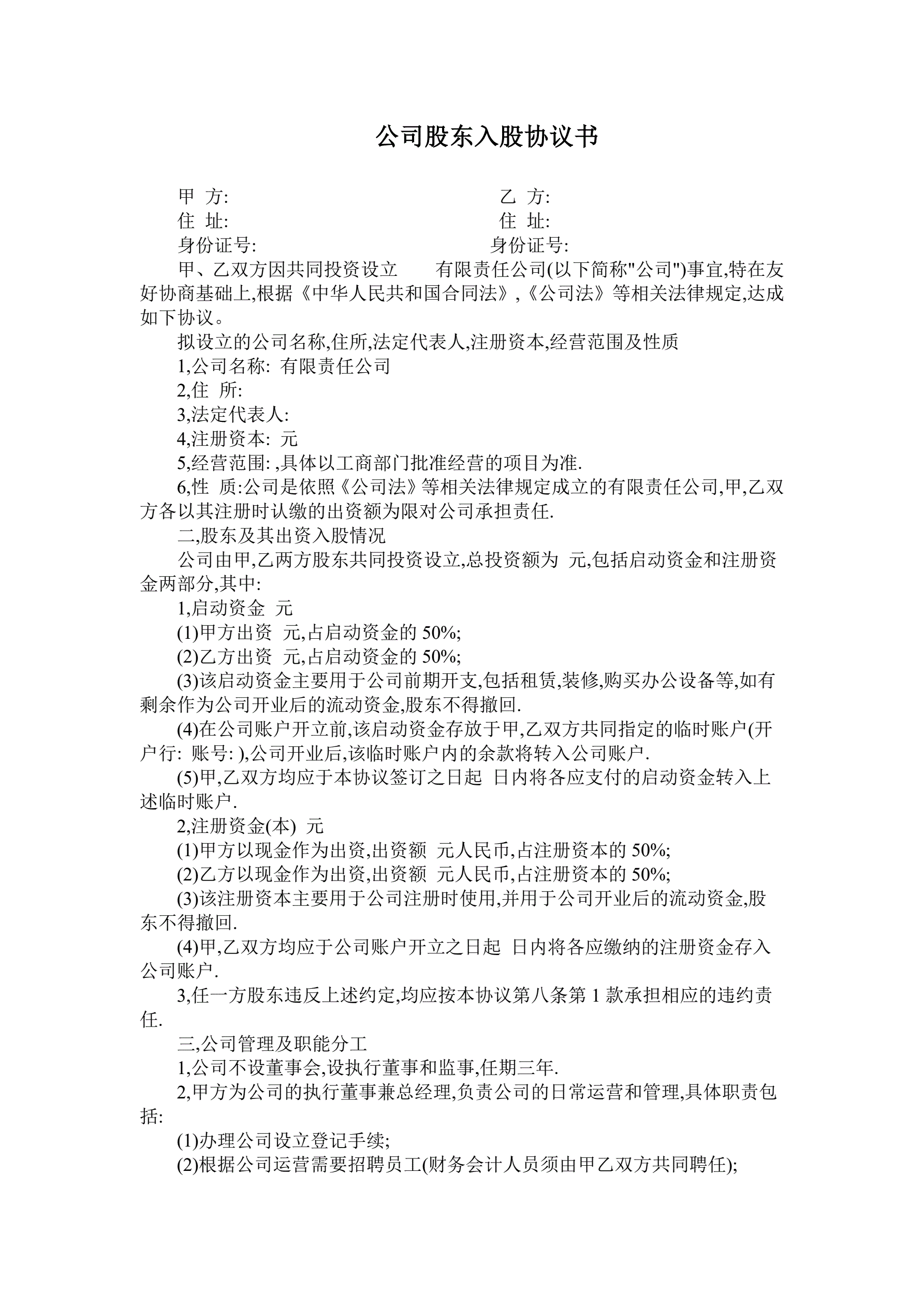 公司股东入股协议书