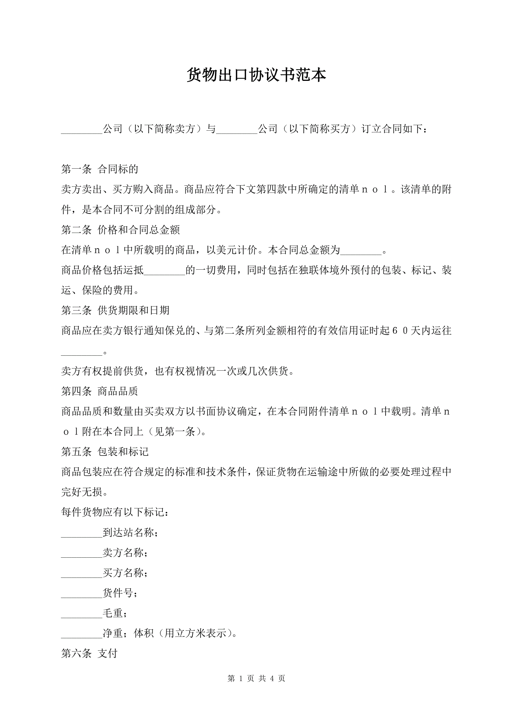 货物出口协议书范本