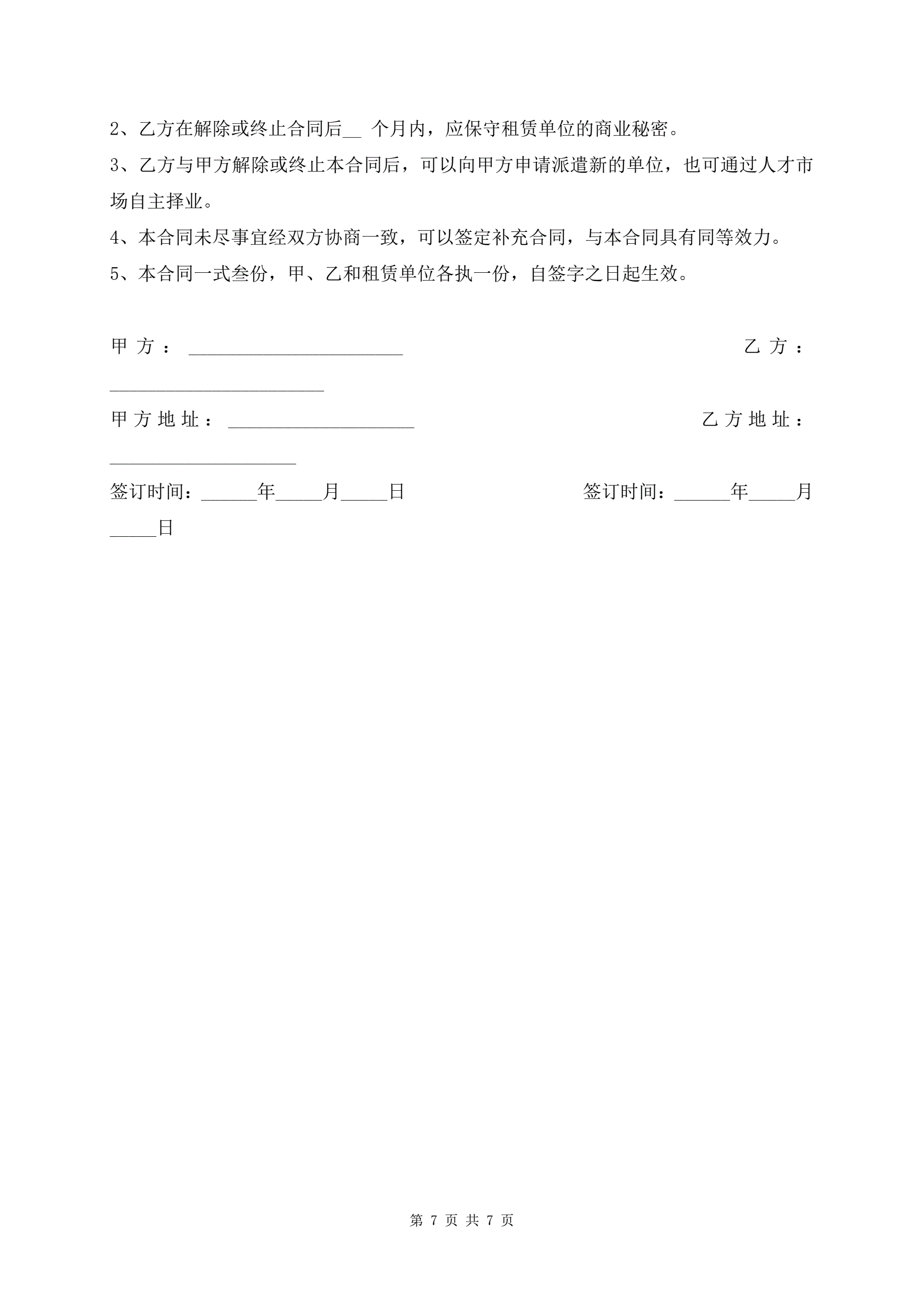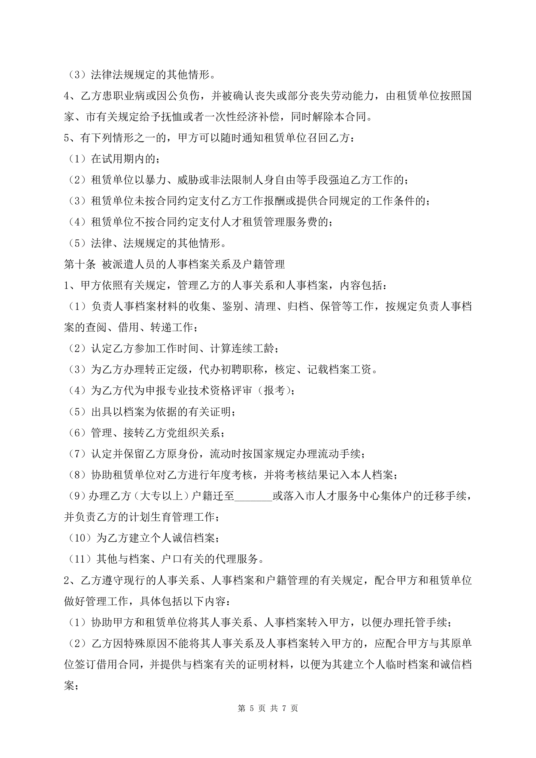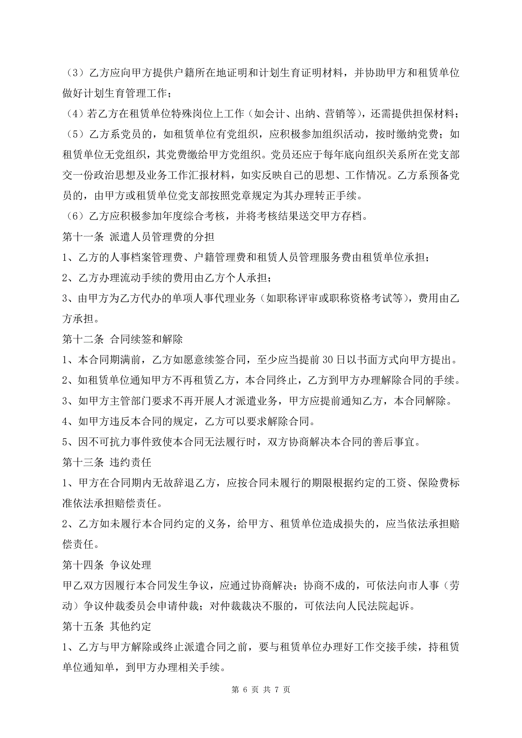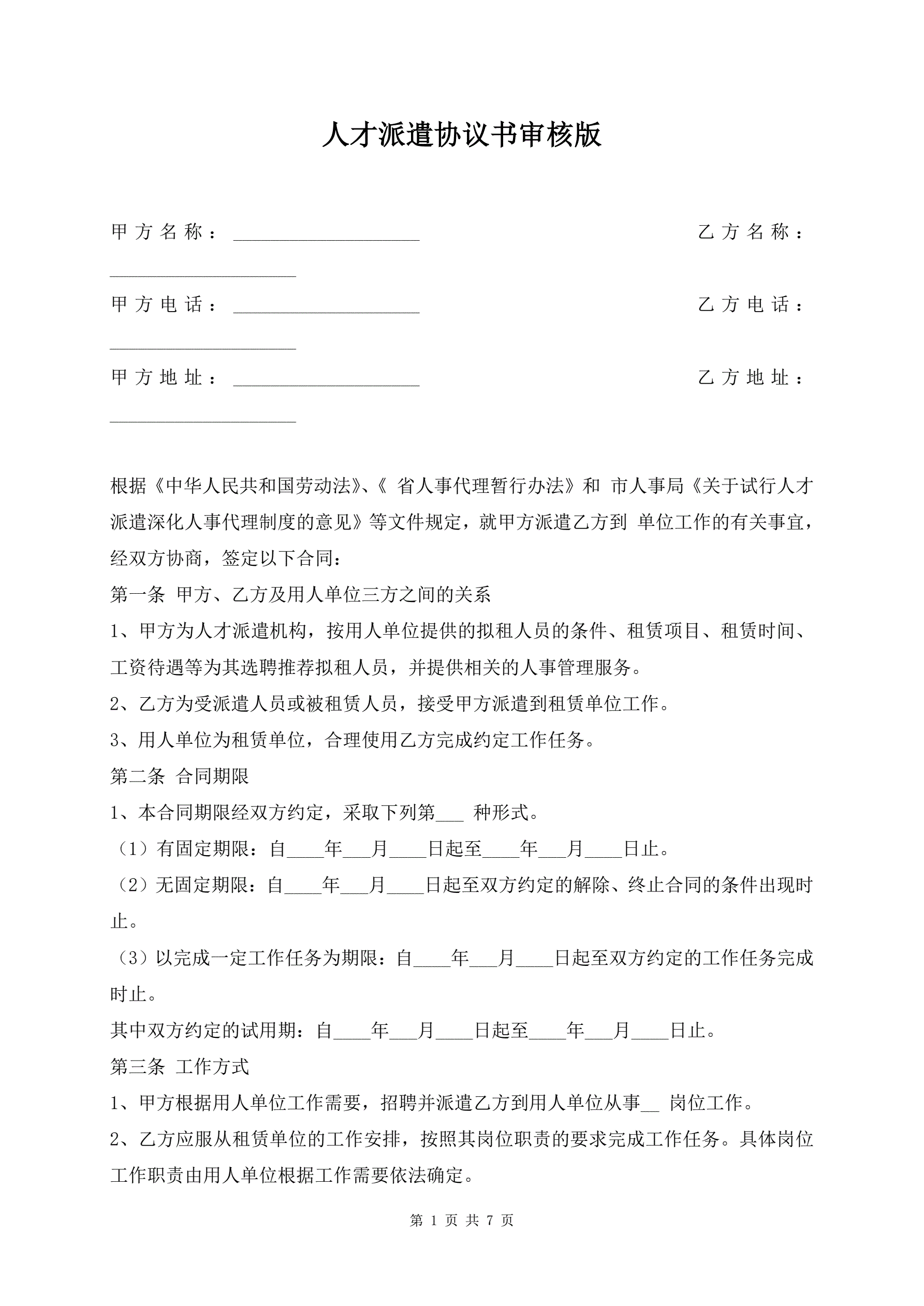 >人才派遣协议书审核版