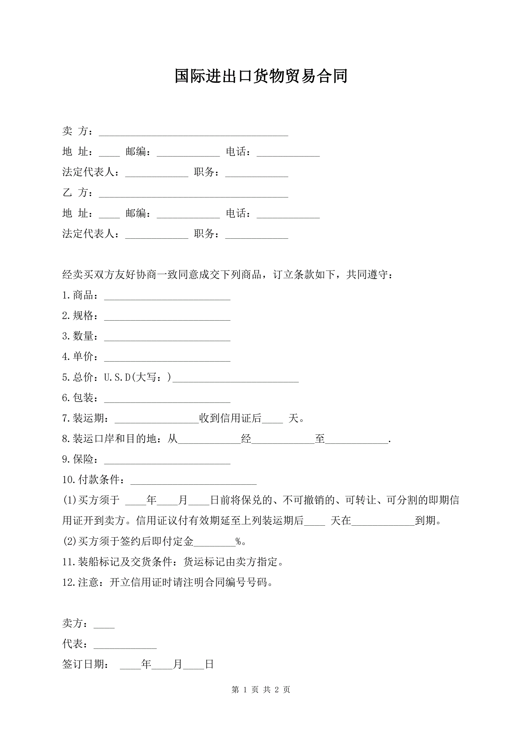 >国际进出口货物贸易合同