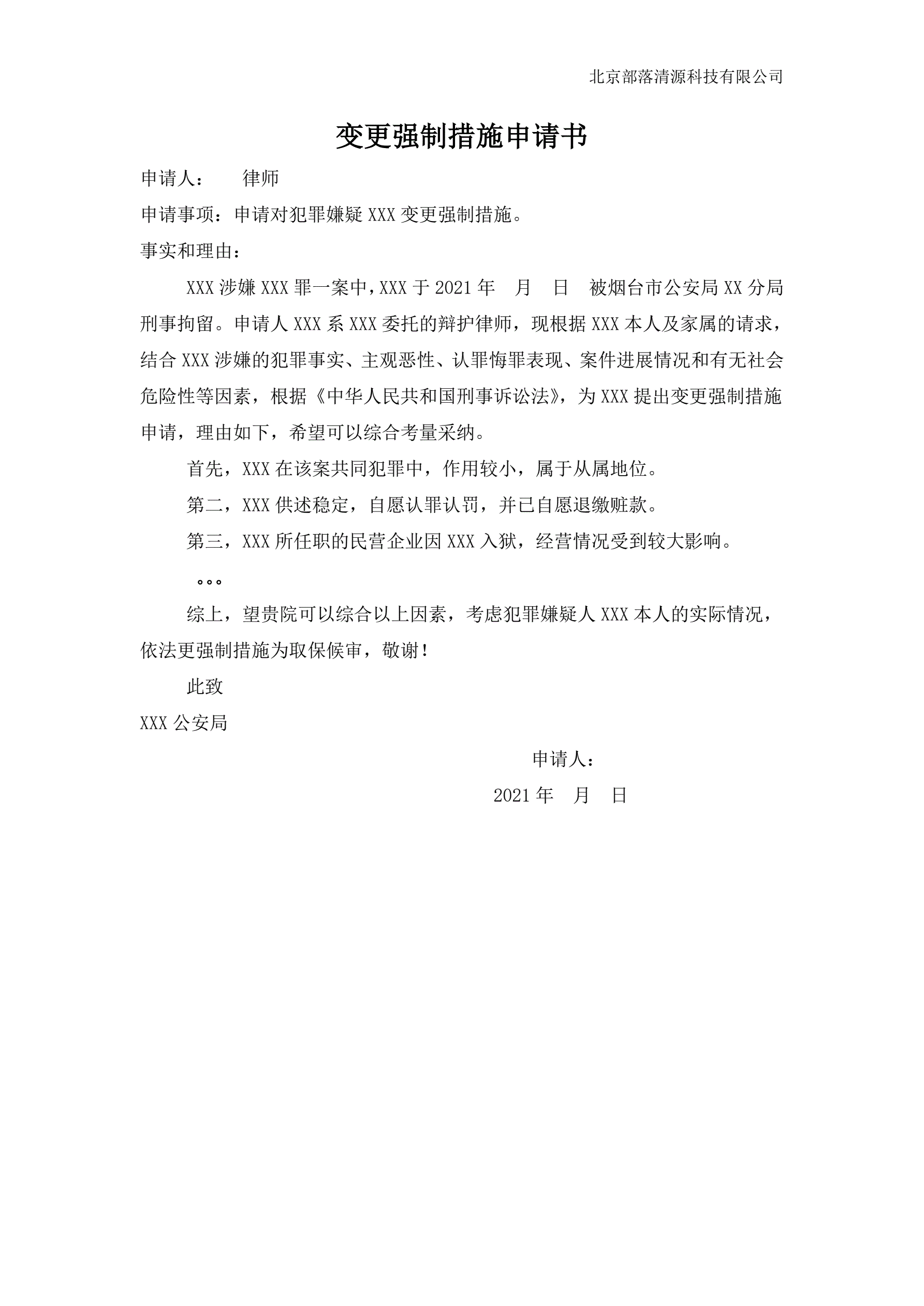 >变更强制措施申请书