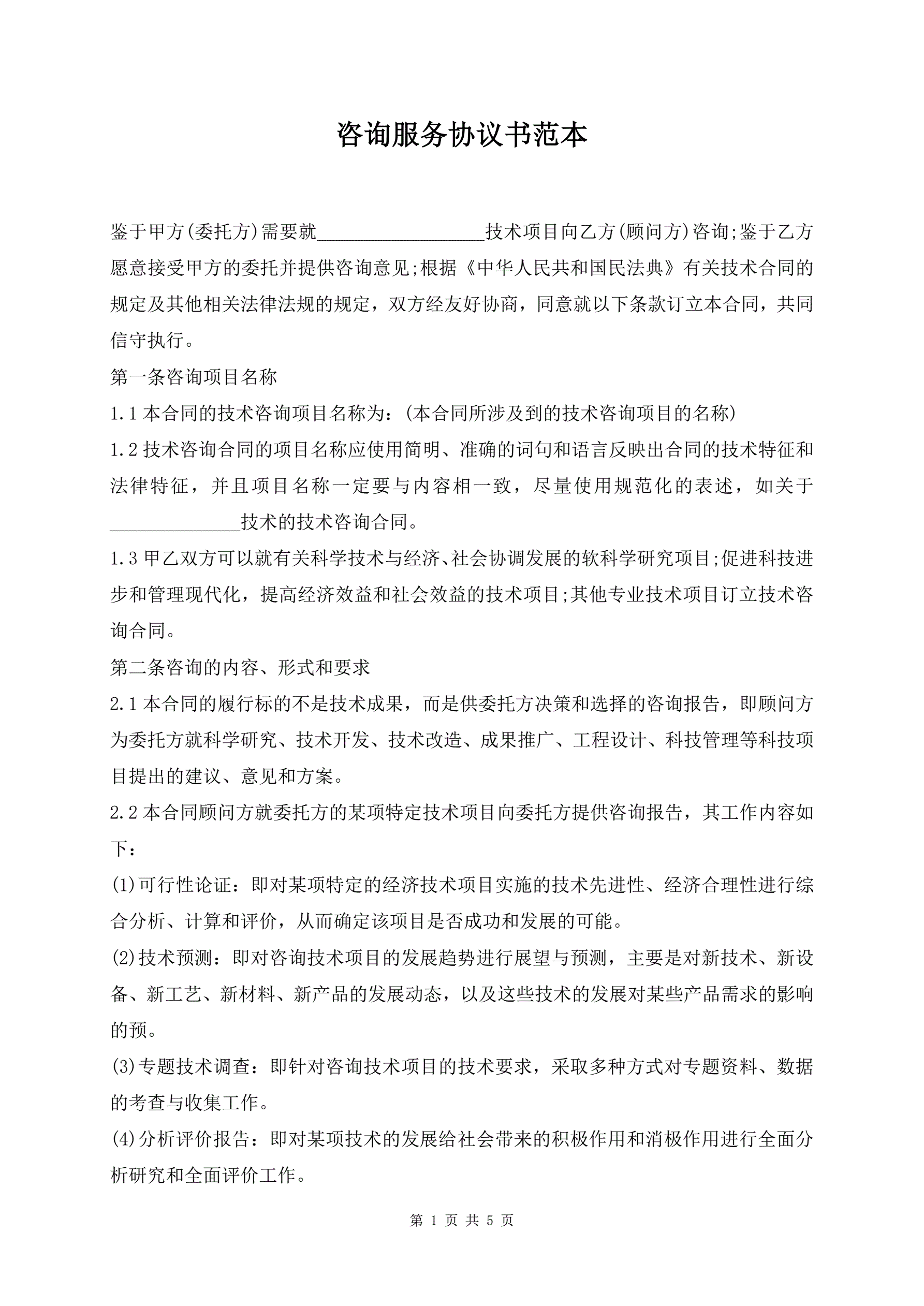 咨询服务协议书范本