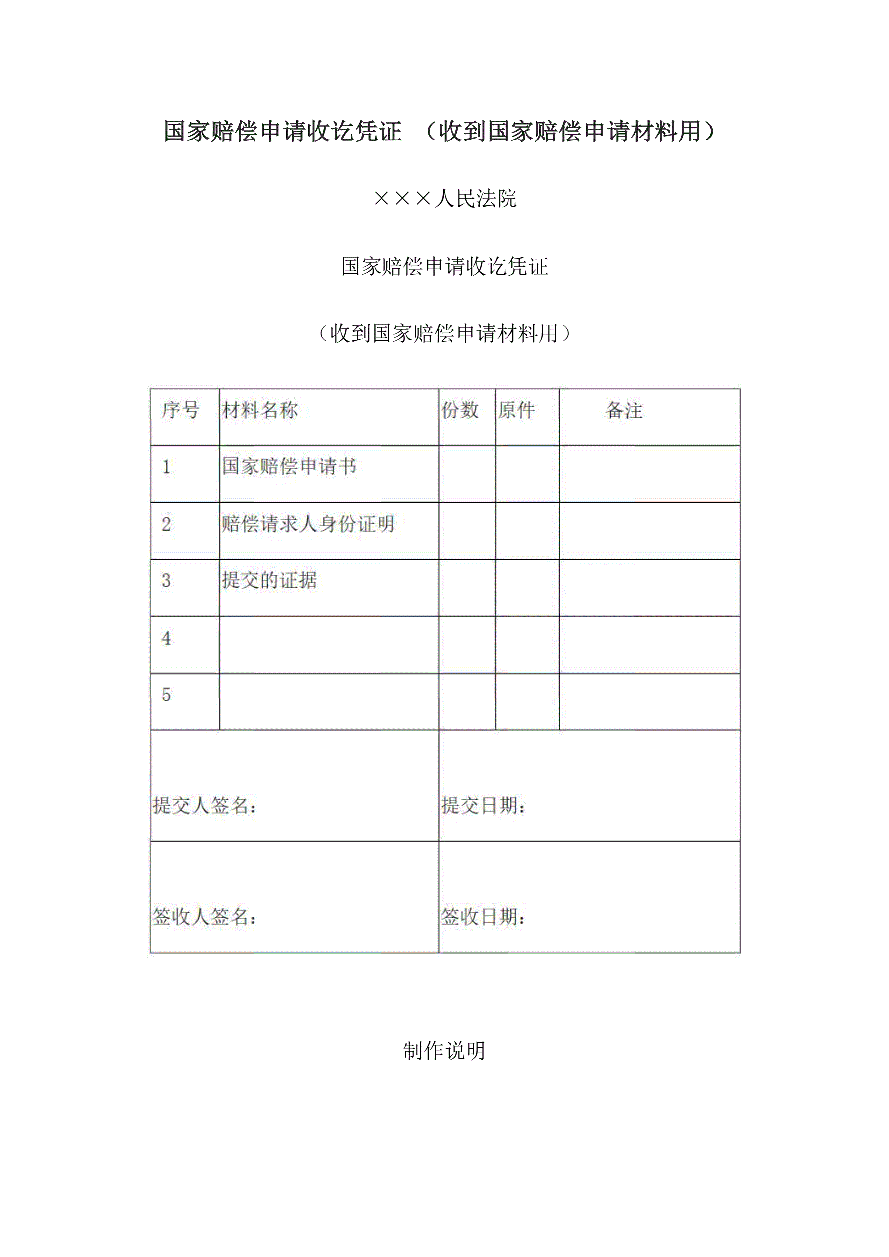 国家赔偿申请收讫凭证(收到国家赔偿申请材料用)
