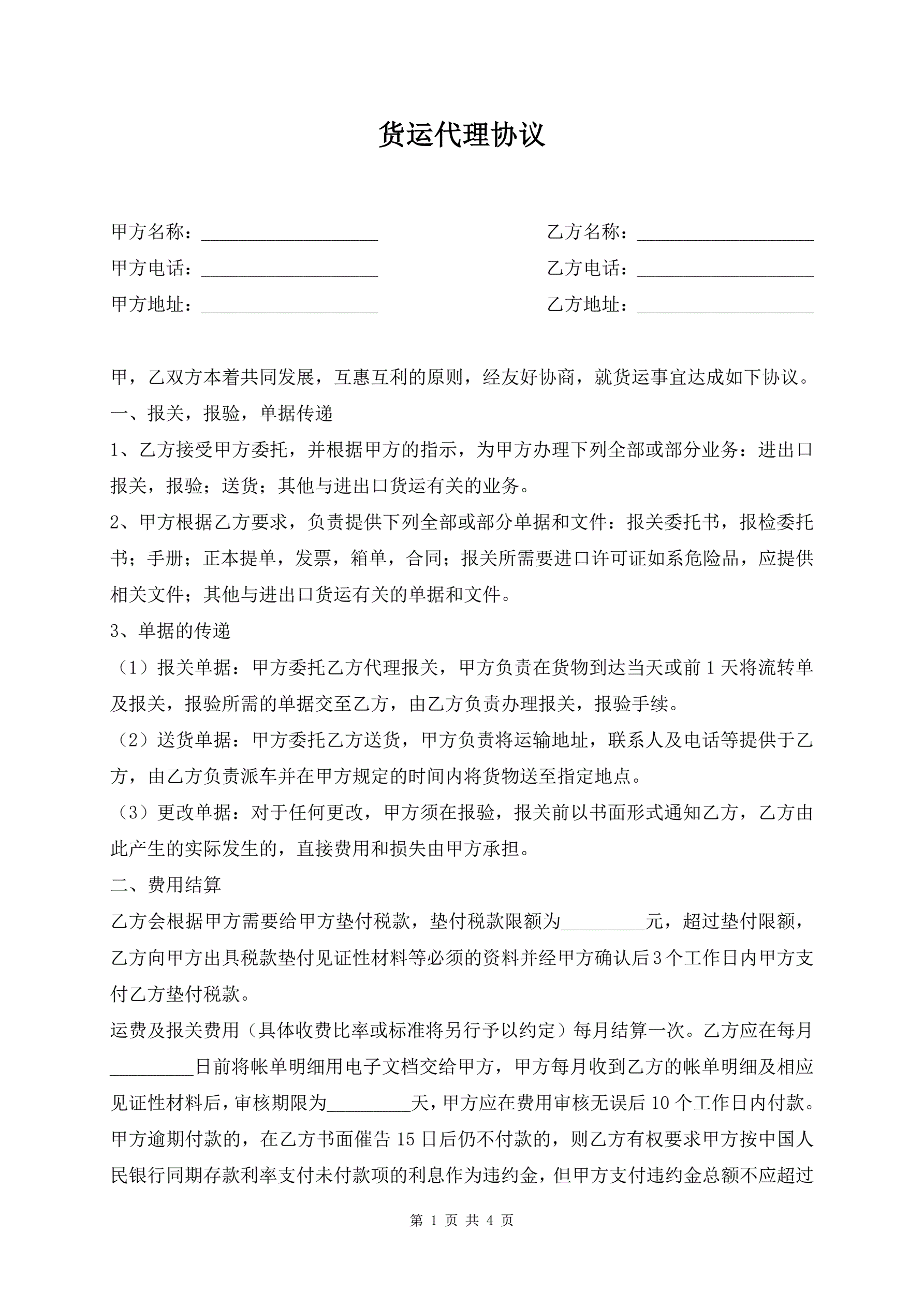 货运代理协议