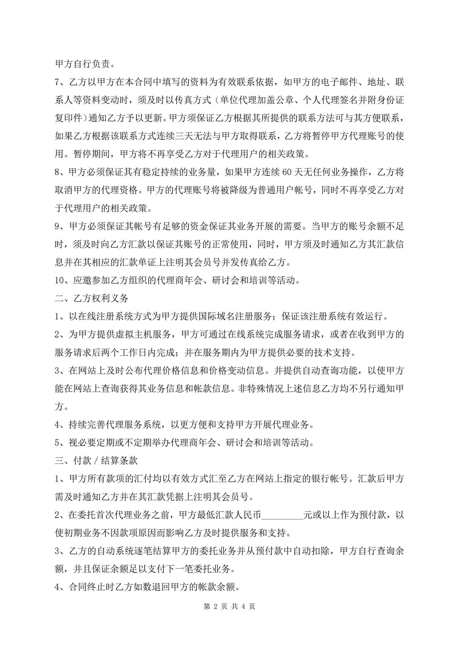 域名注册业务代理合同