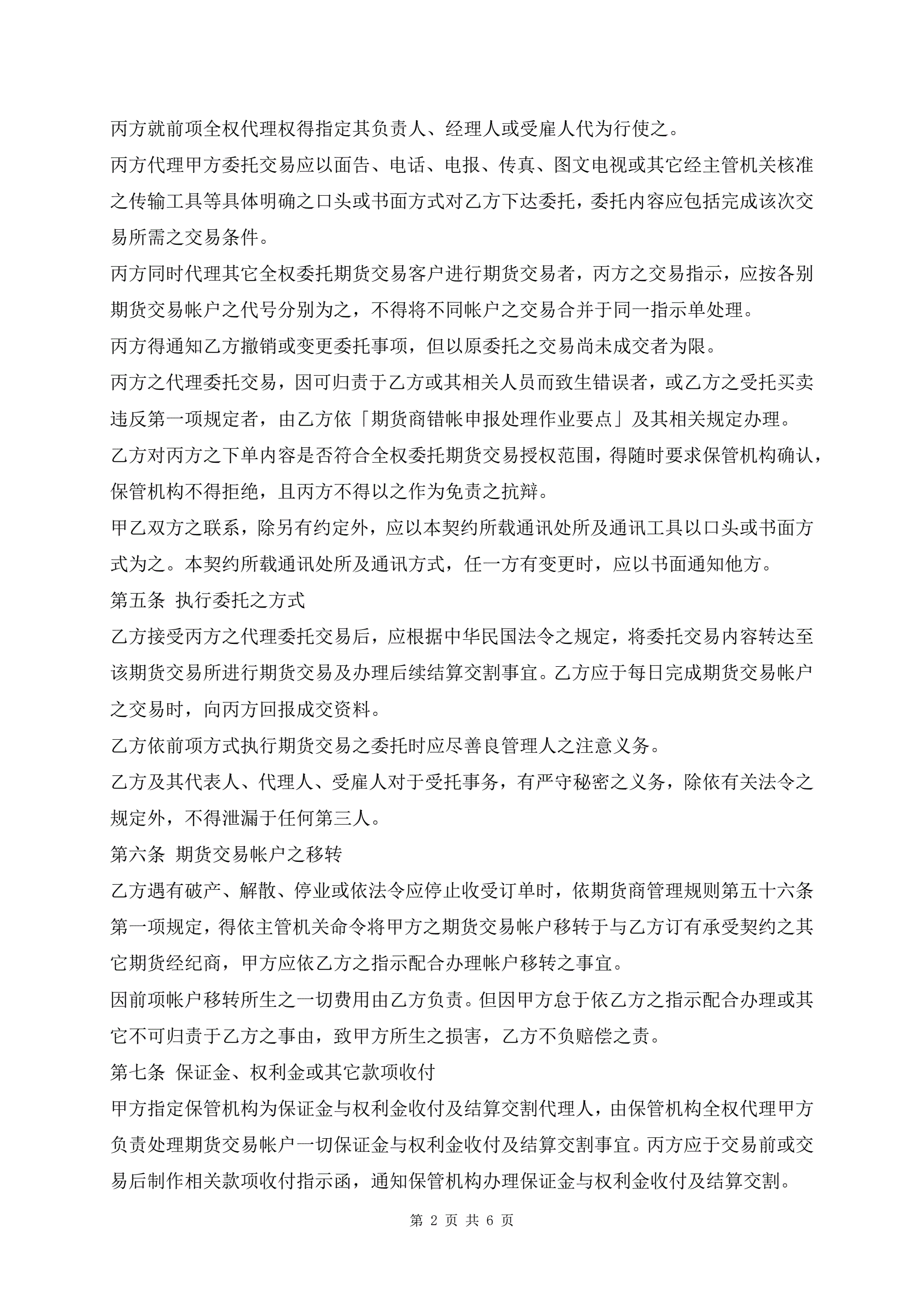 >期货交易受任人的期货委托合同新版