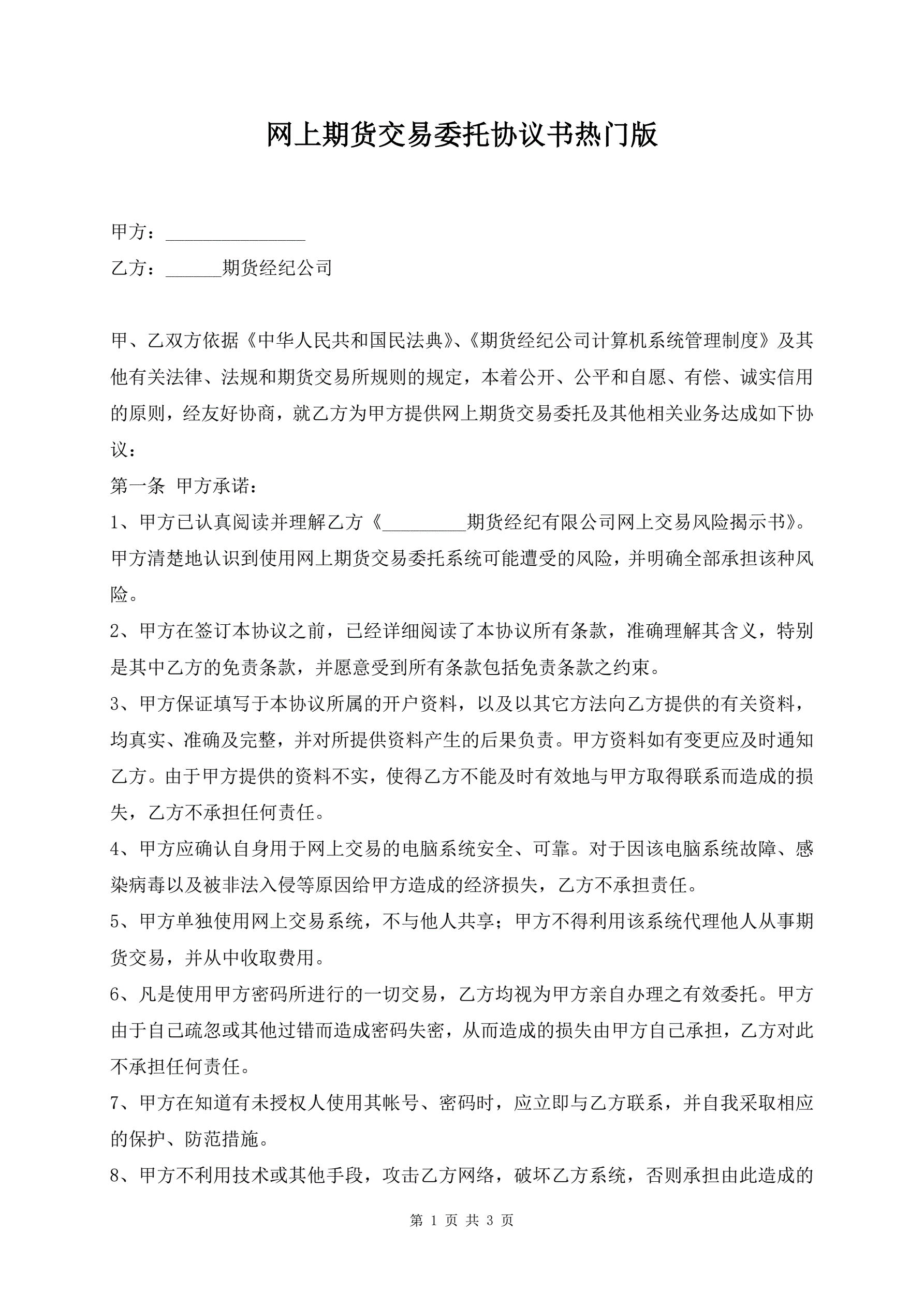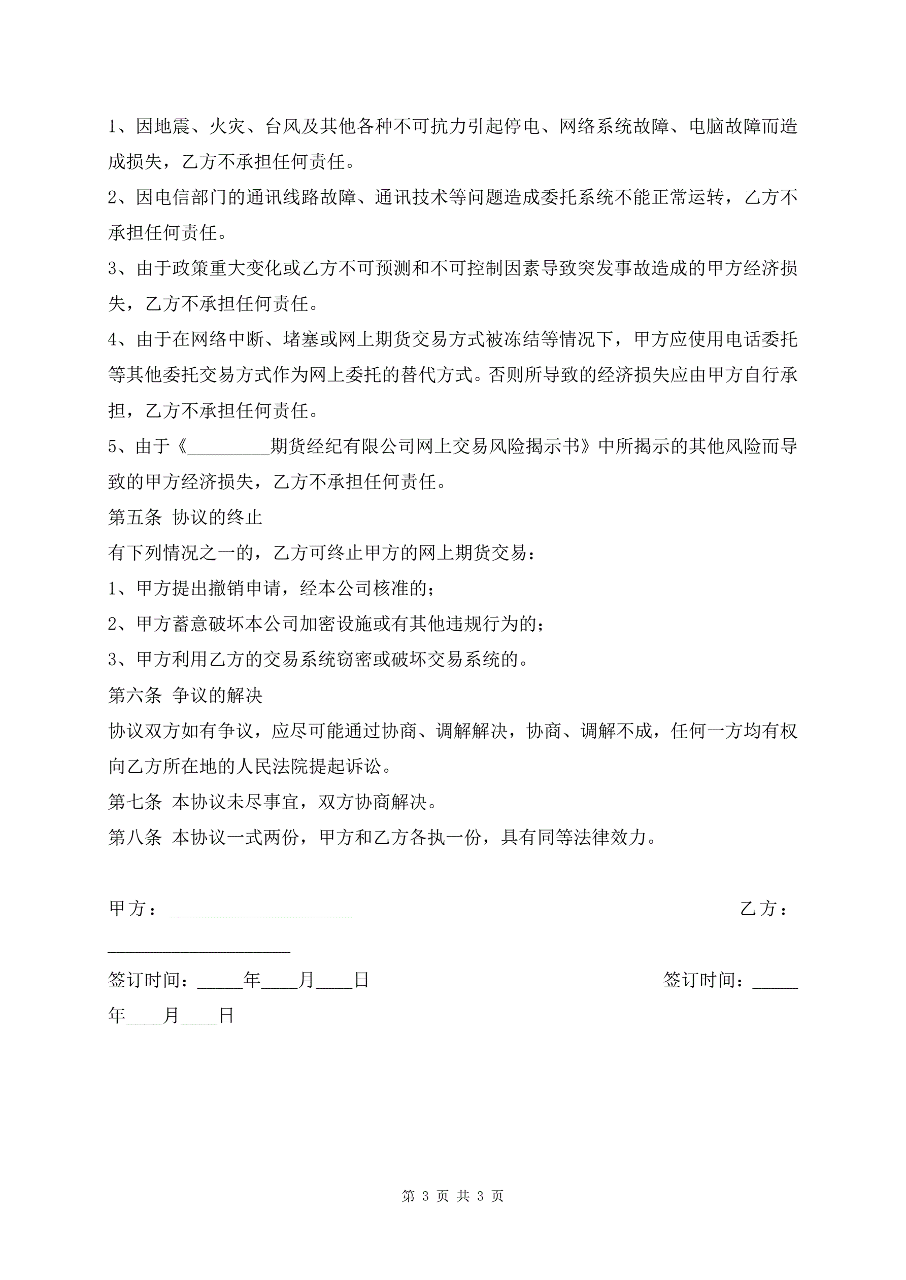 >网上期货交易委托协议书热门版
