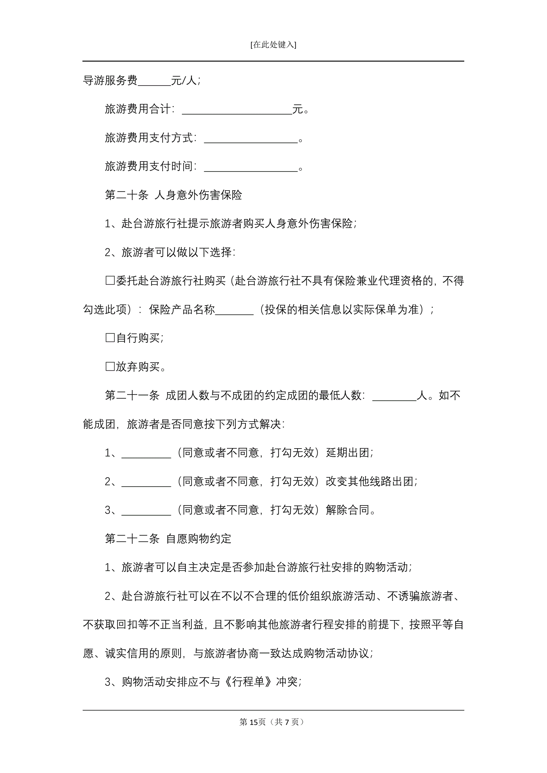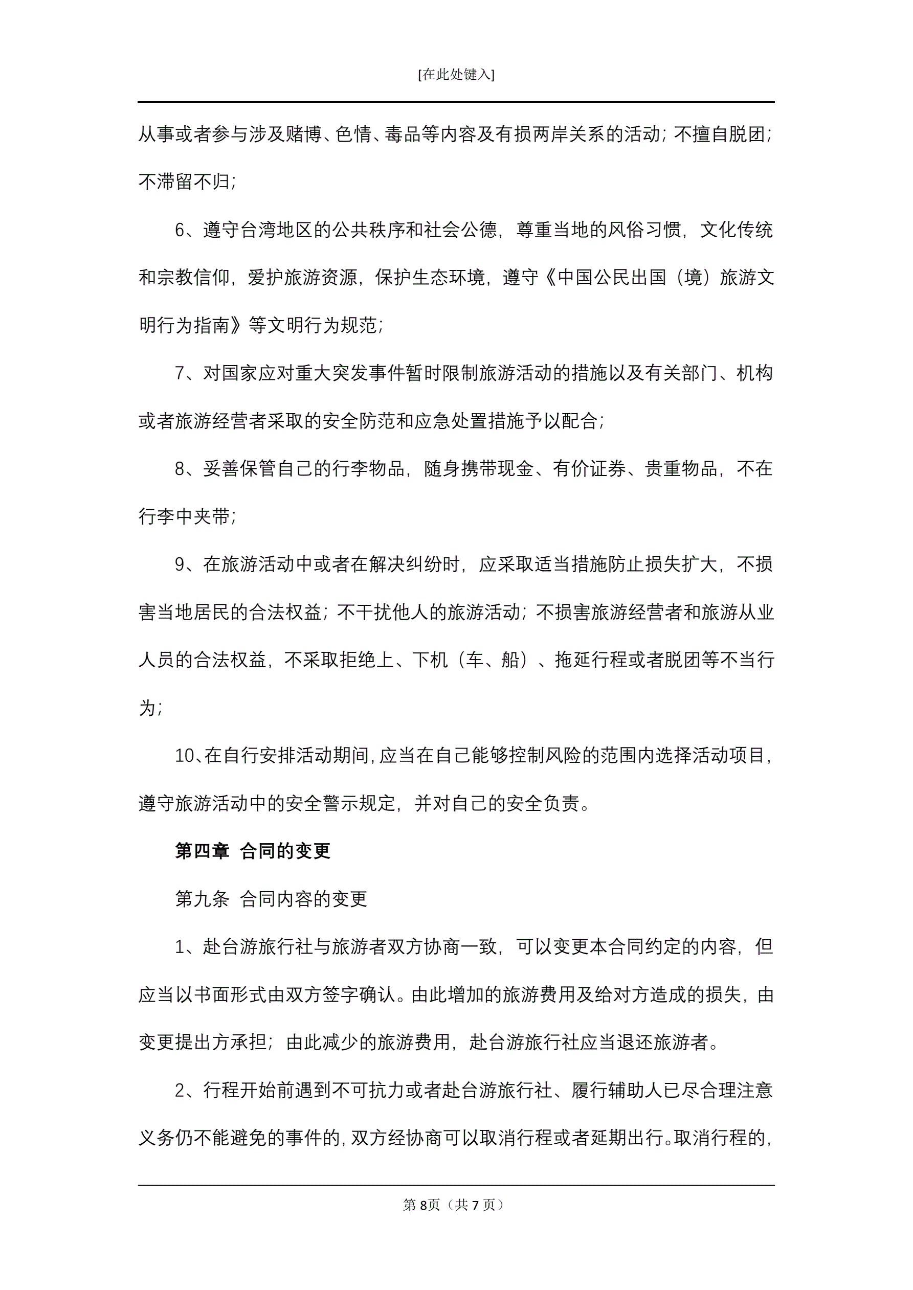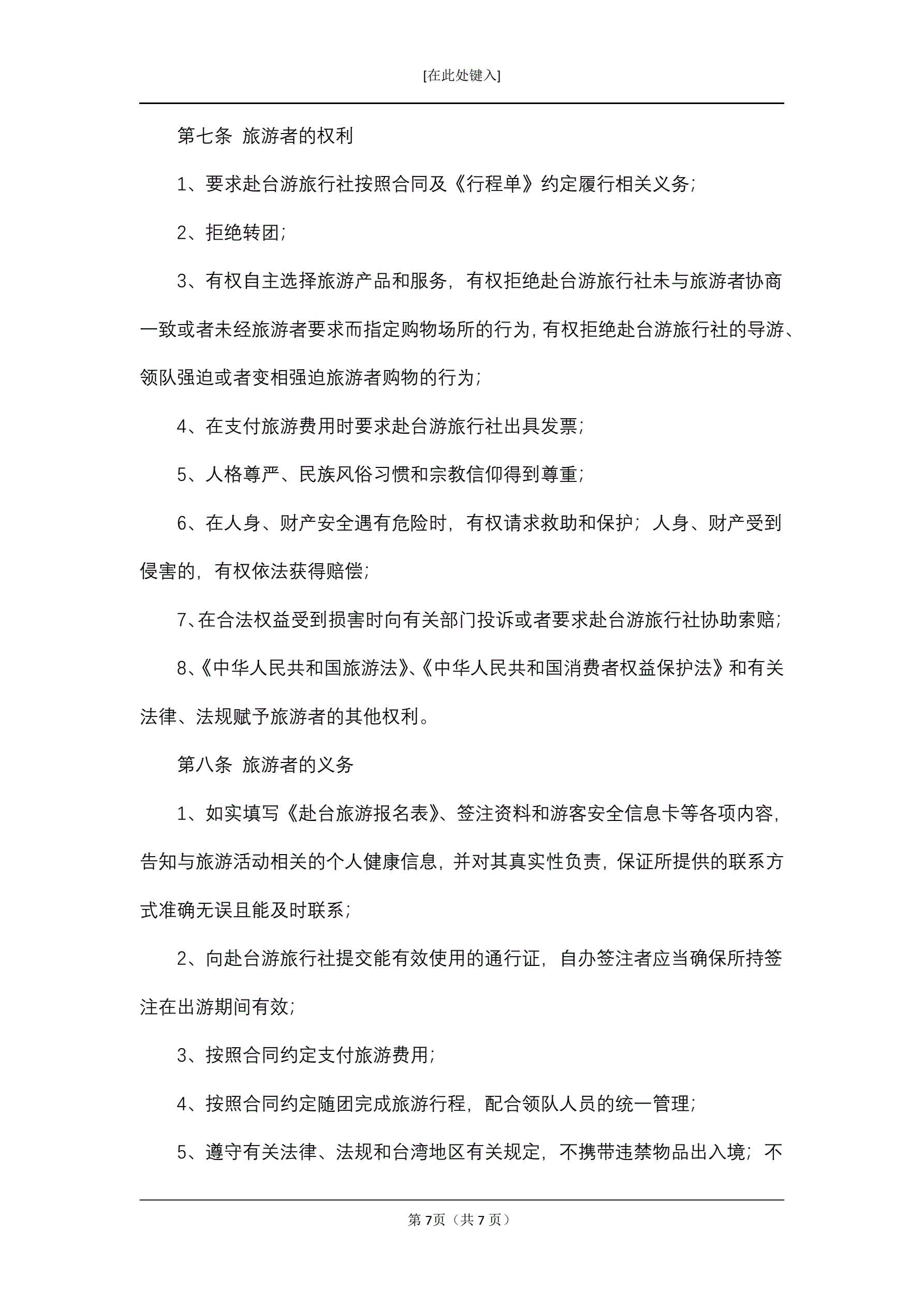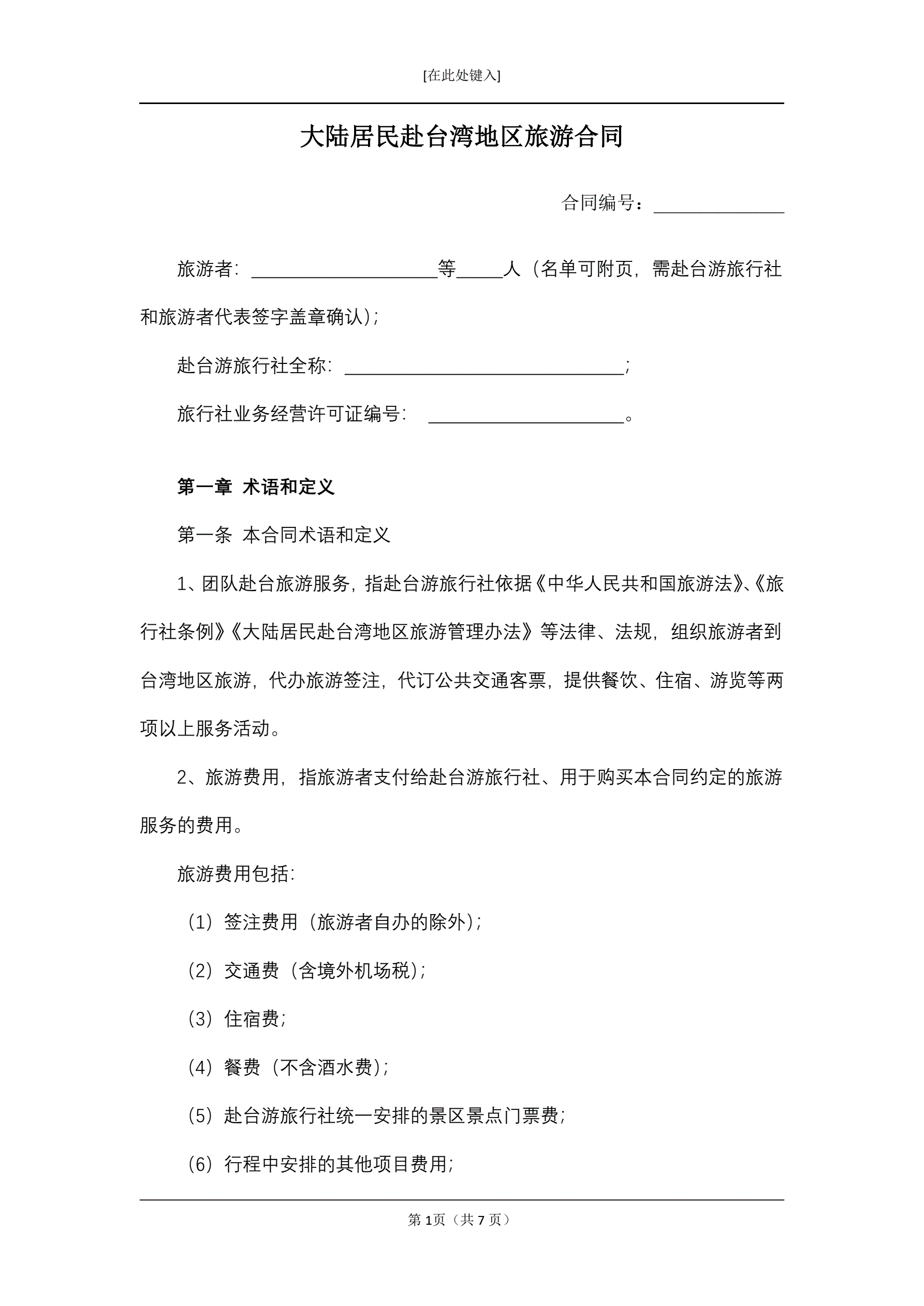 大陆居民赴台湾地区旅游合同