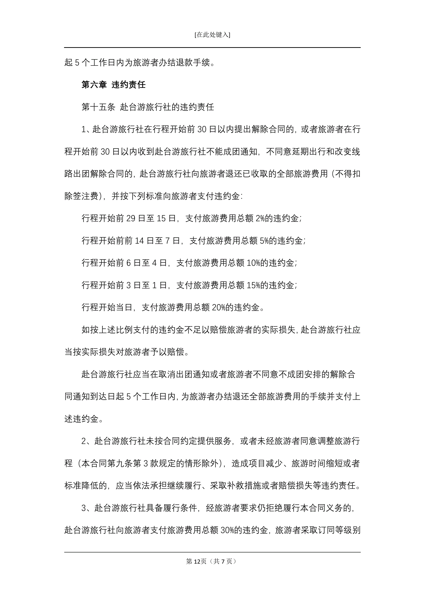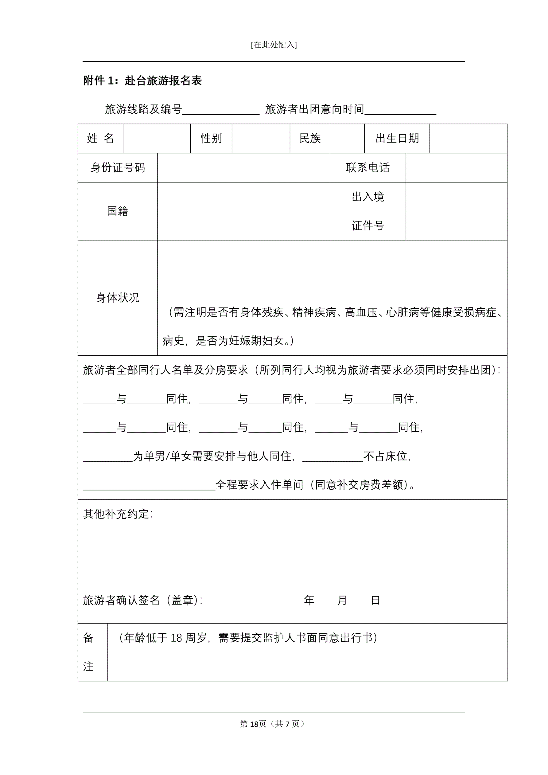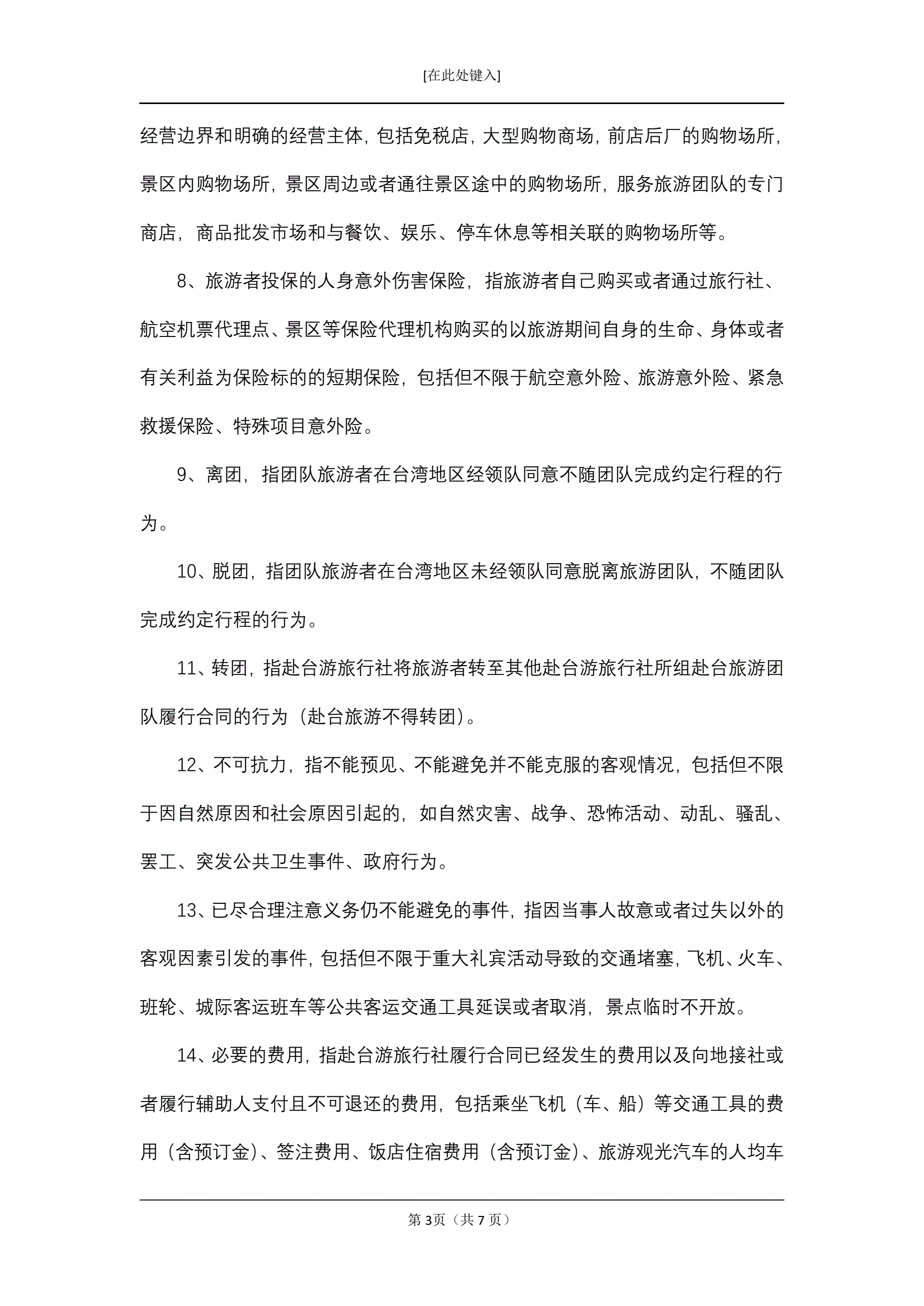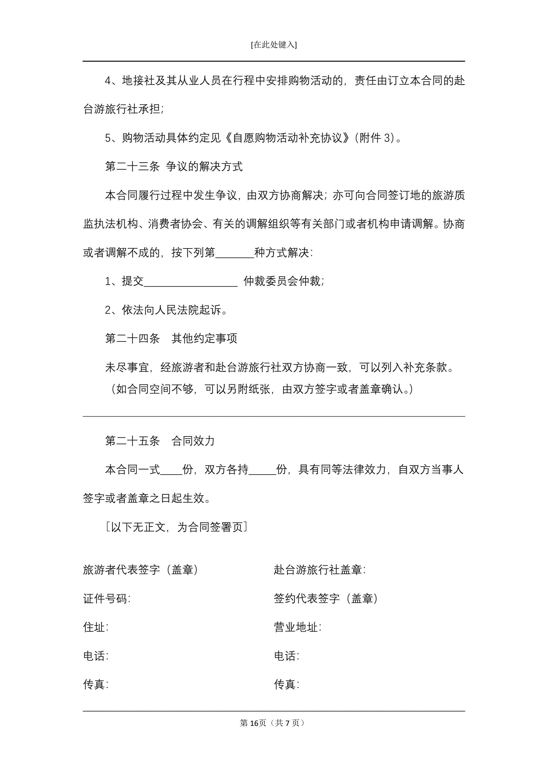 大陆居民赴台湾地区旅游合同