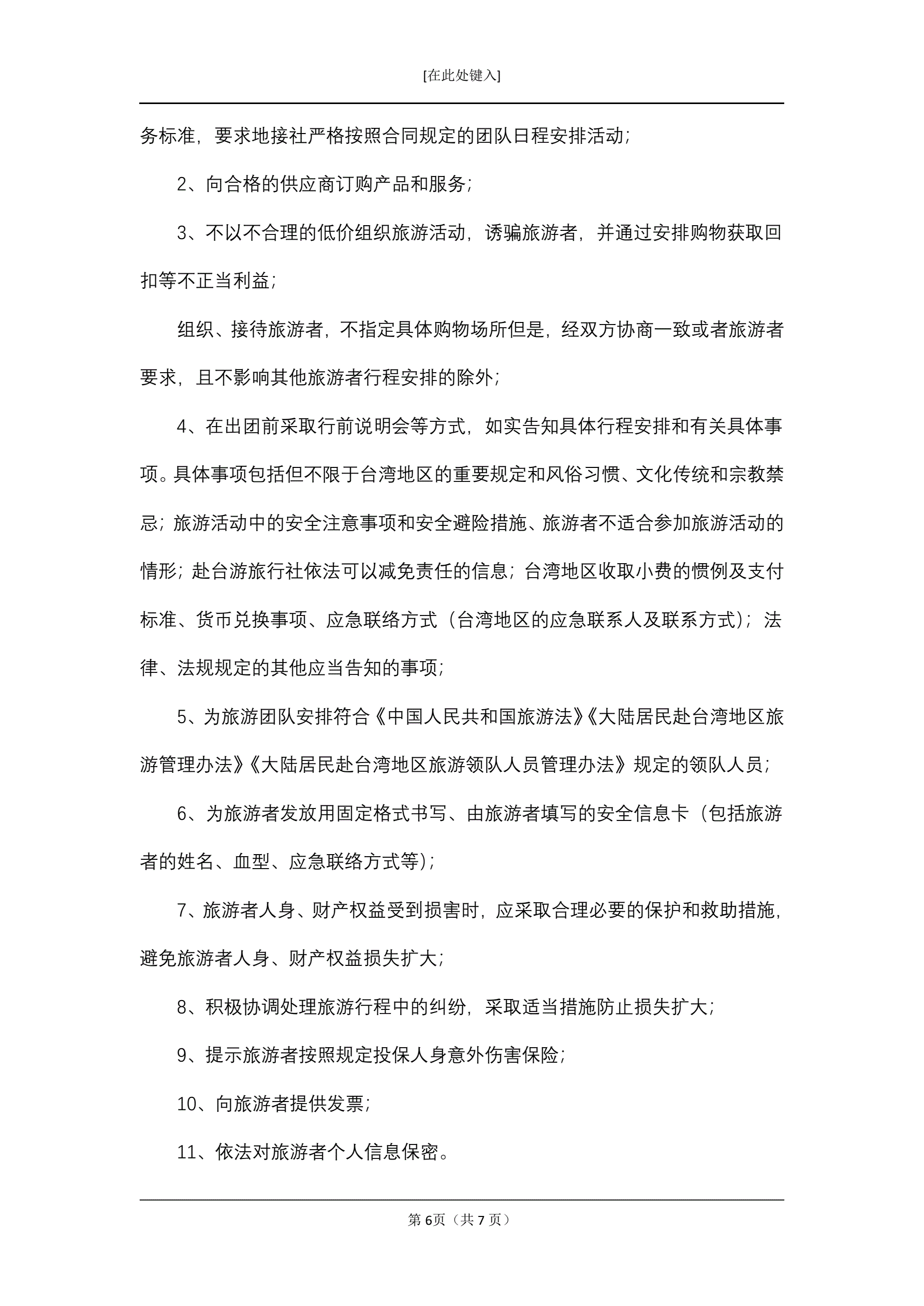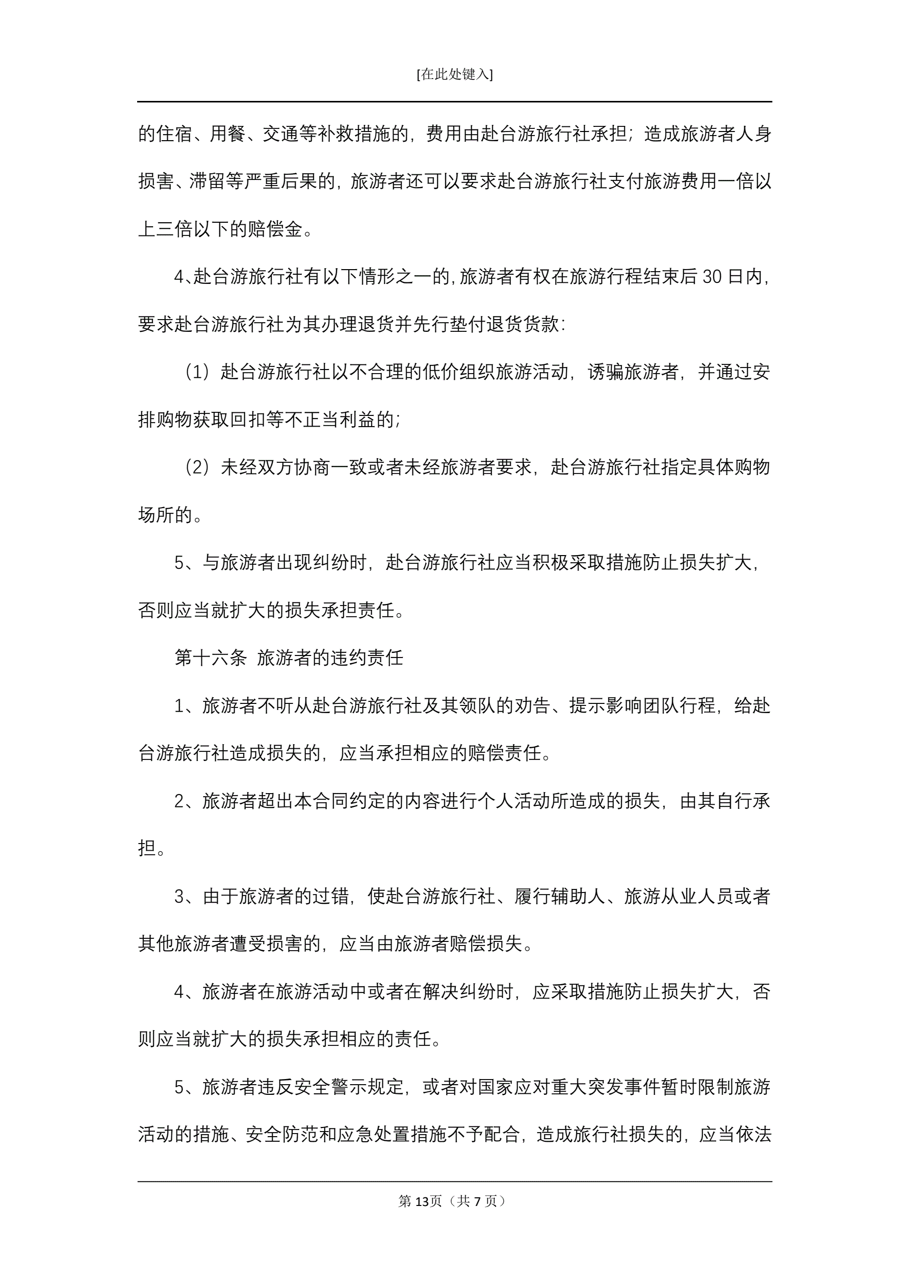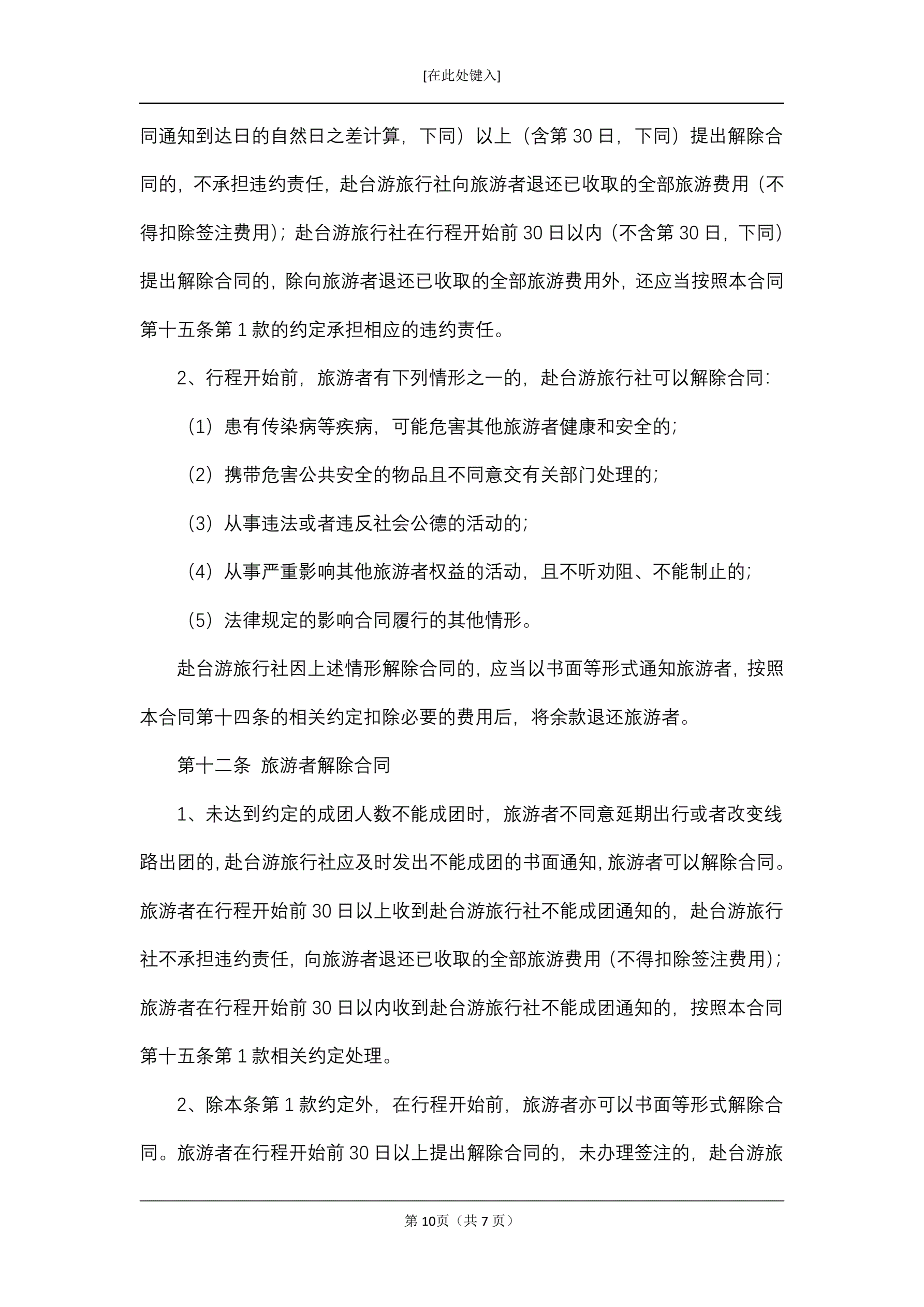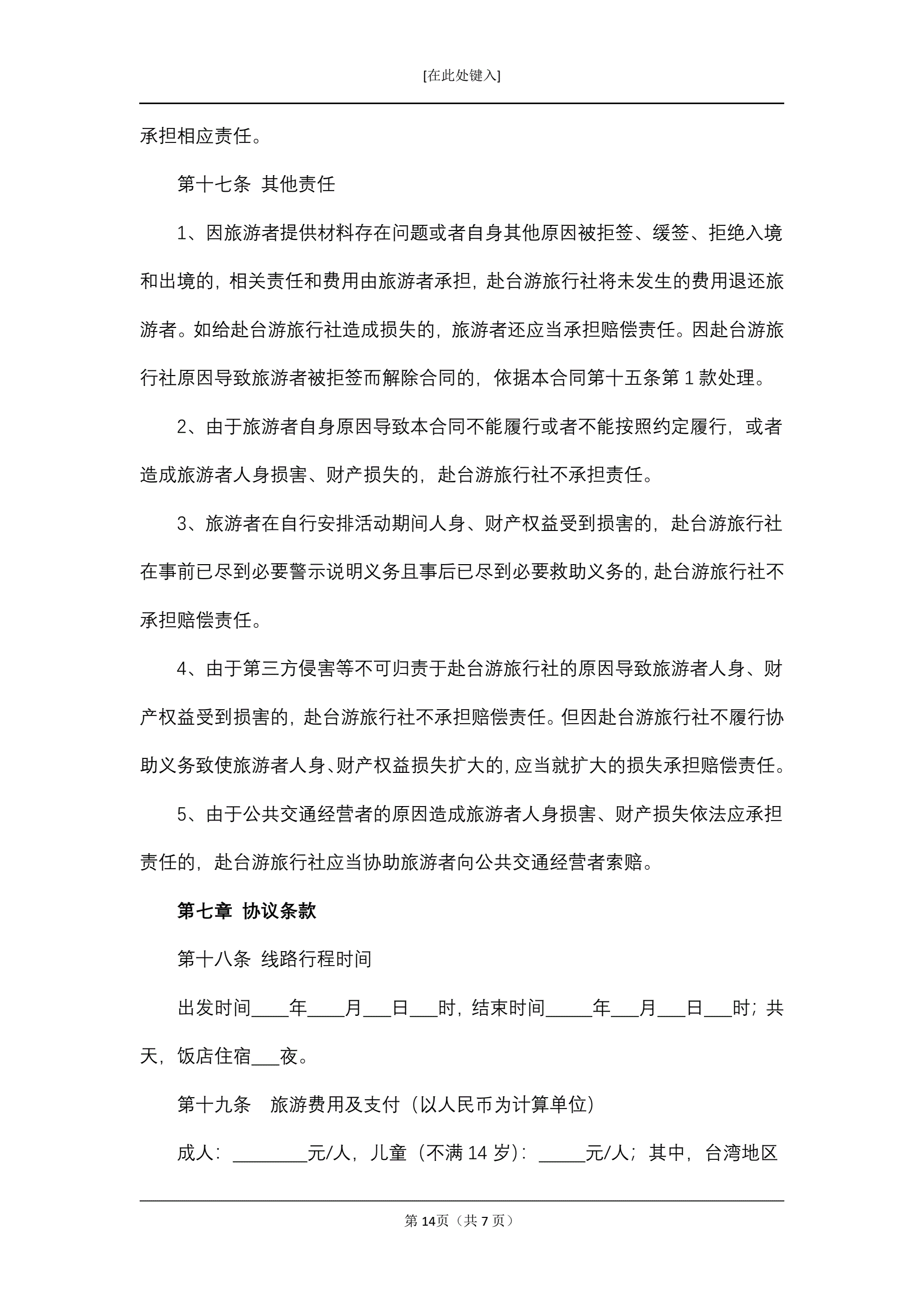 大陆居民赴台湾地区旅游合同
