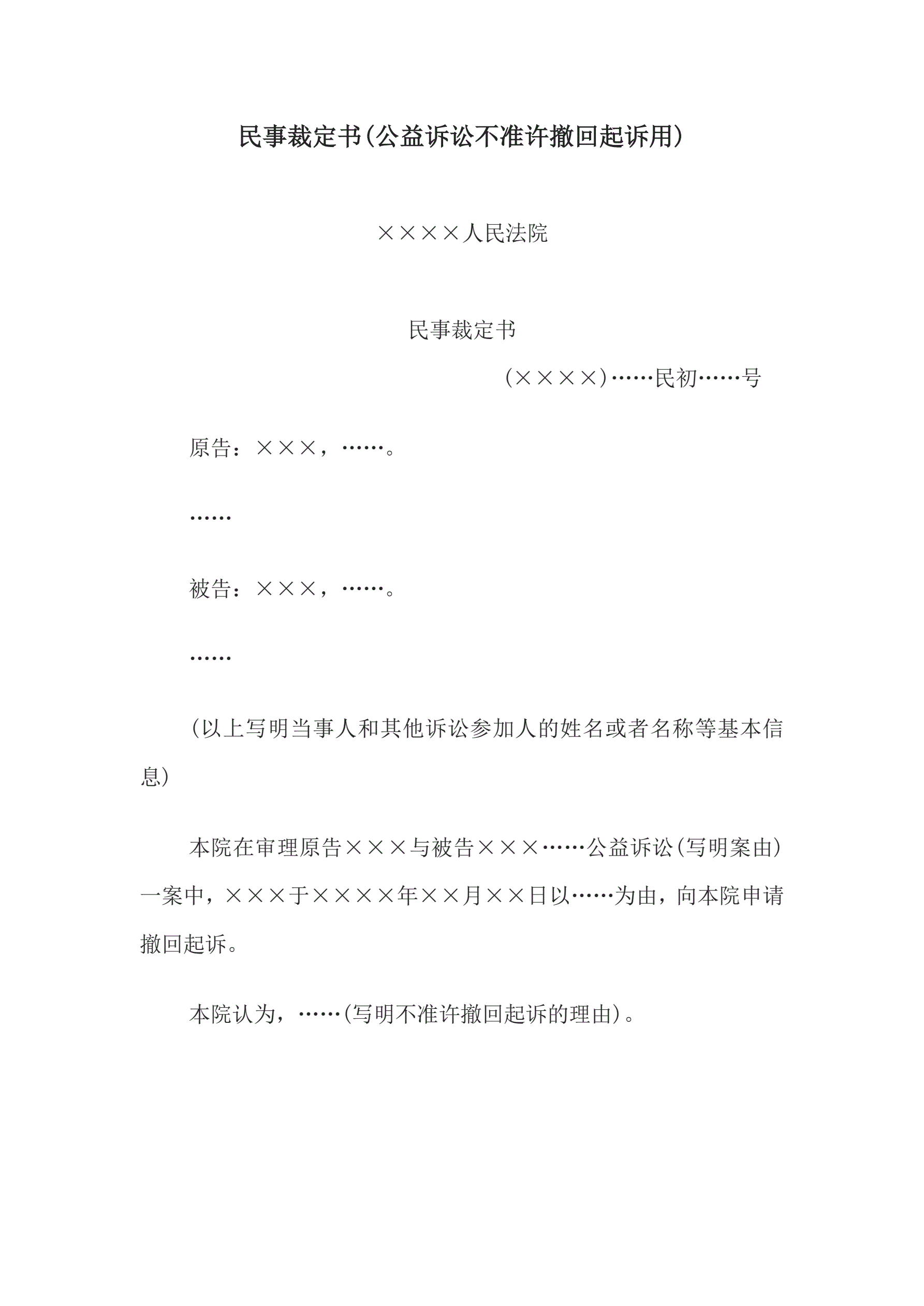 >民事裁定书(公益诉讼不准许撤回起诉用)