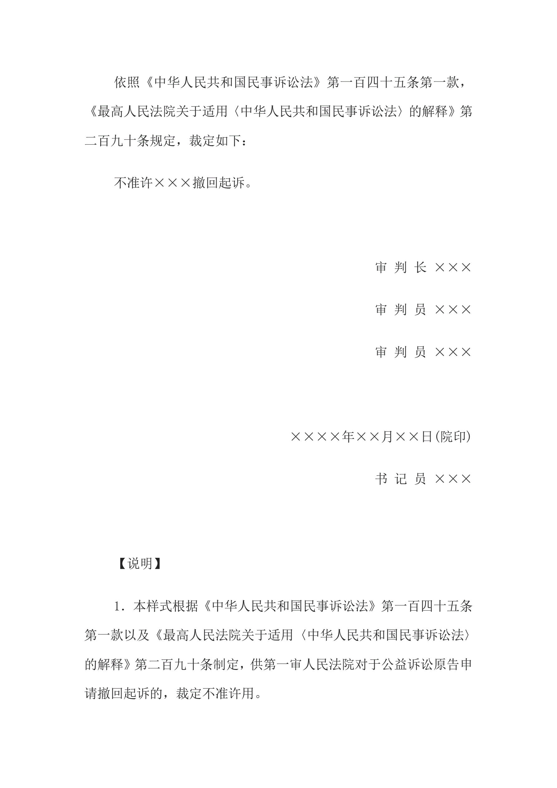 民事裁定书(公益诉讼不准许撤回起诉用)