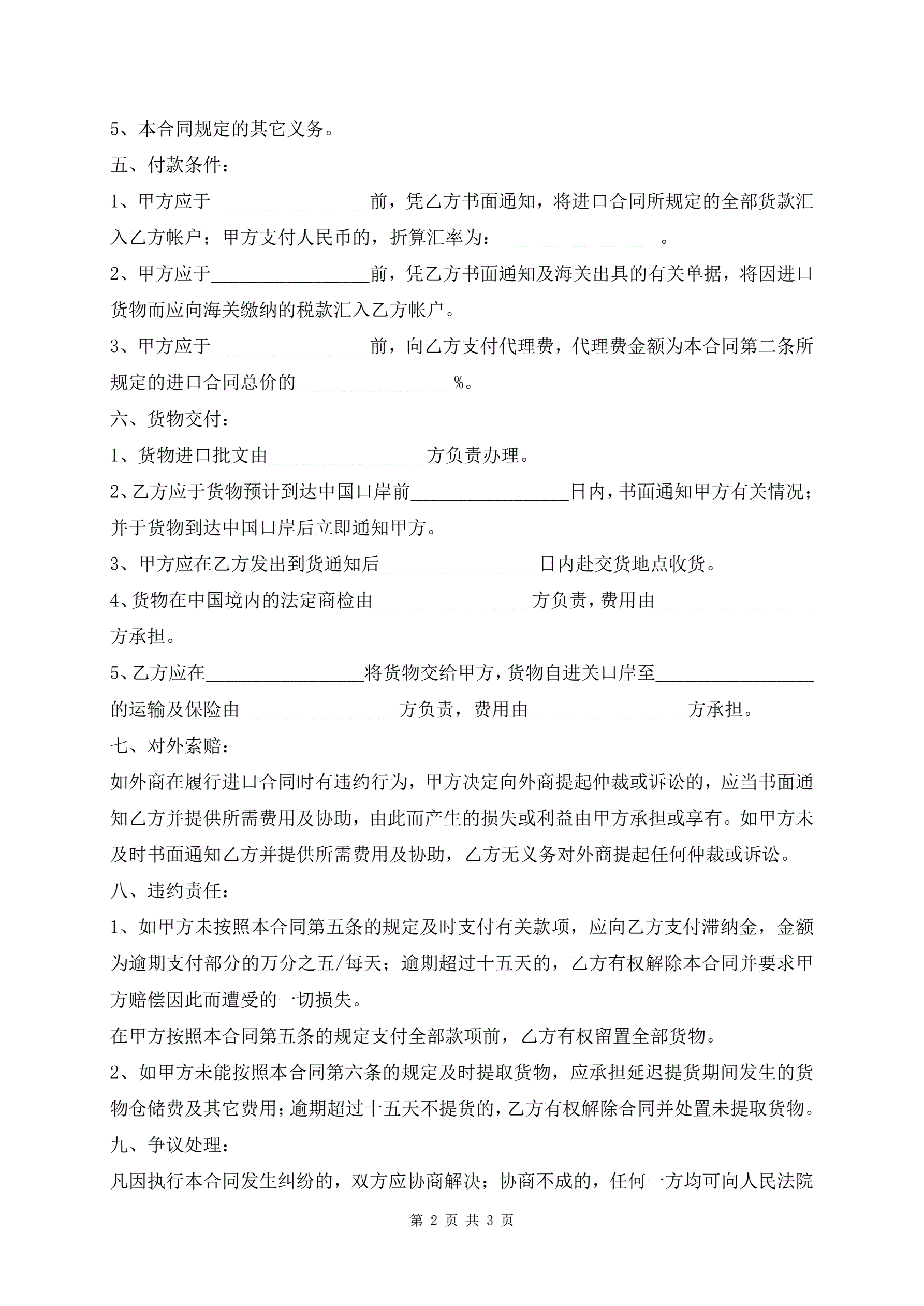 委托进口代理合同范本