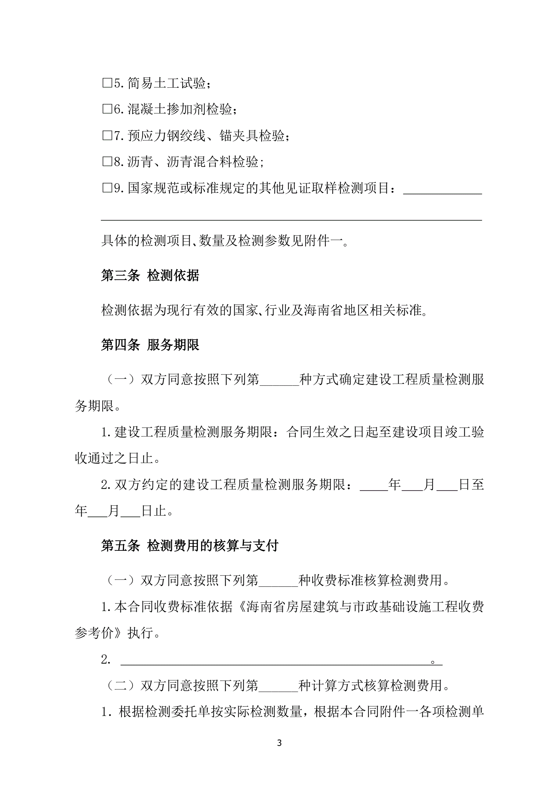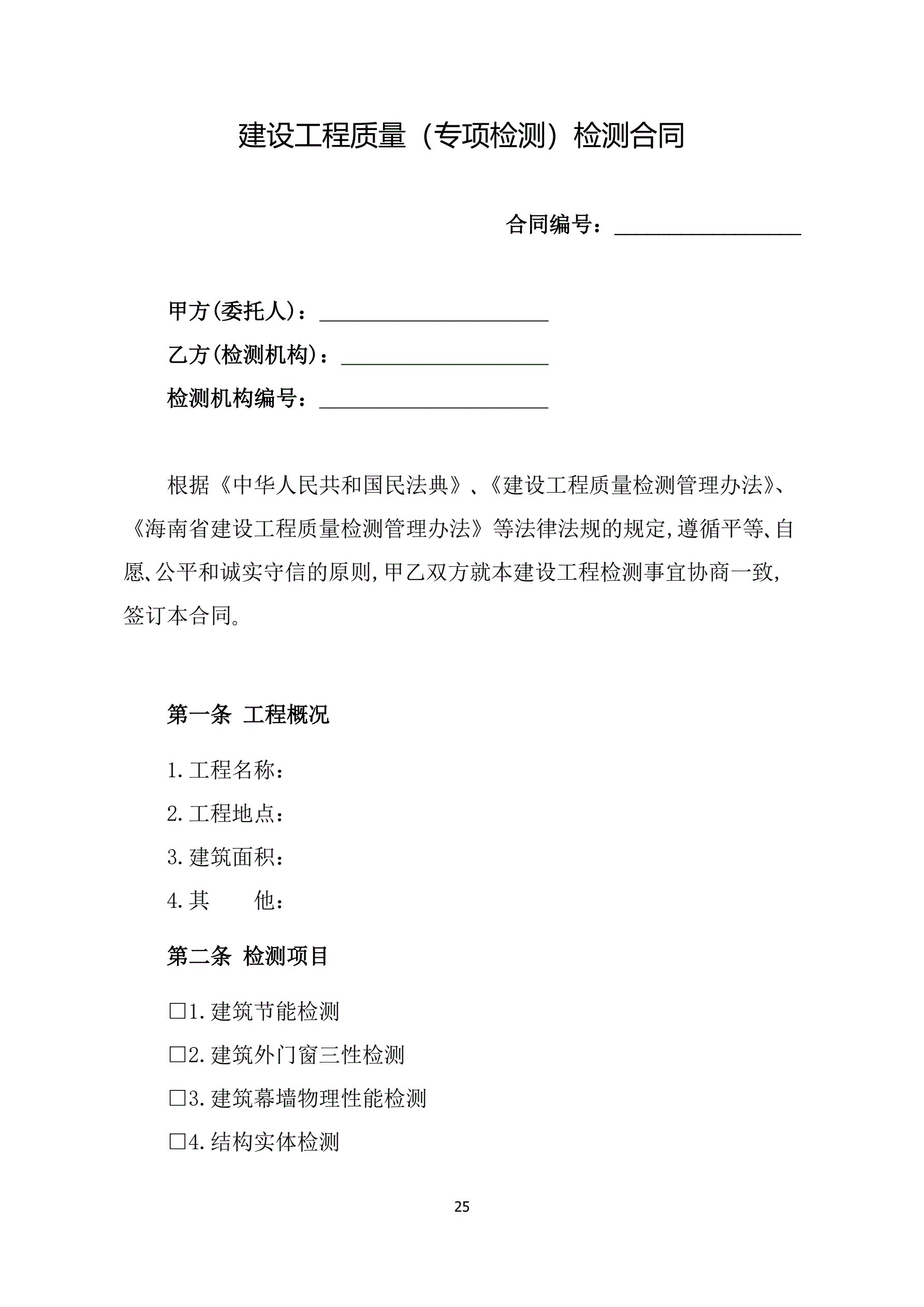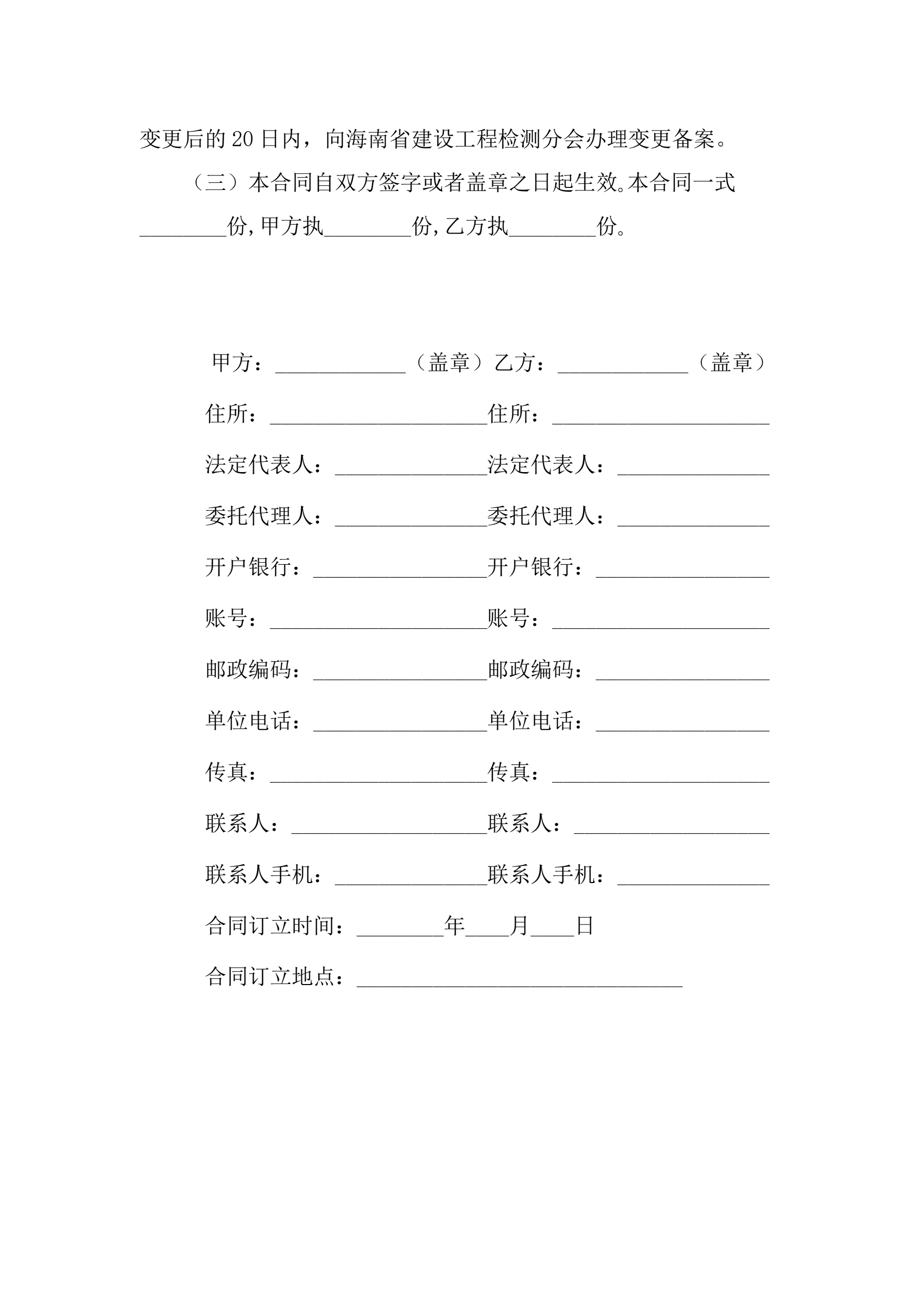附件1海南省建设工程检测合同(示范文本)