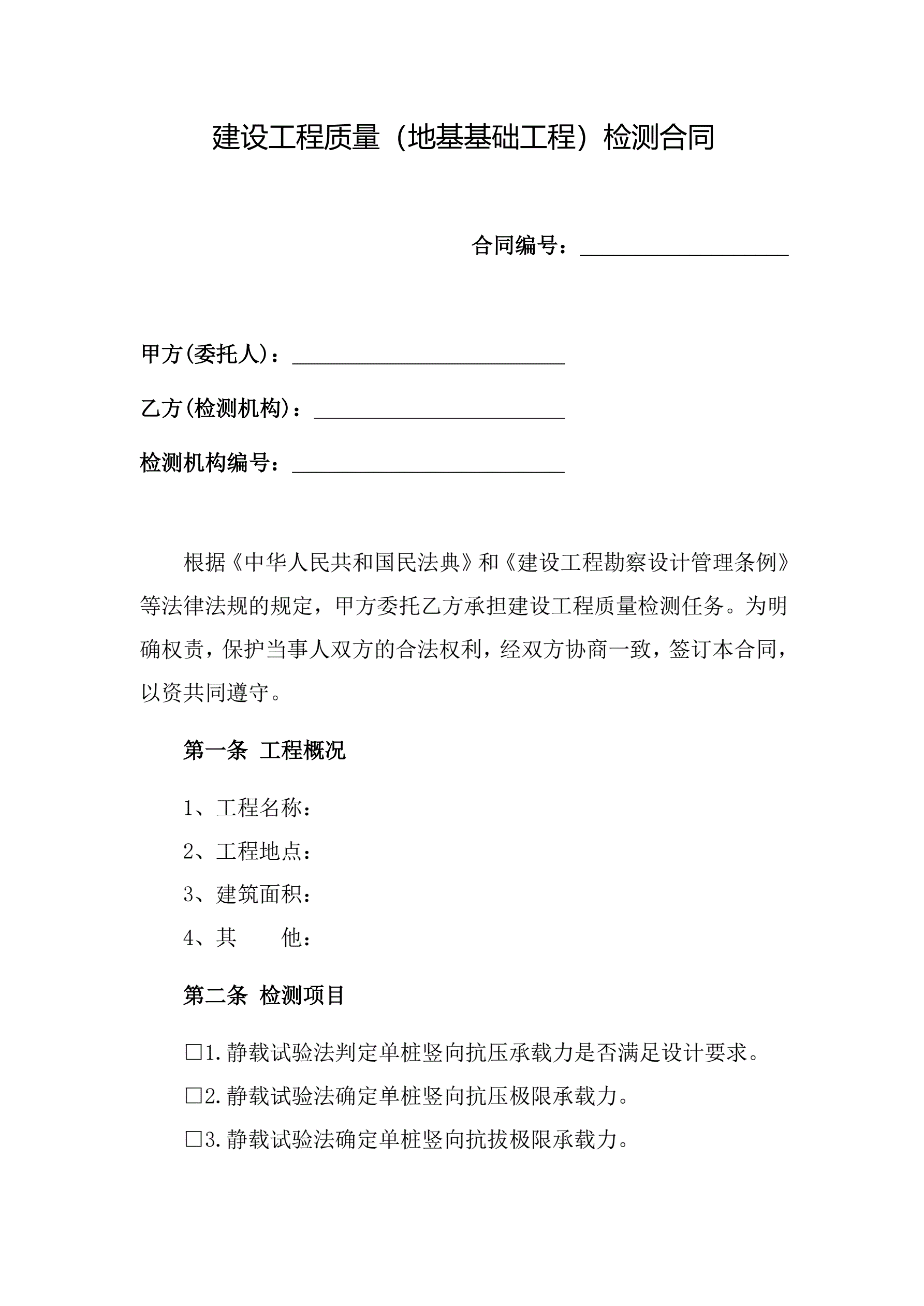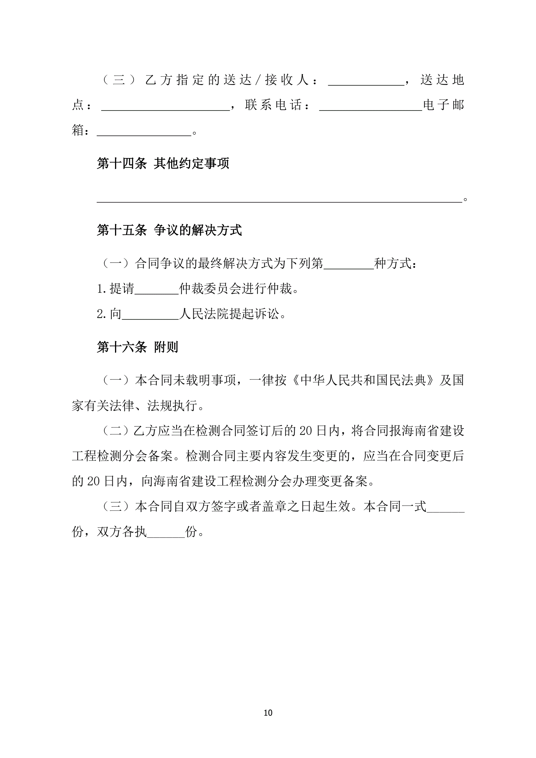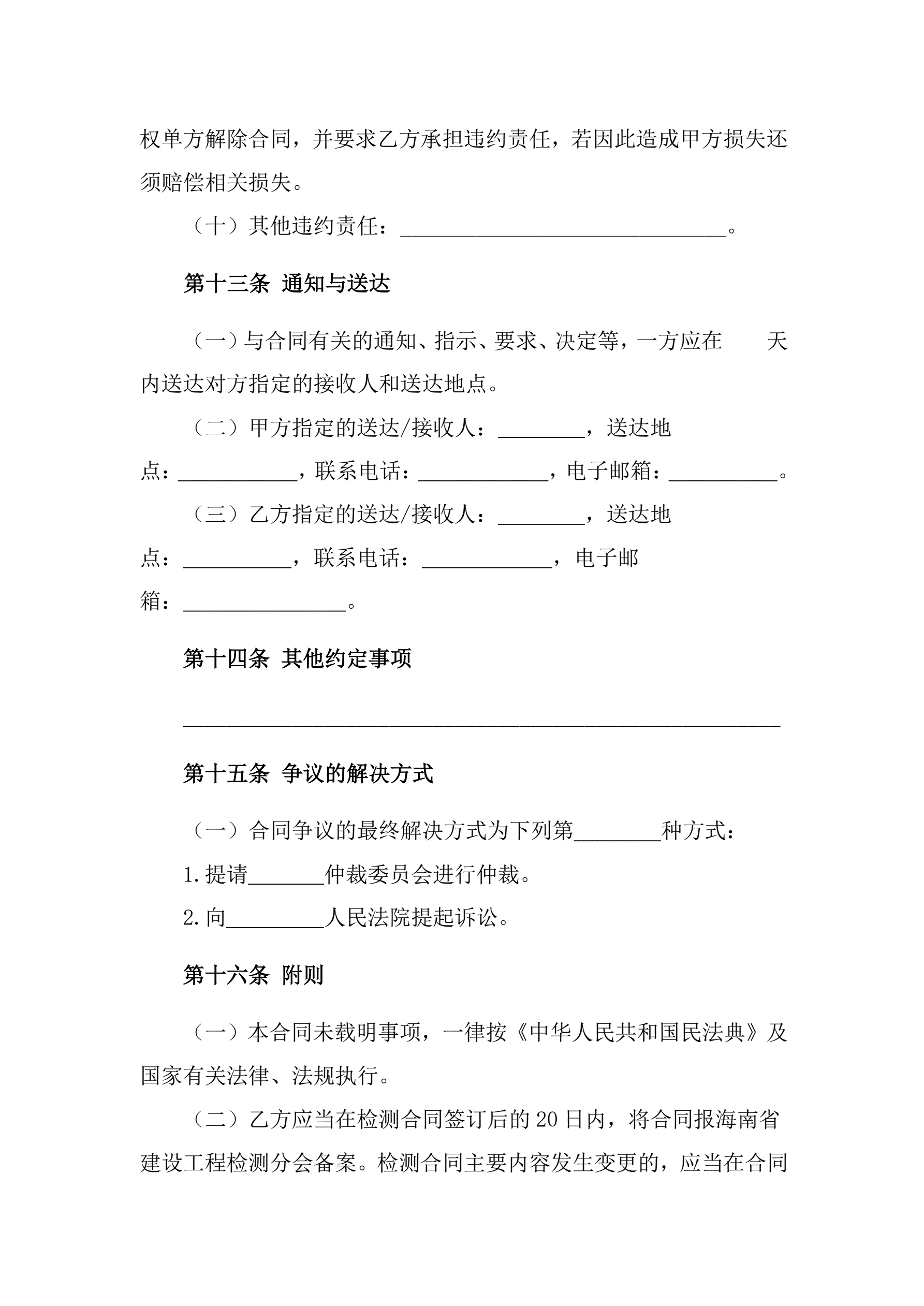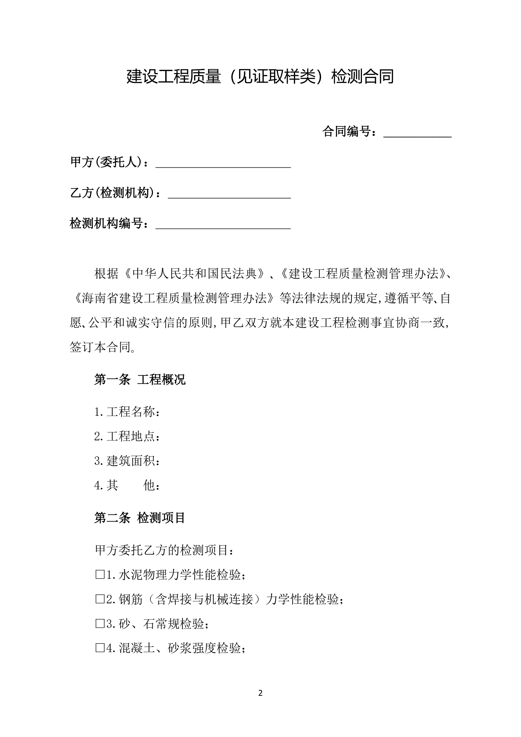 附件1海南省建设工程检测合同(示范文本)