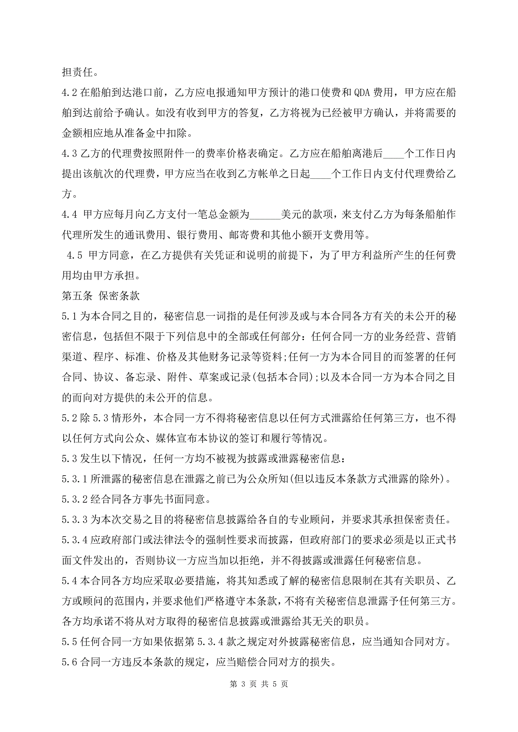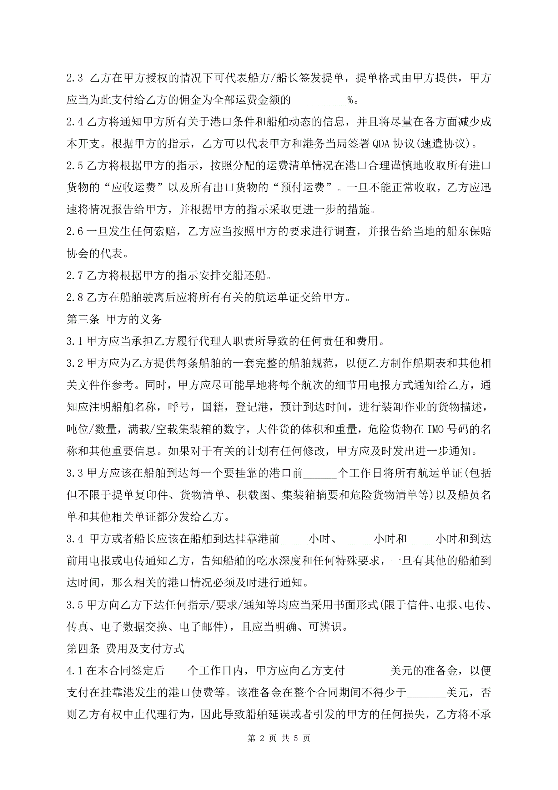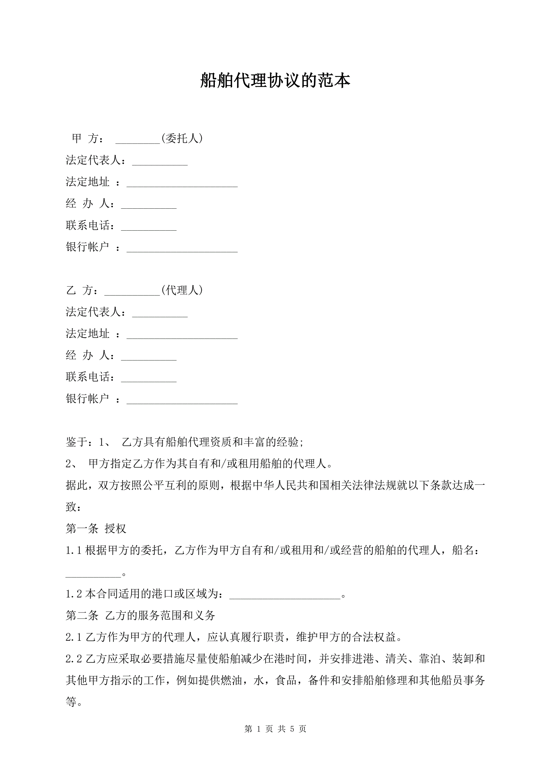 船舶代理协议的范本