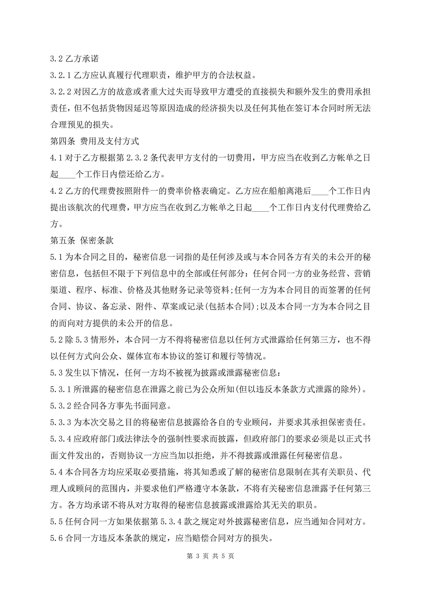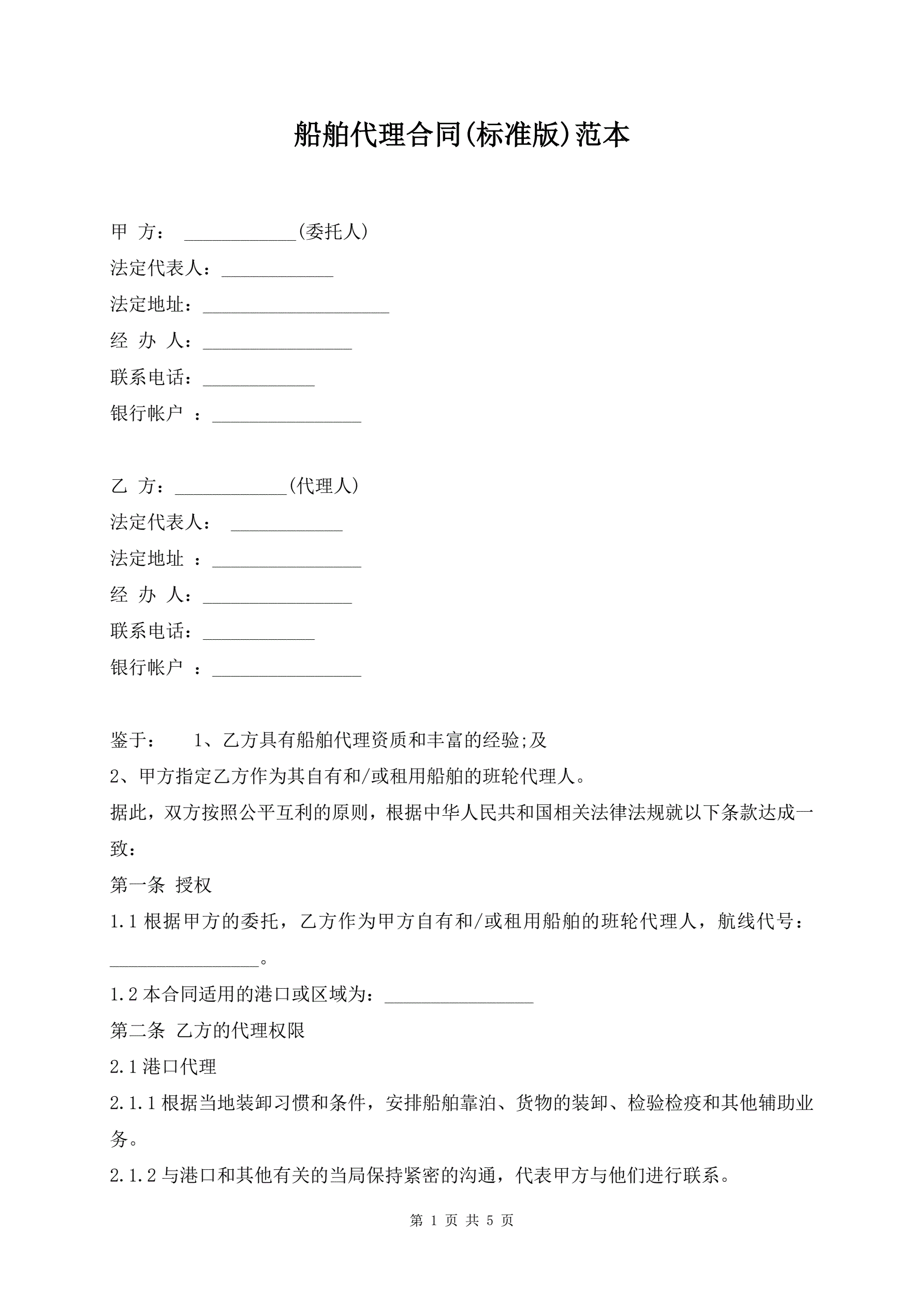 >船舶代理合同(标准版)范本