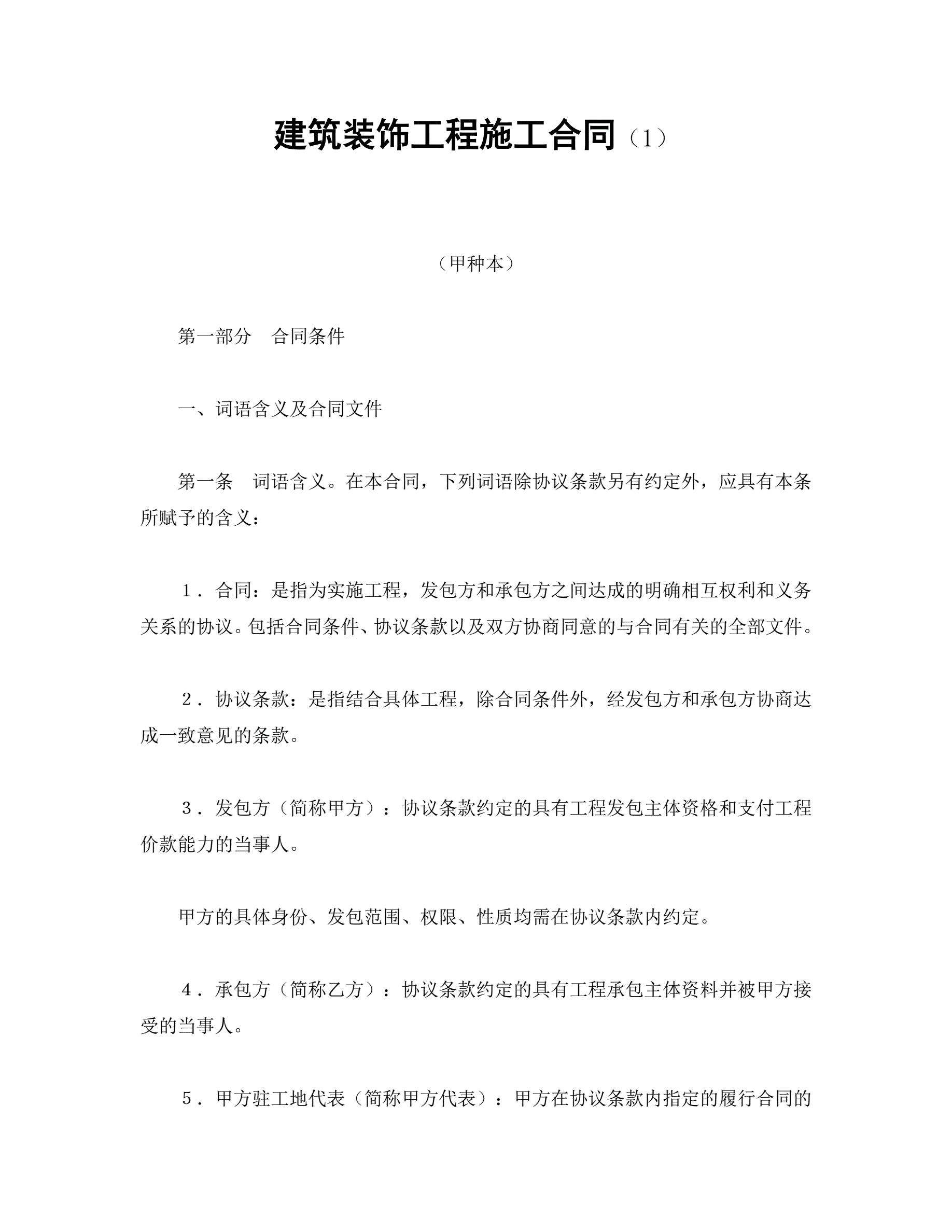 >建筑装饰工程施工合同(1)