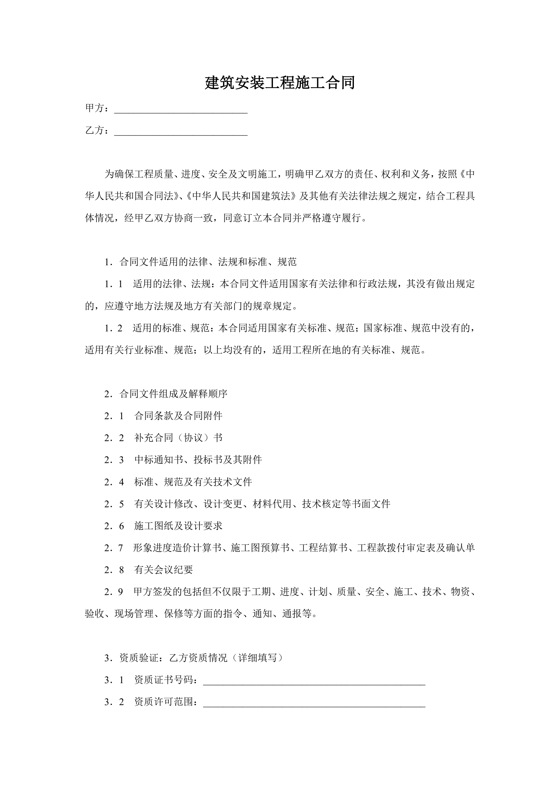 >建筑安装工程施工合同