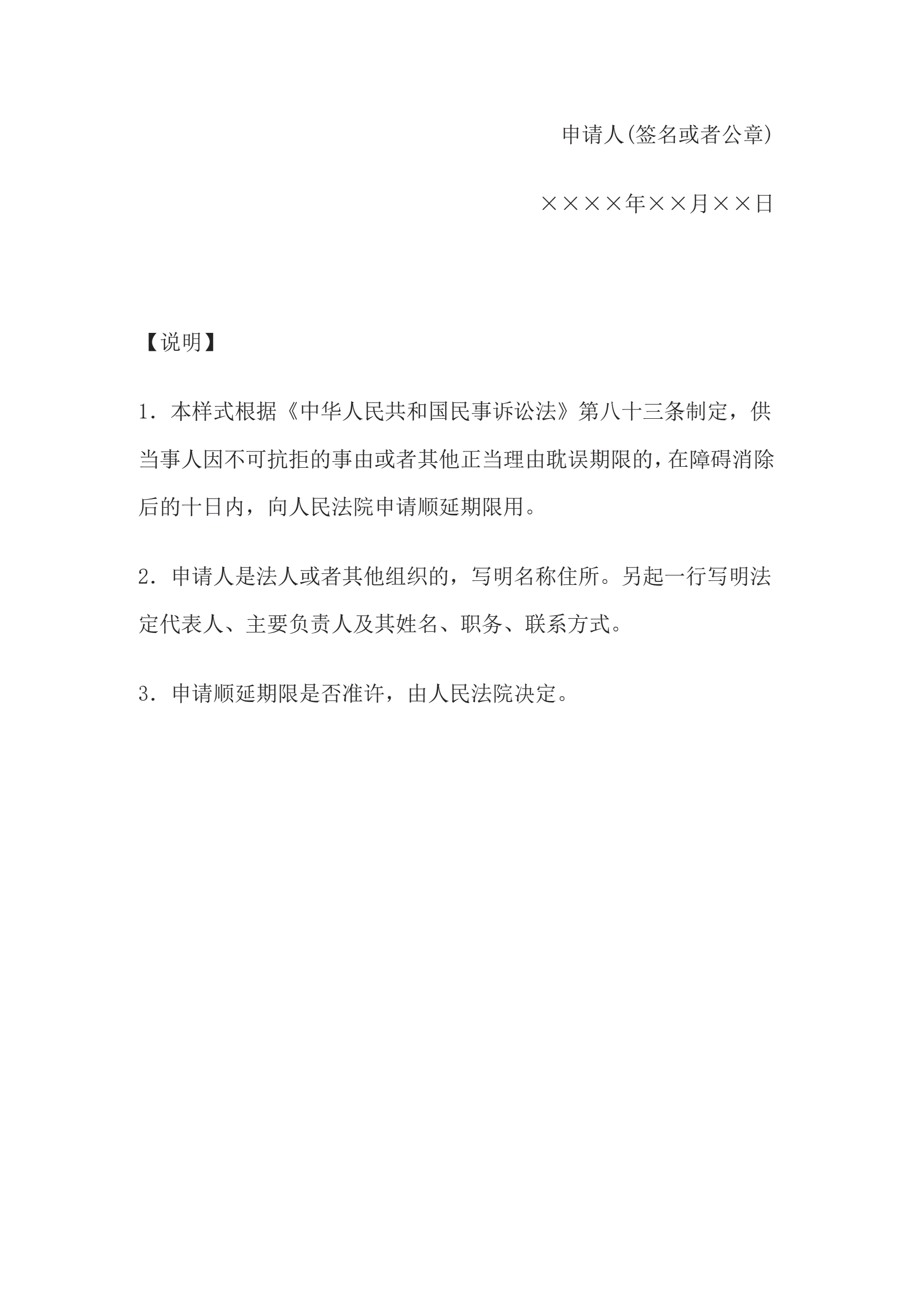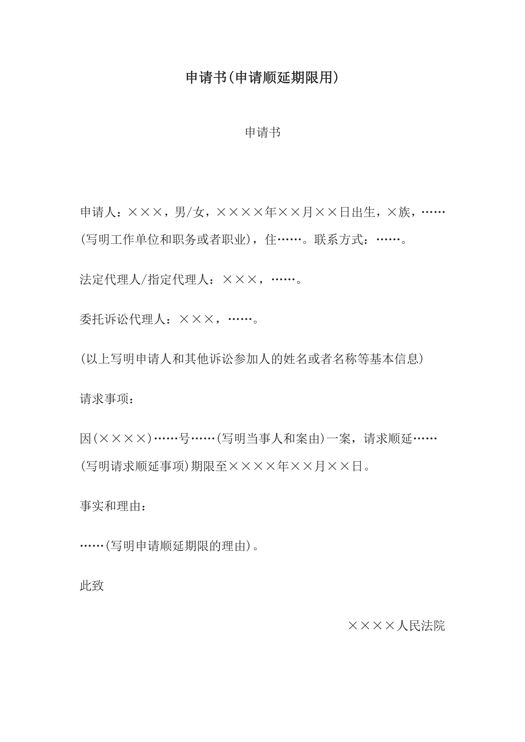 >申请书(申请顺延期限用)