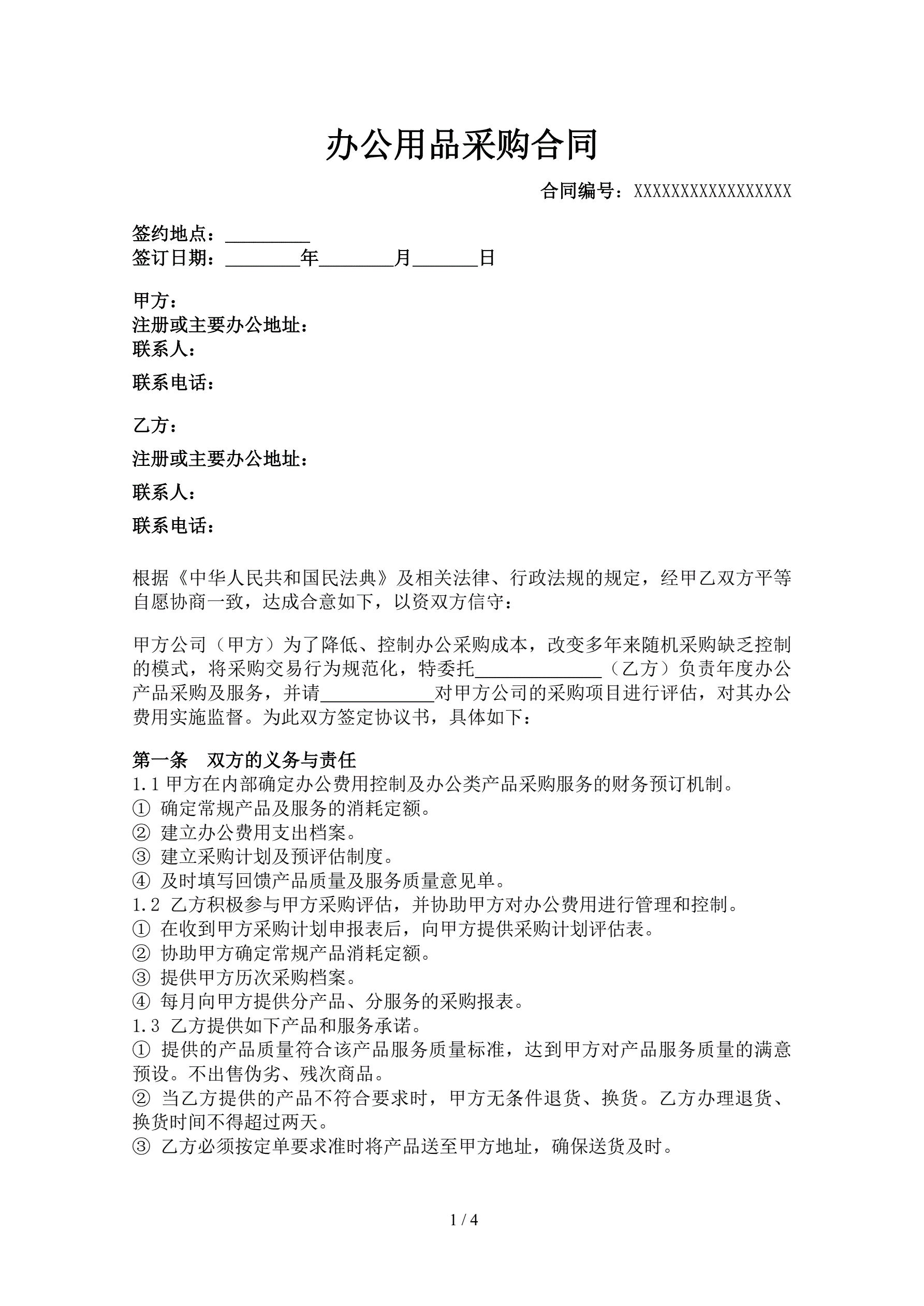办公用品采购合同