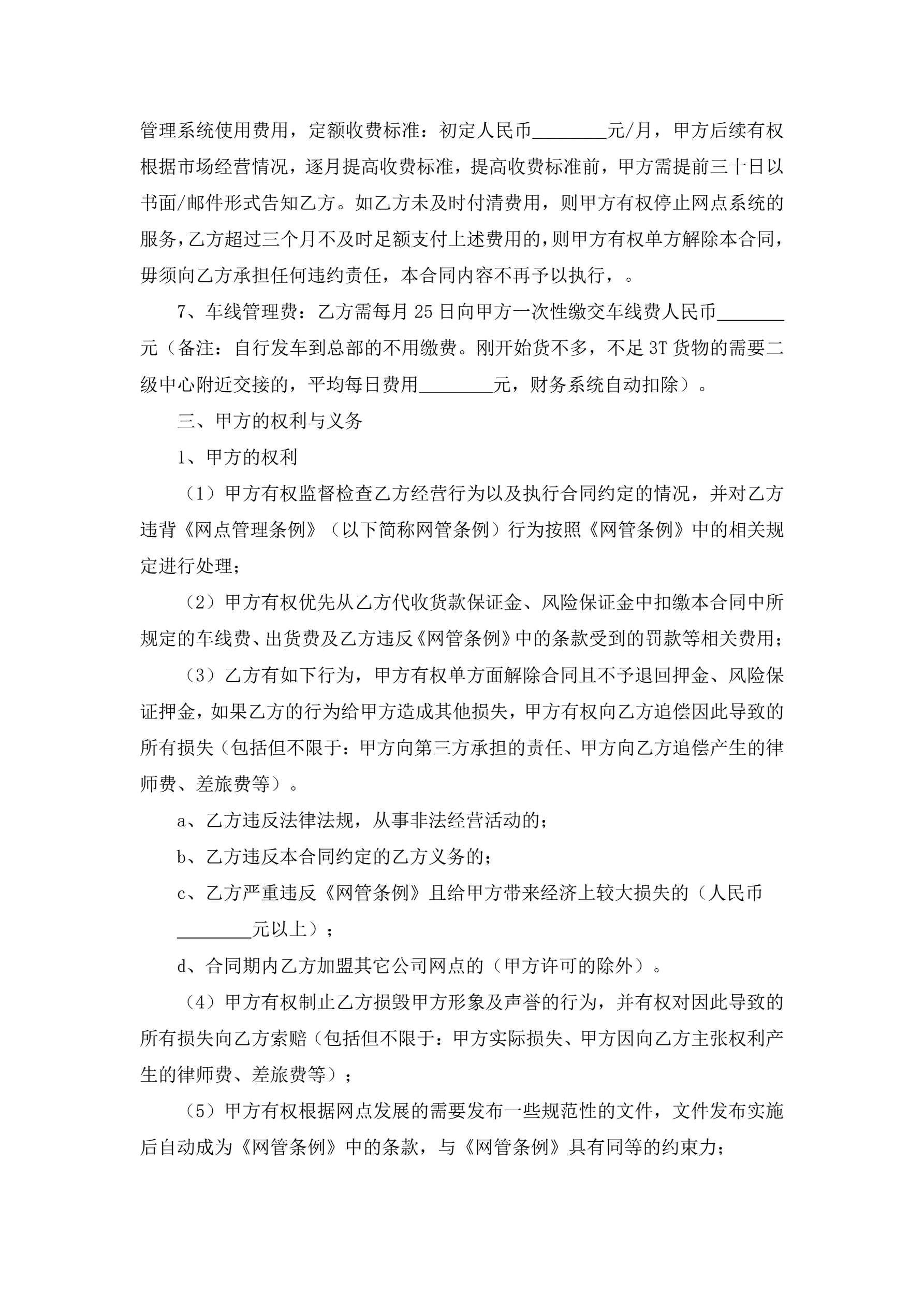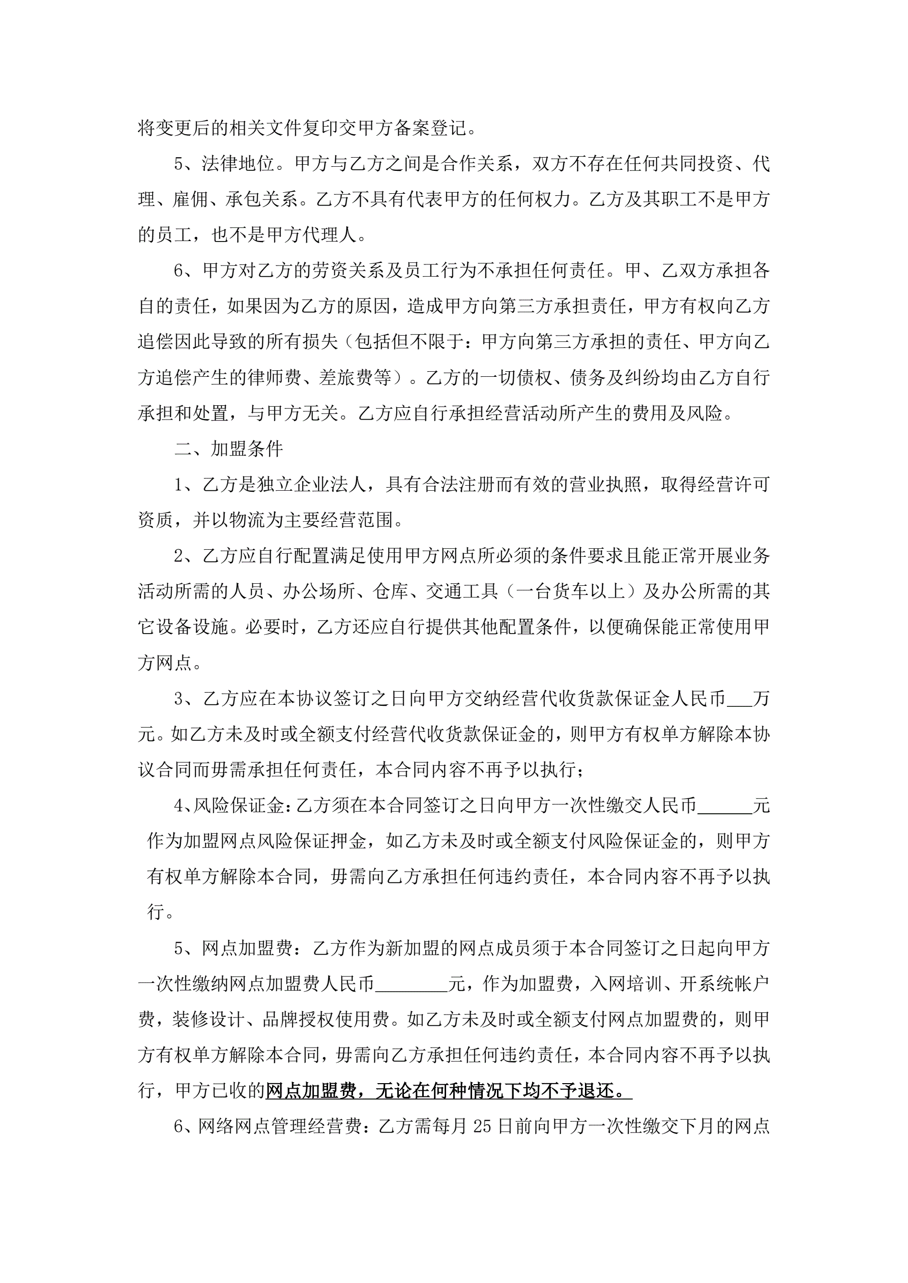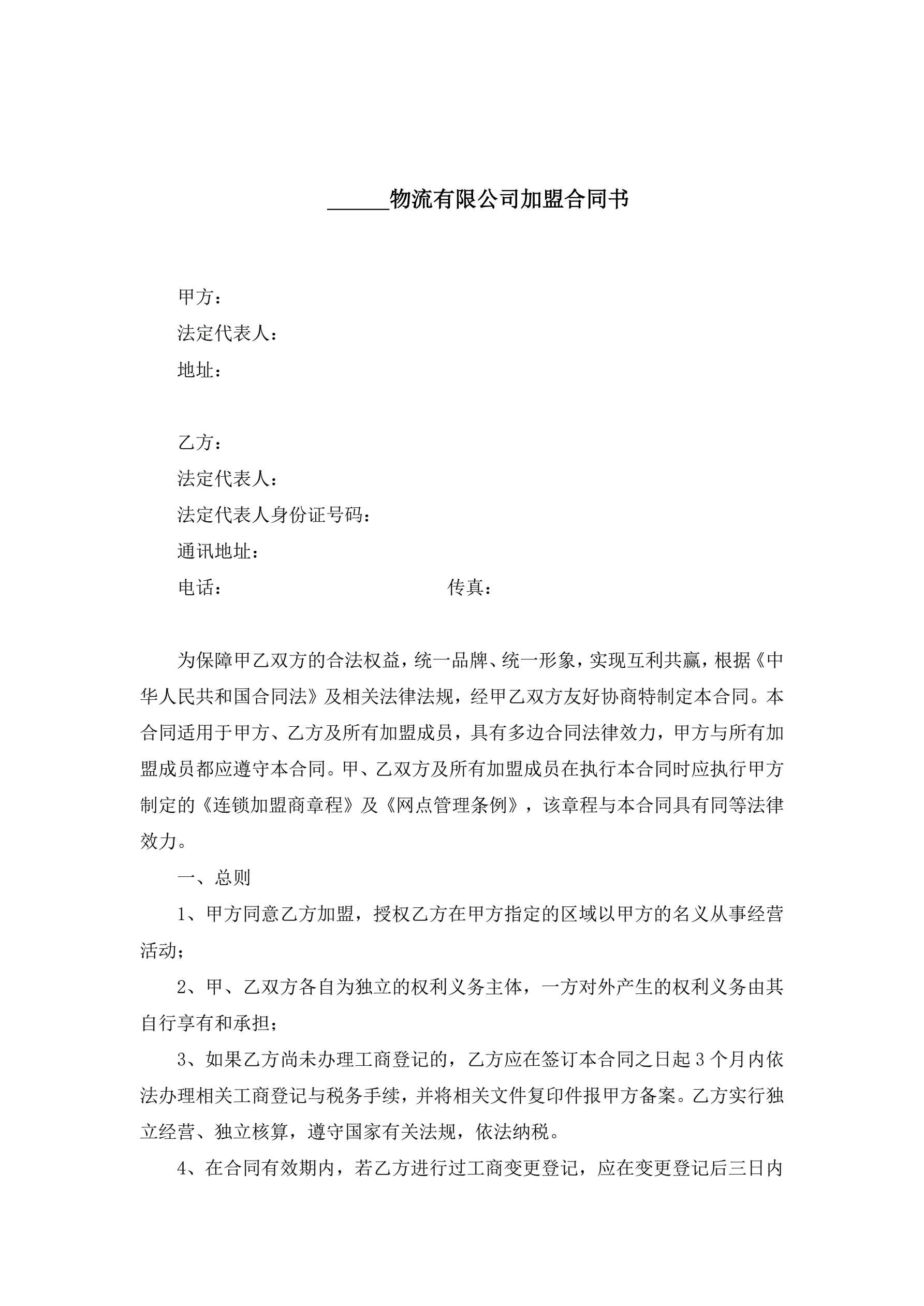 >物流有限公司加盟合同书