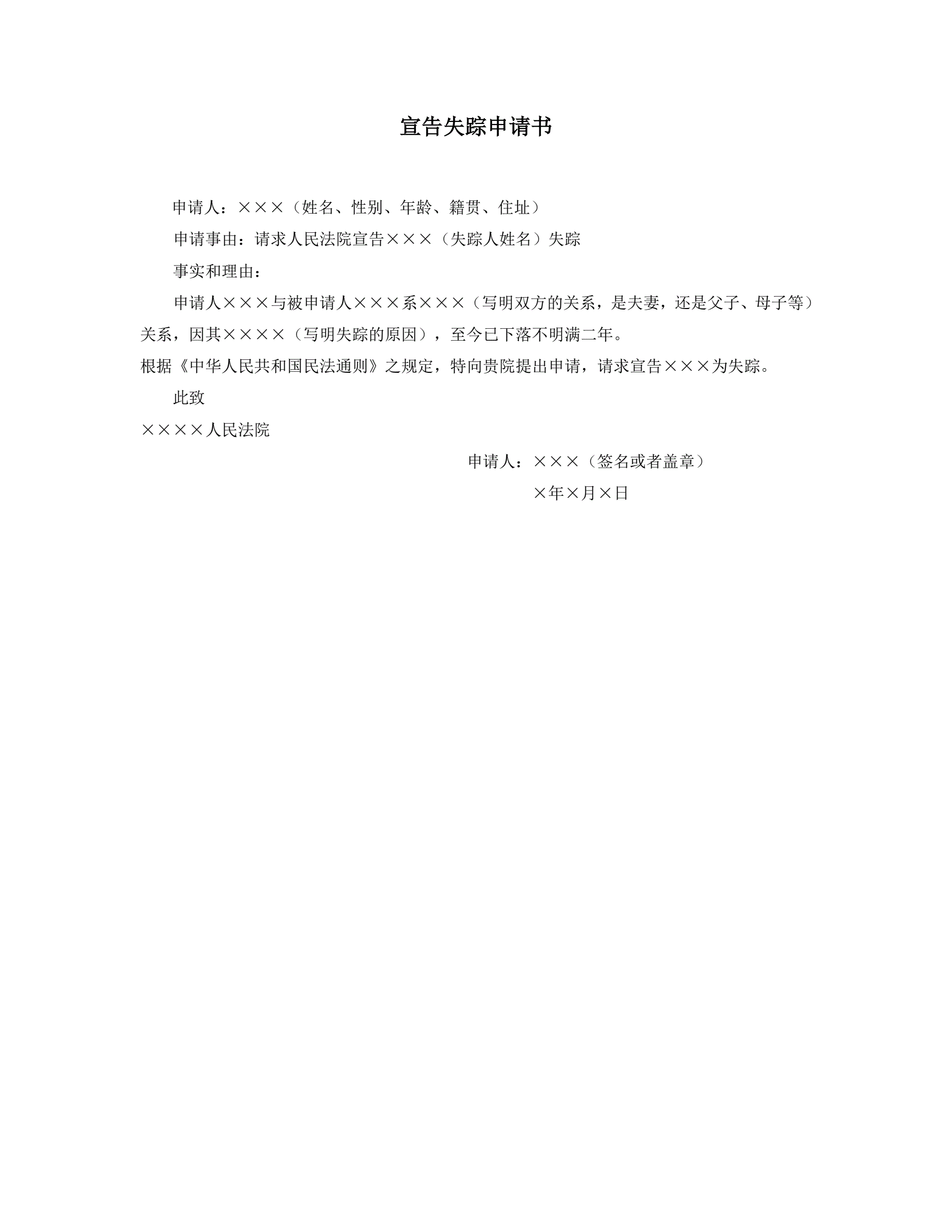 >宣告失踪申请书