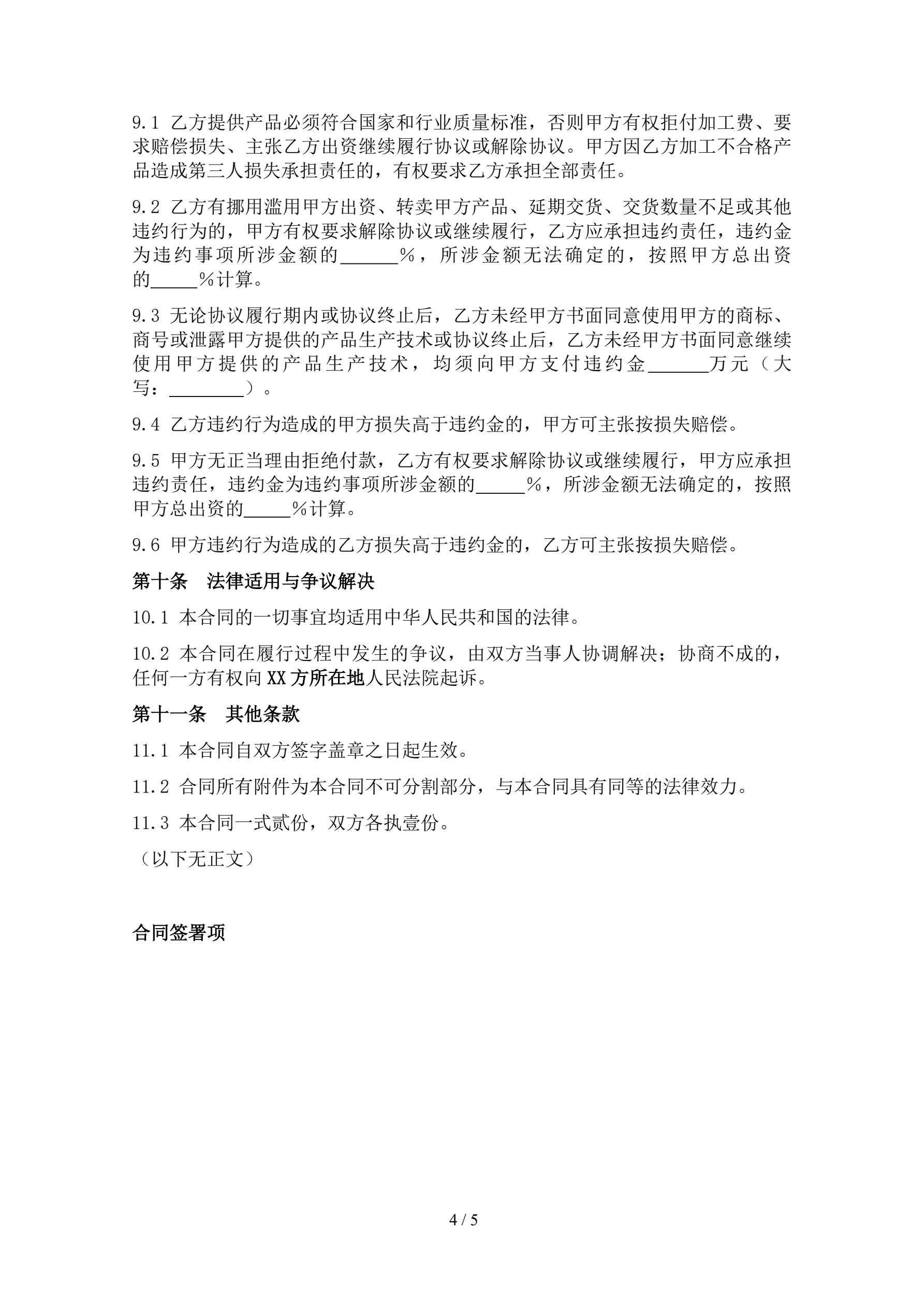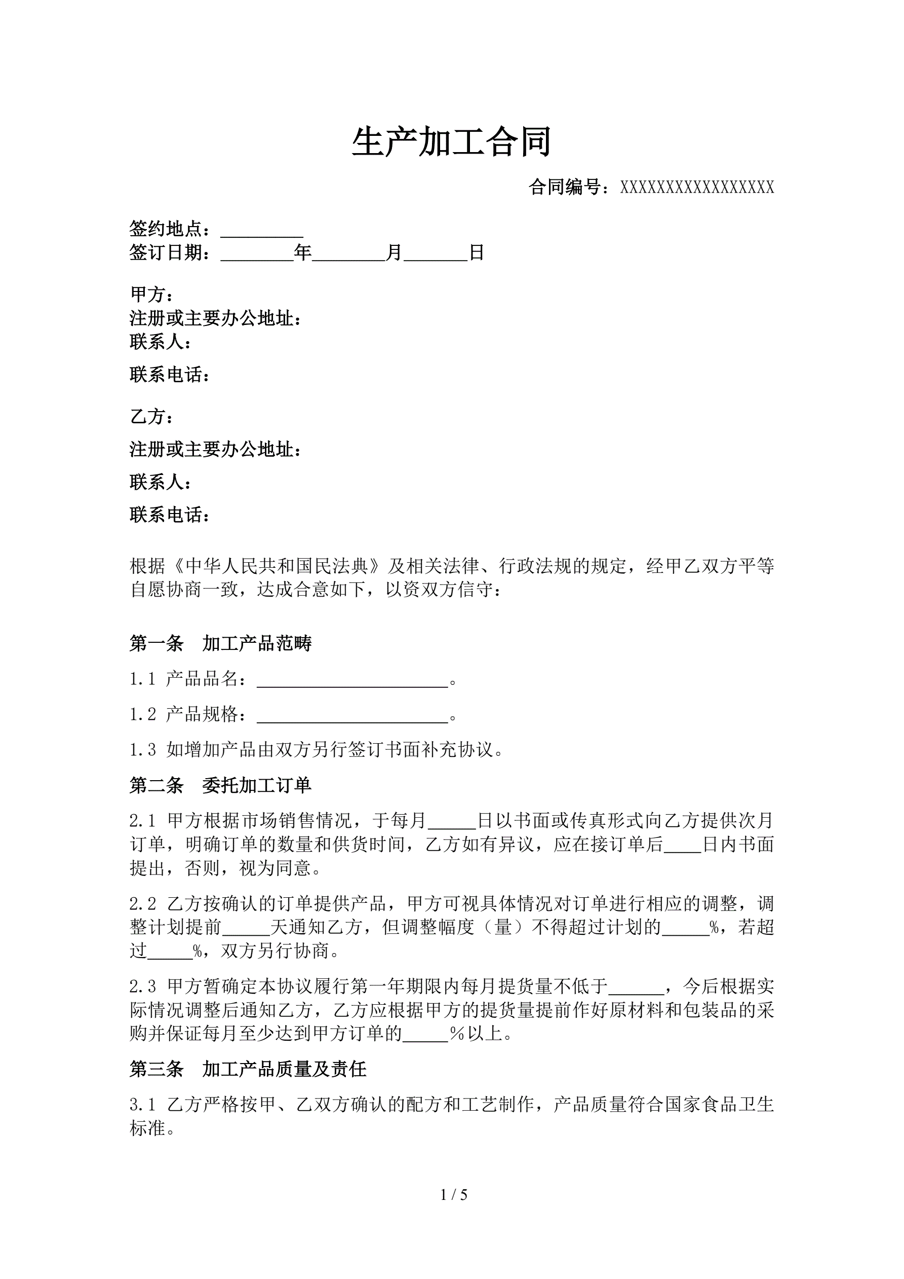 生产加工合同