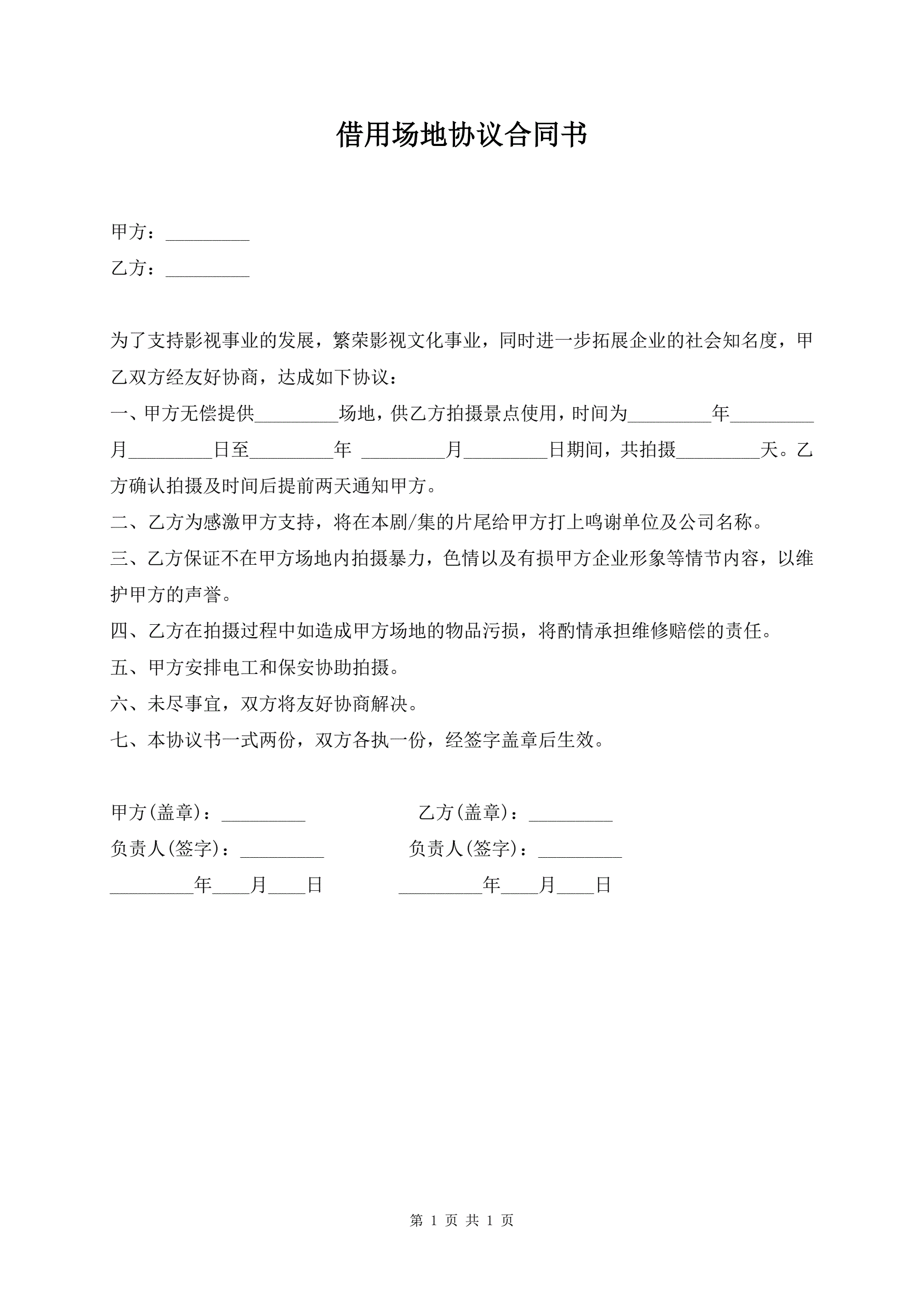 借用场地协议合同书