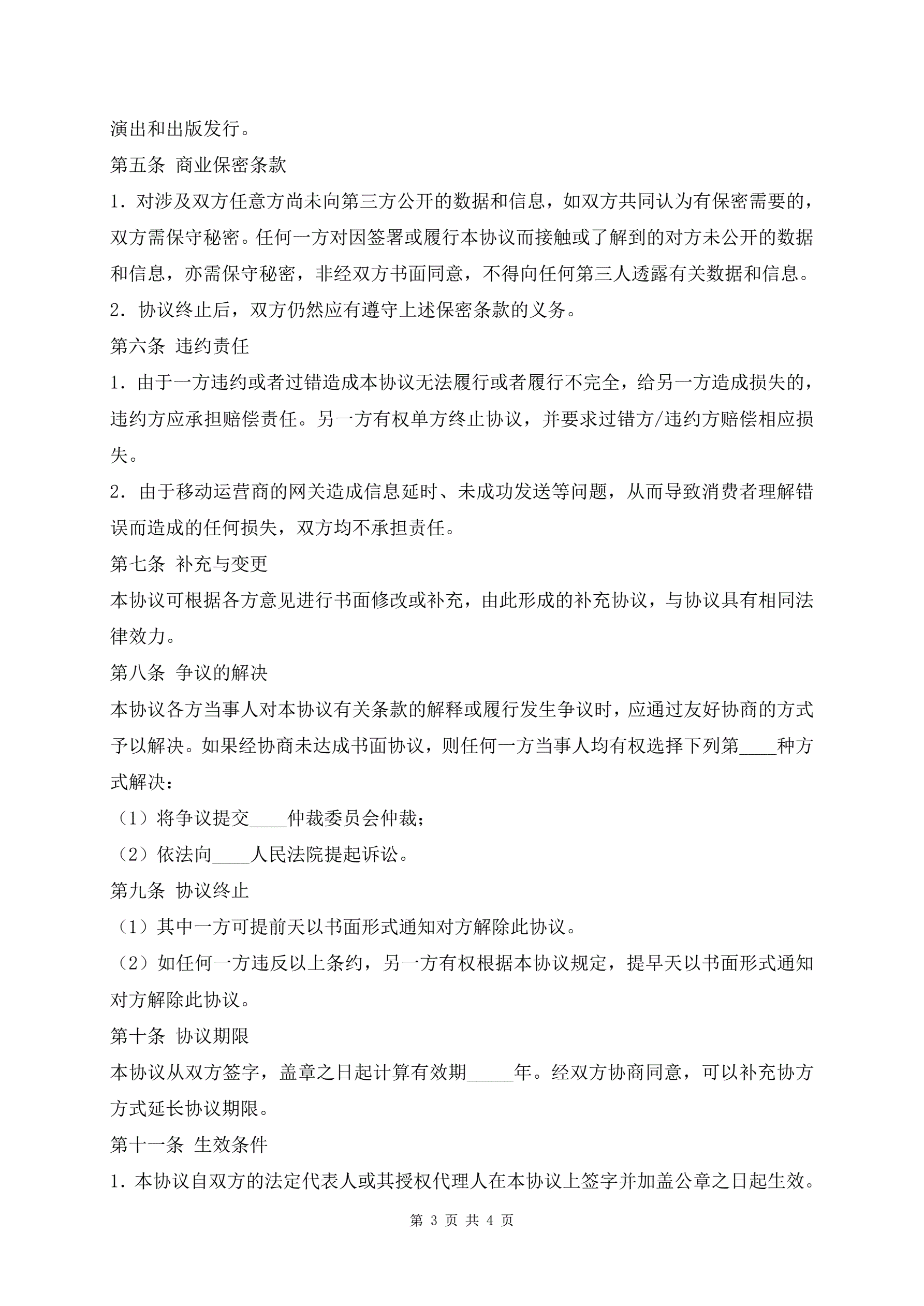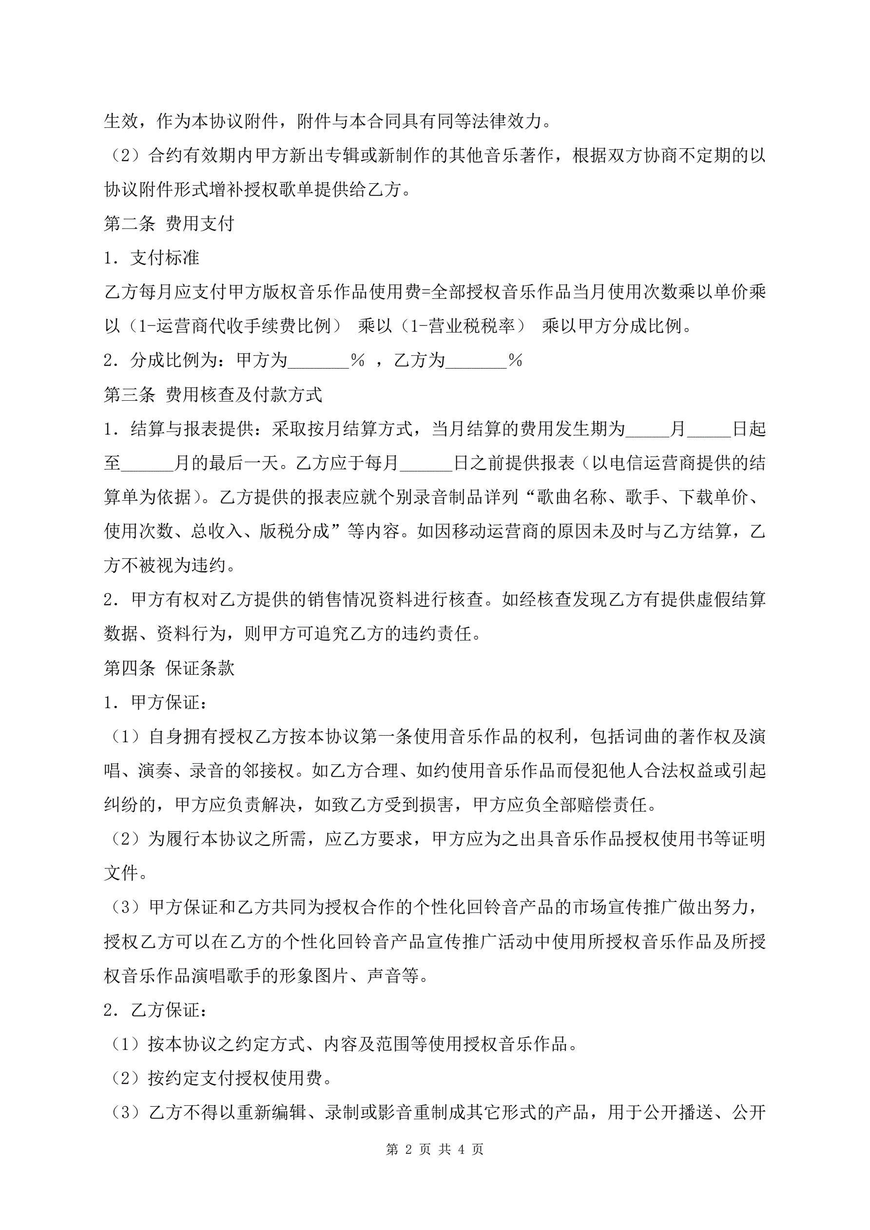音乐作品授权使用协议书正式版