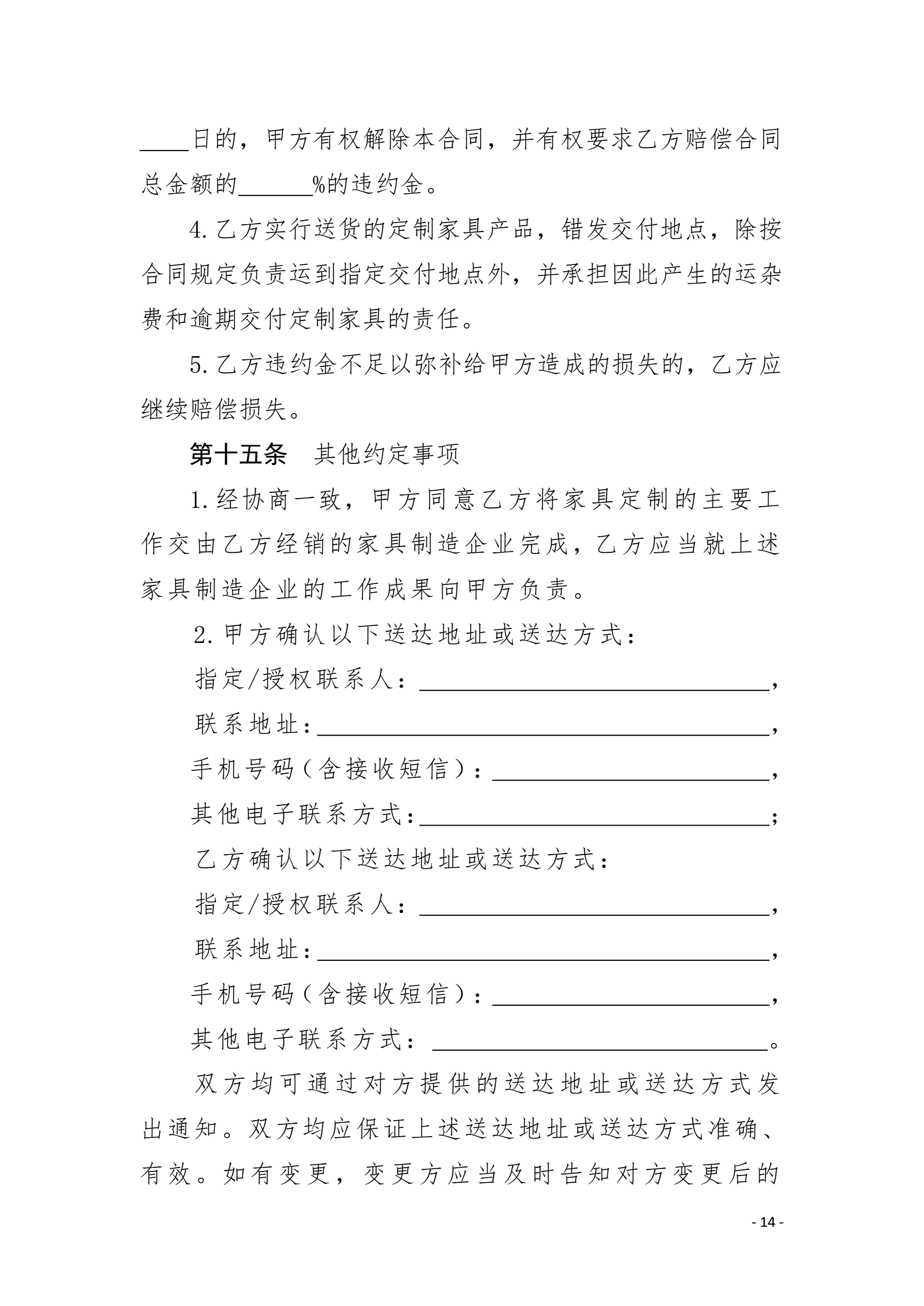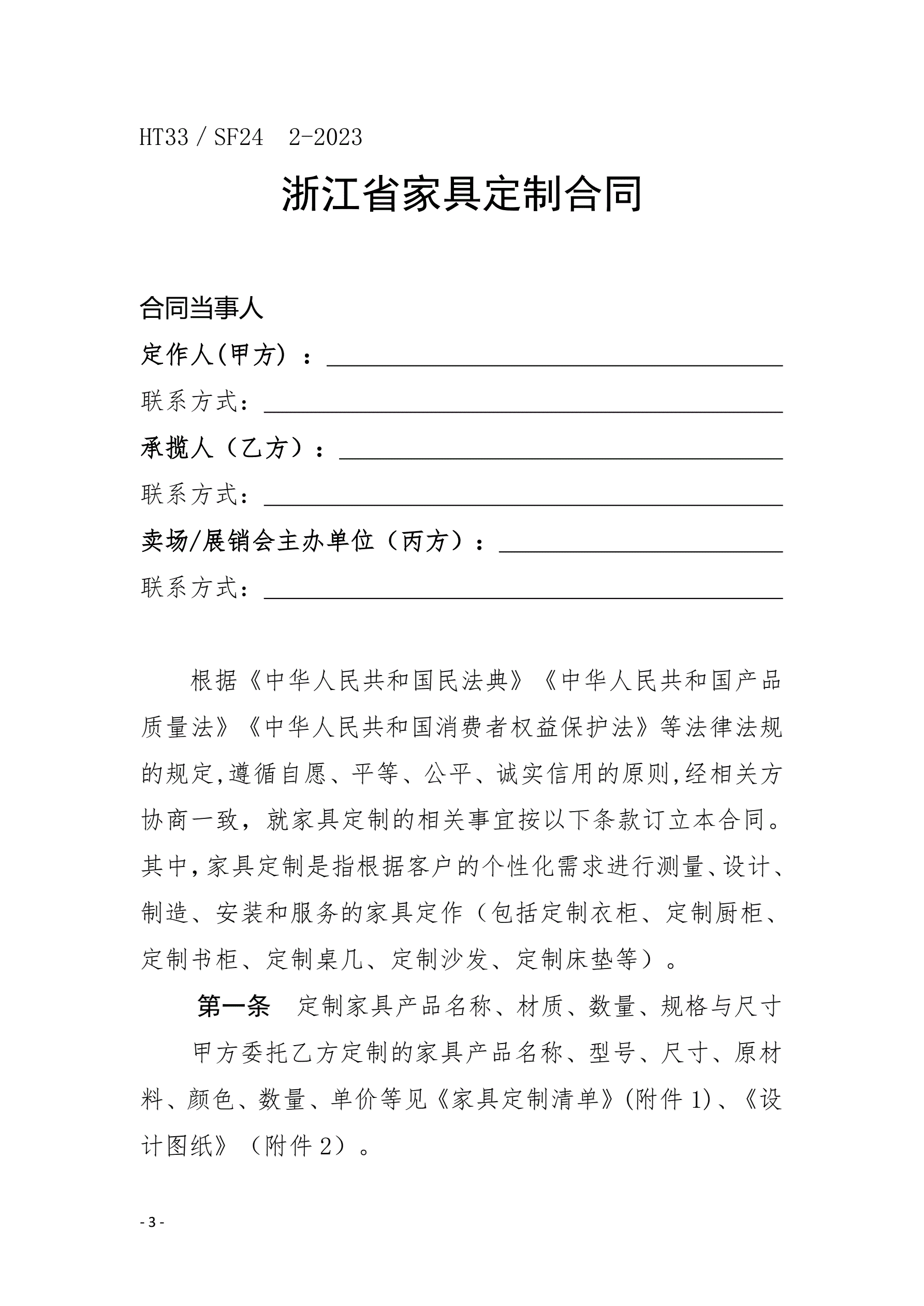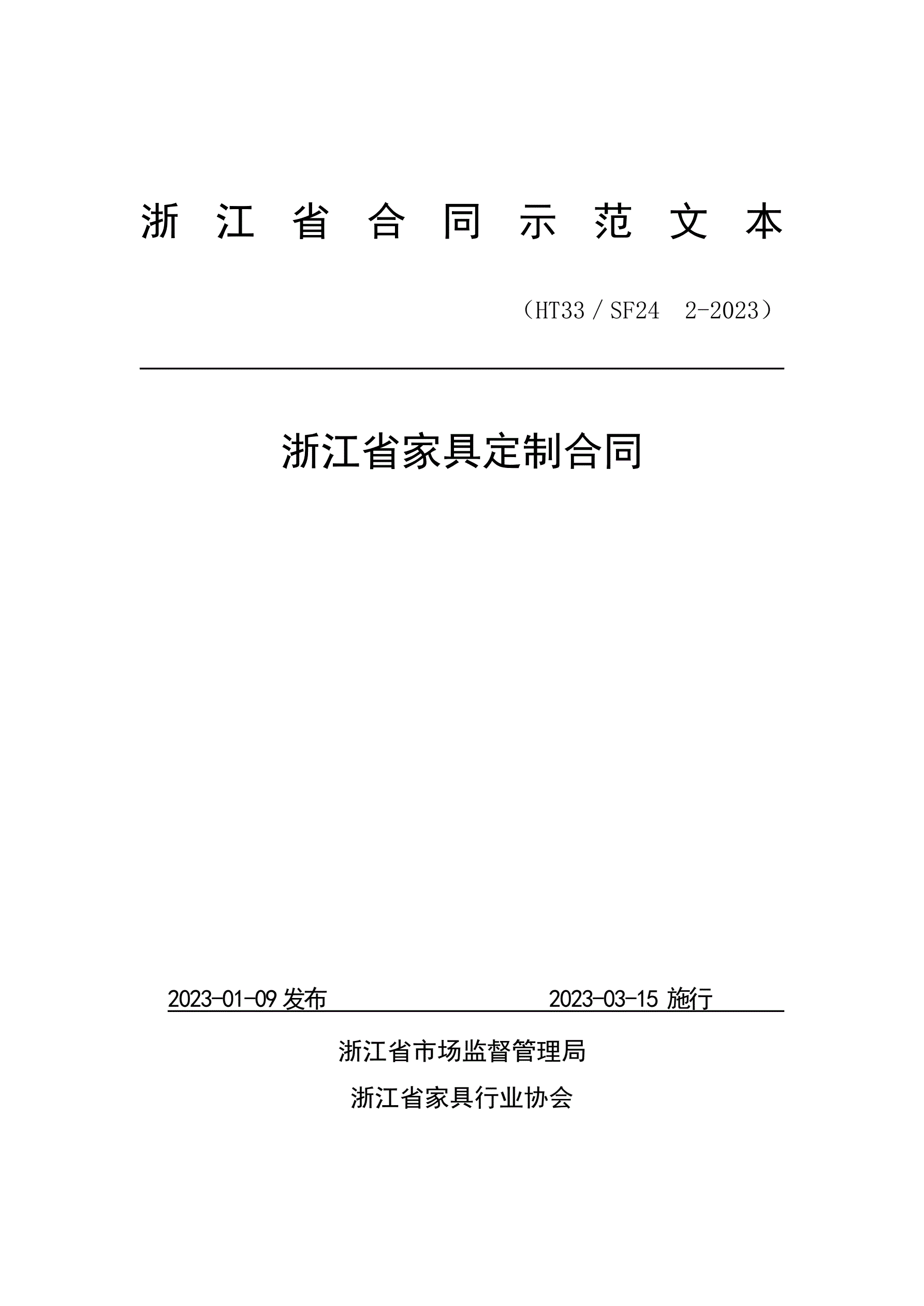 >浙江省家具定制合同(示范文本)(HT33/SF24 2-2023)