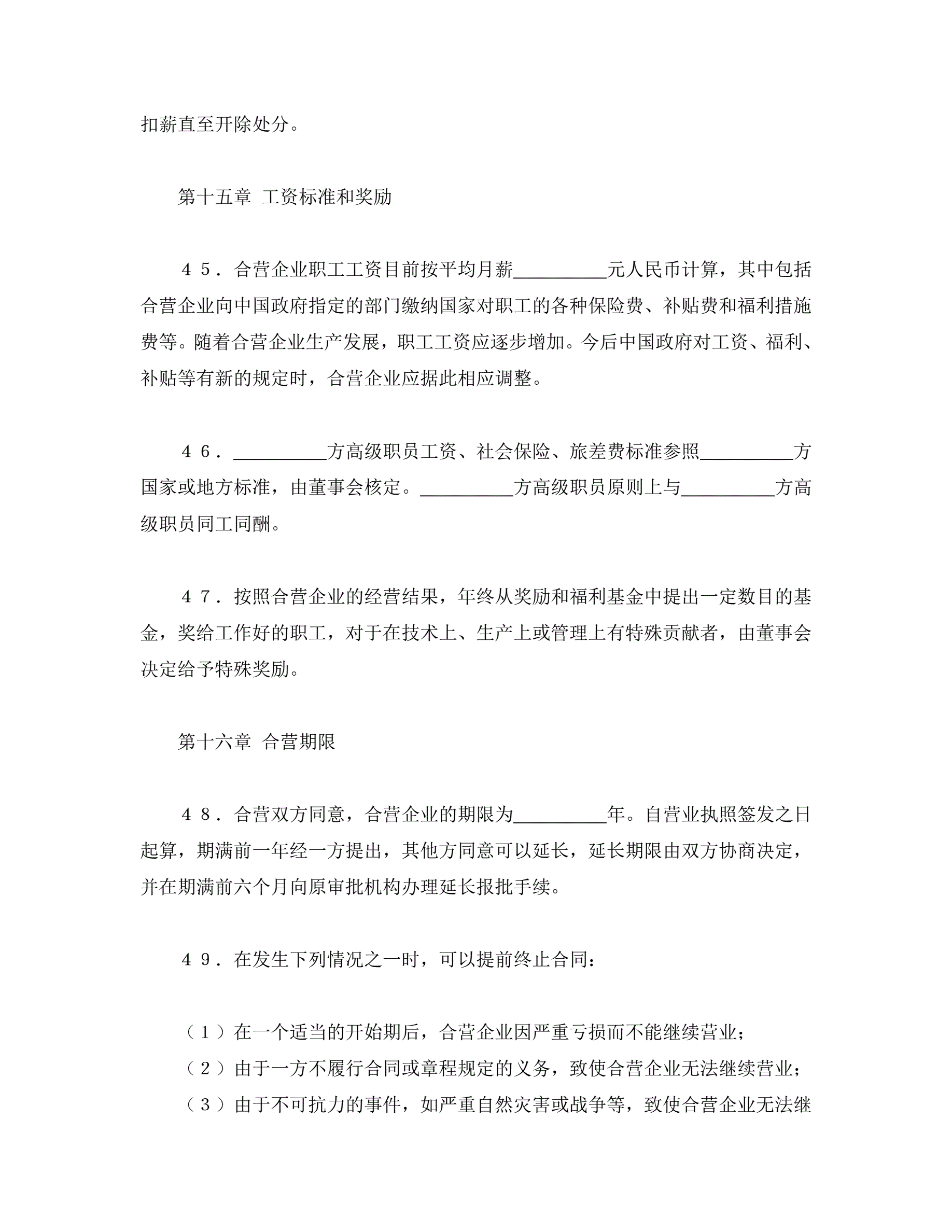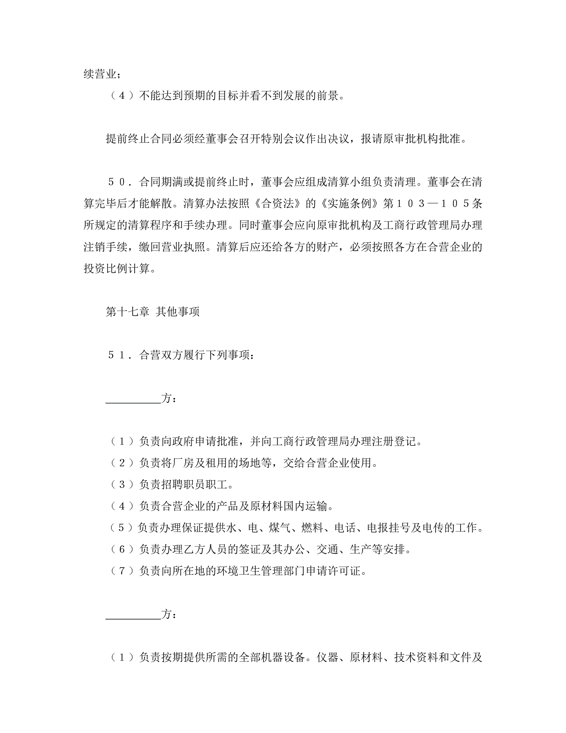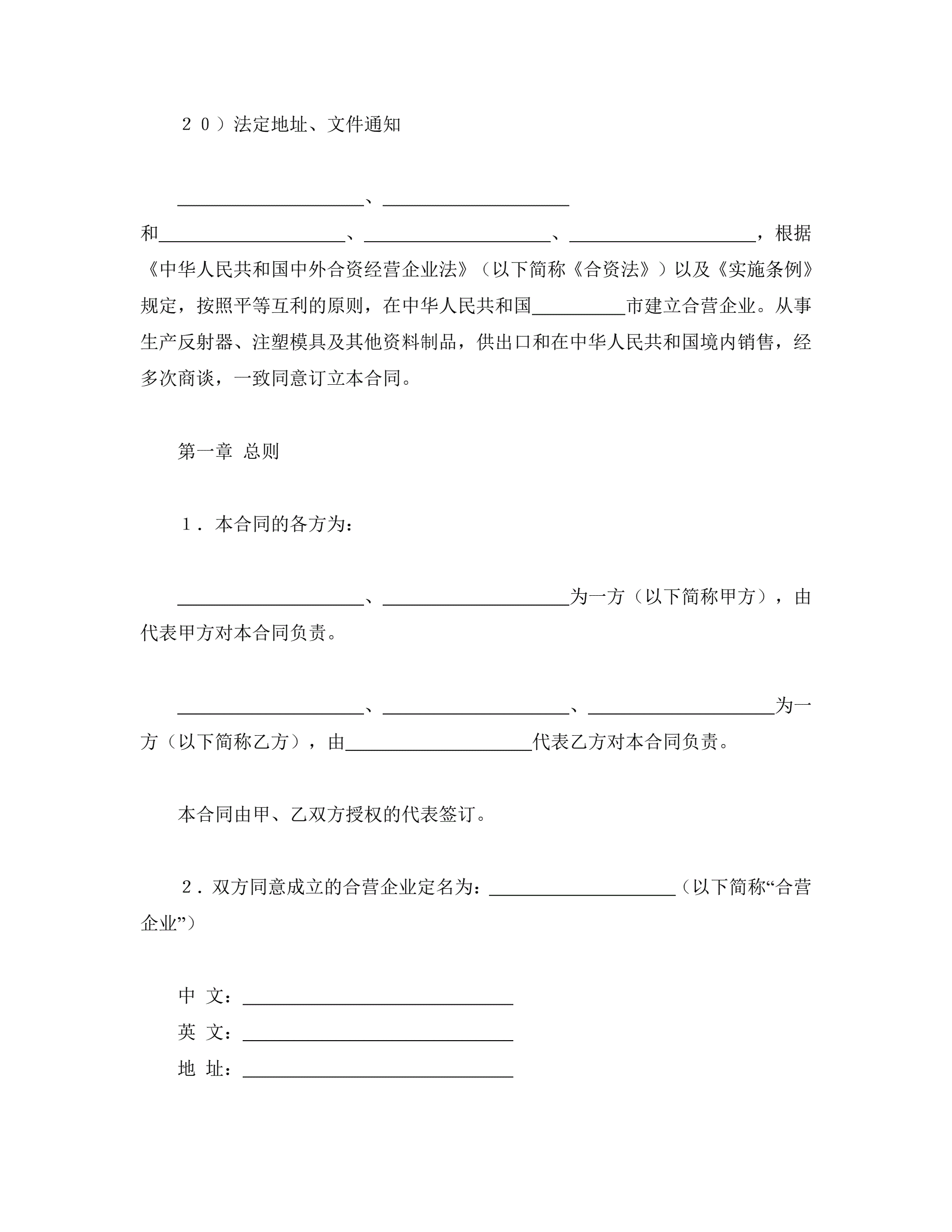 中外合资经营企业合同(塑料制品)